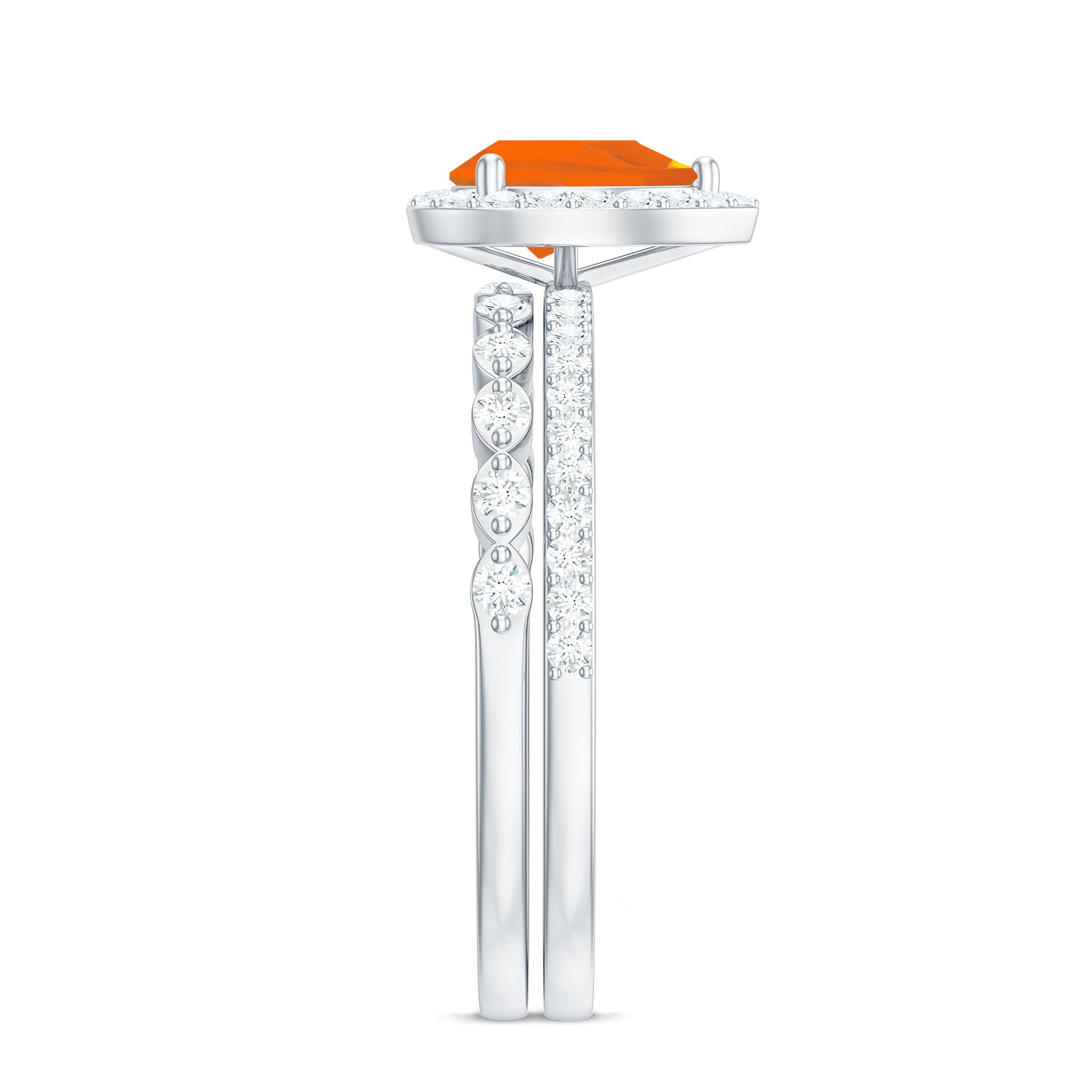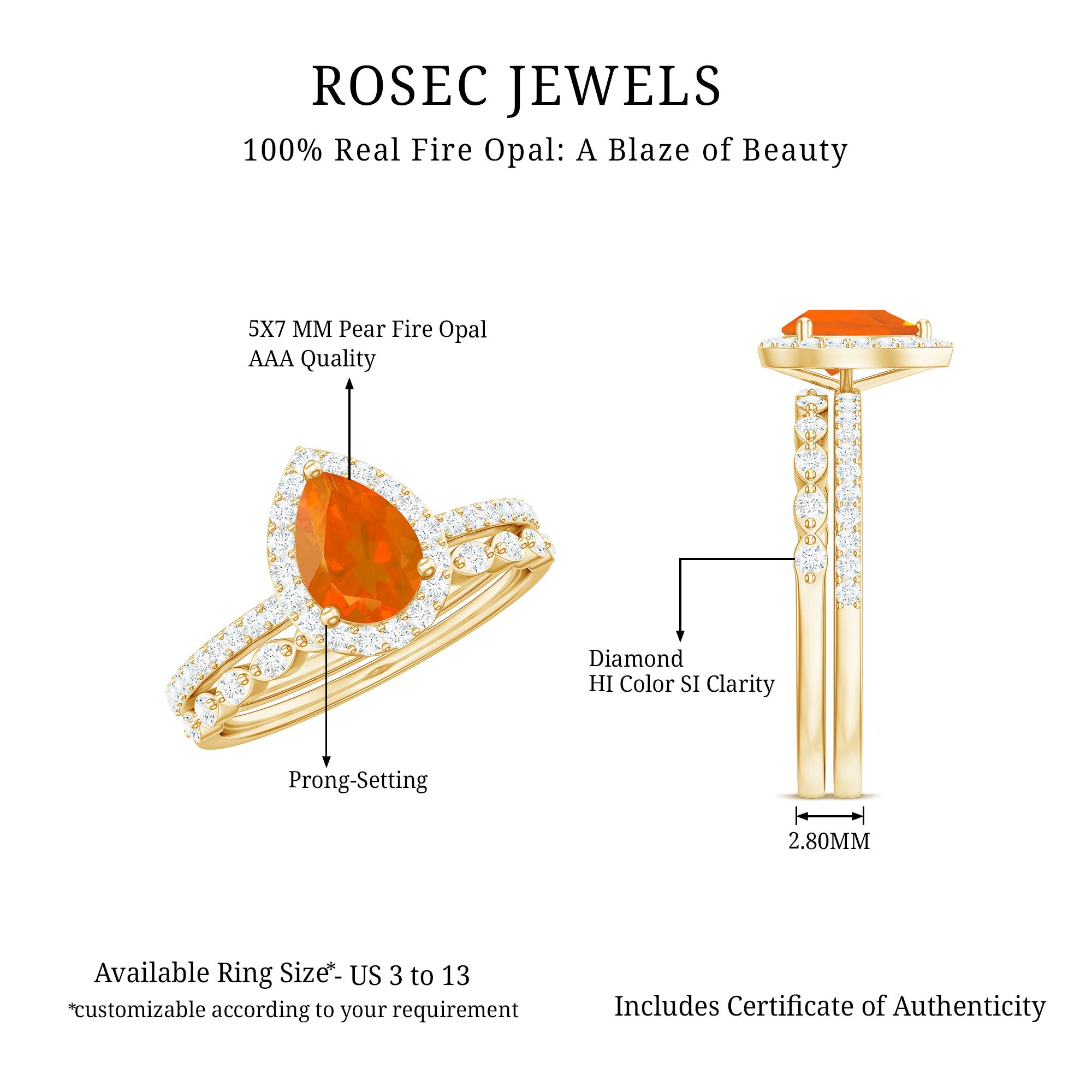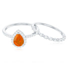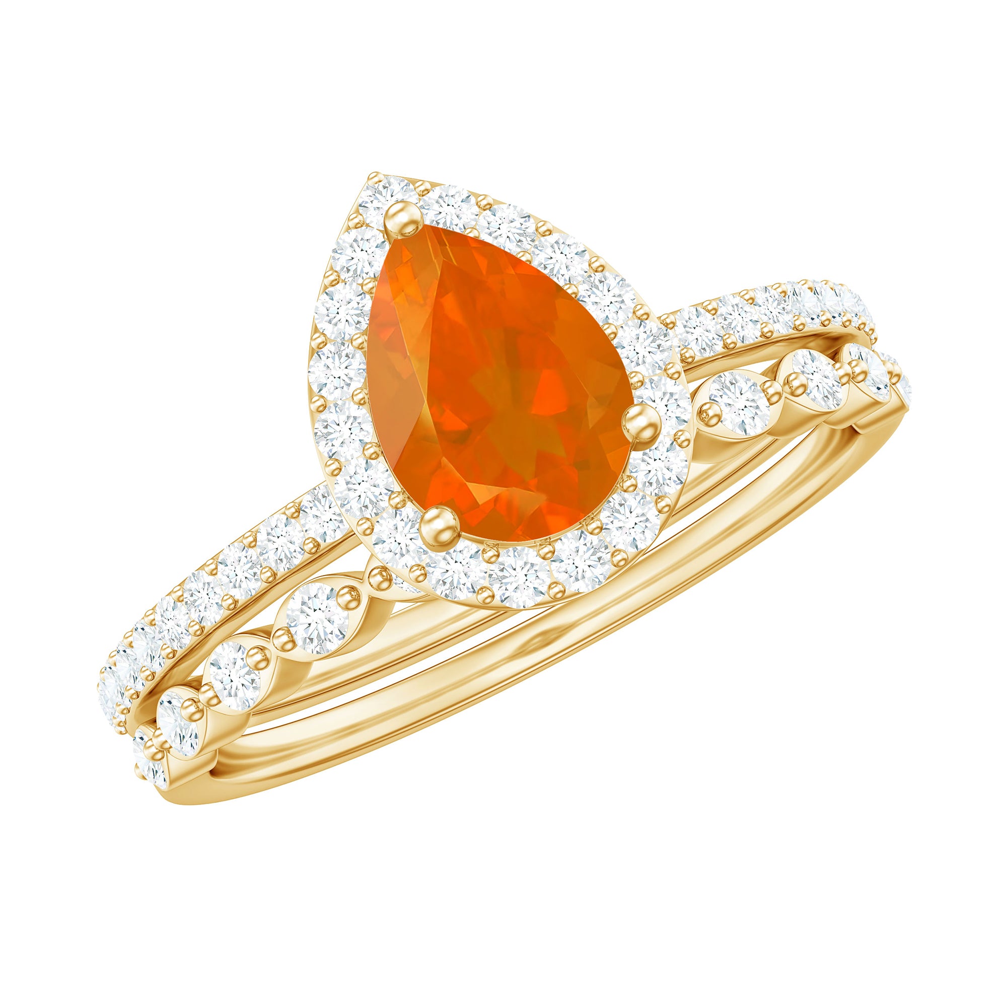 Teardrop Fire Opal Bridal Ring Set with Diamond