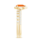 You can steal the spotlight of ant event with this Teardrop Ring Set, showcasing a Pear Cut Fire Opal secured by 3 Prong Setting while more Round Diamond studded as Halo and on the matching band. Make her heart flutter by presenting this Fire Opal Ring to her on any special occasion as its perfect to style with every attire.