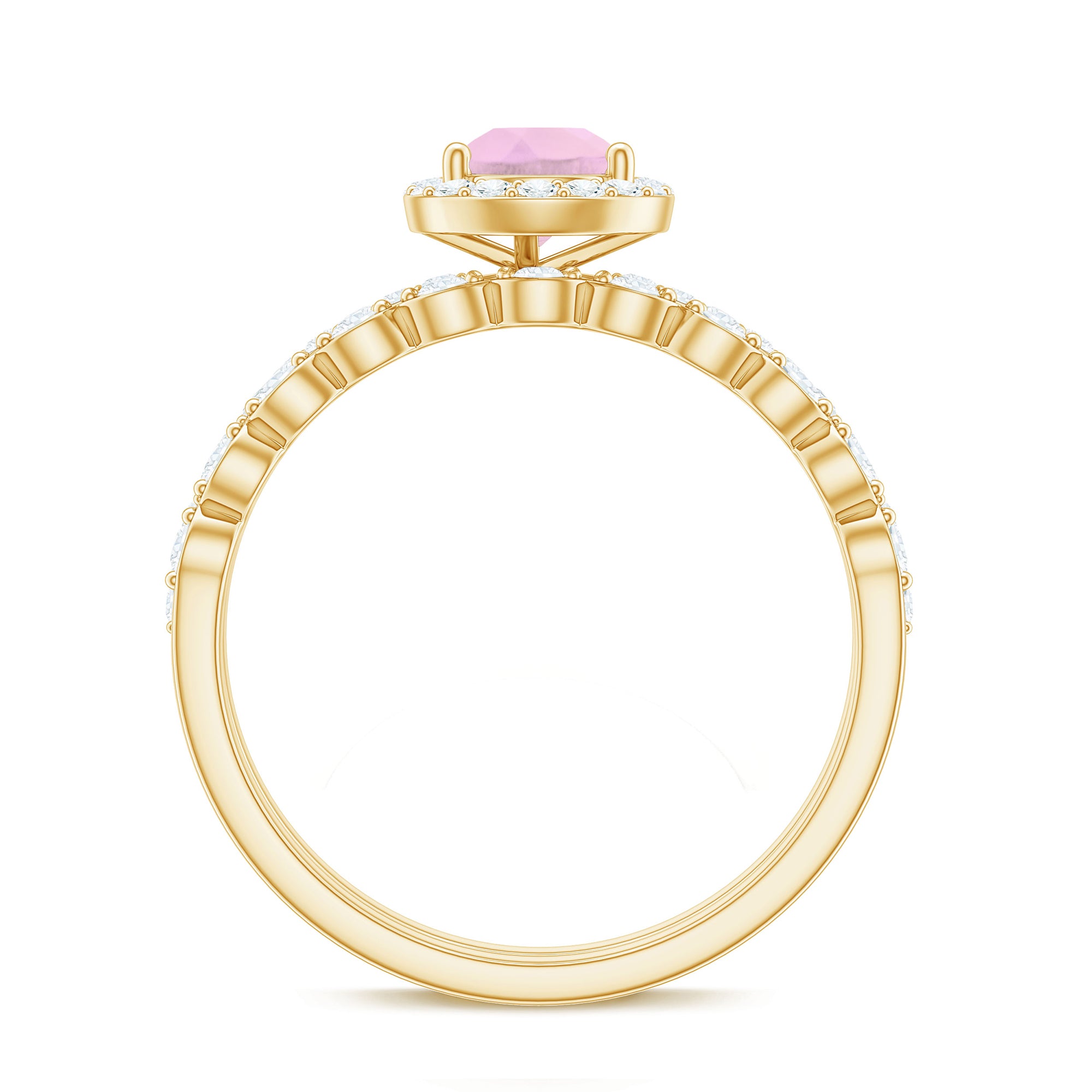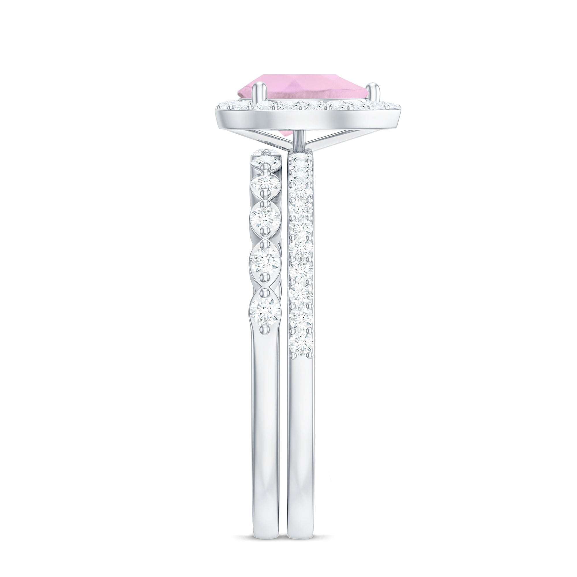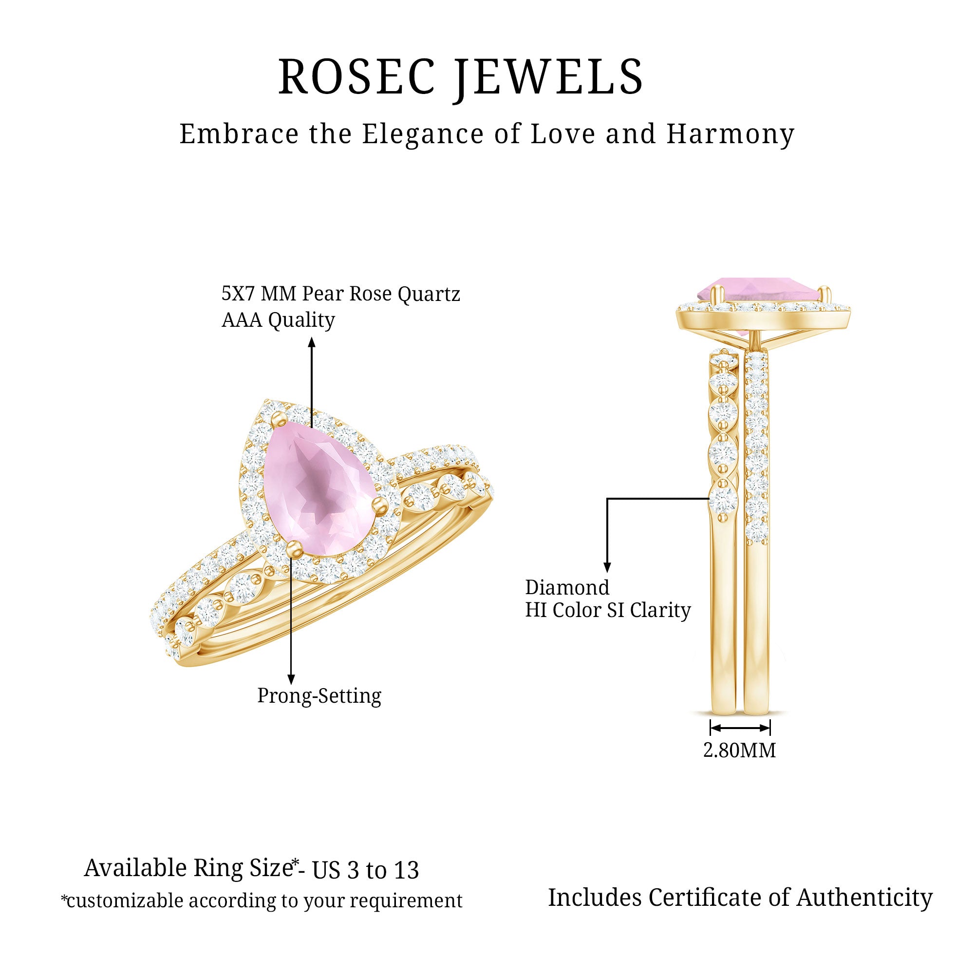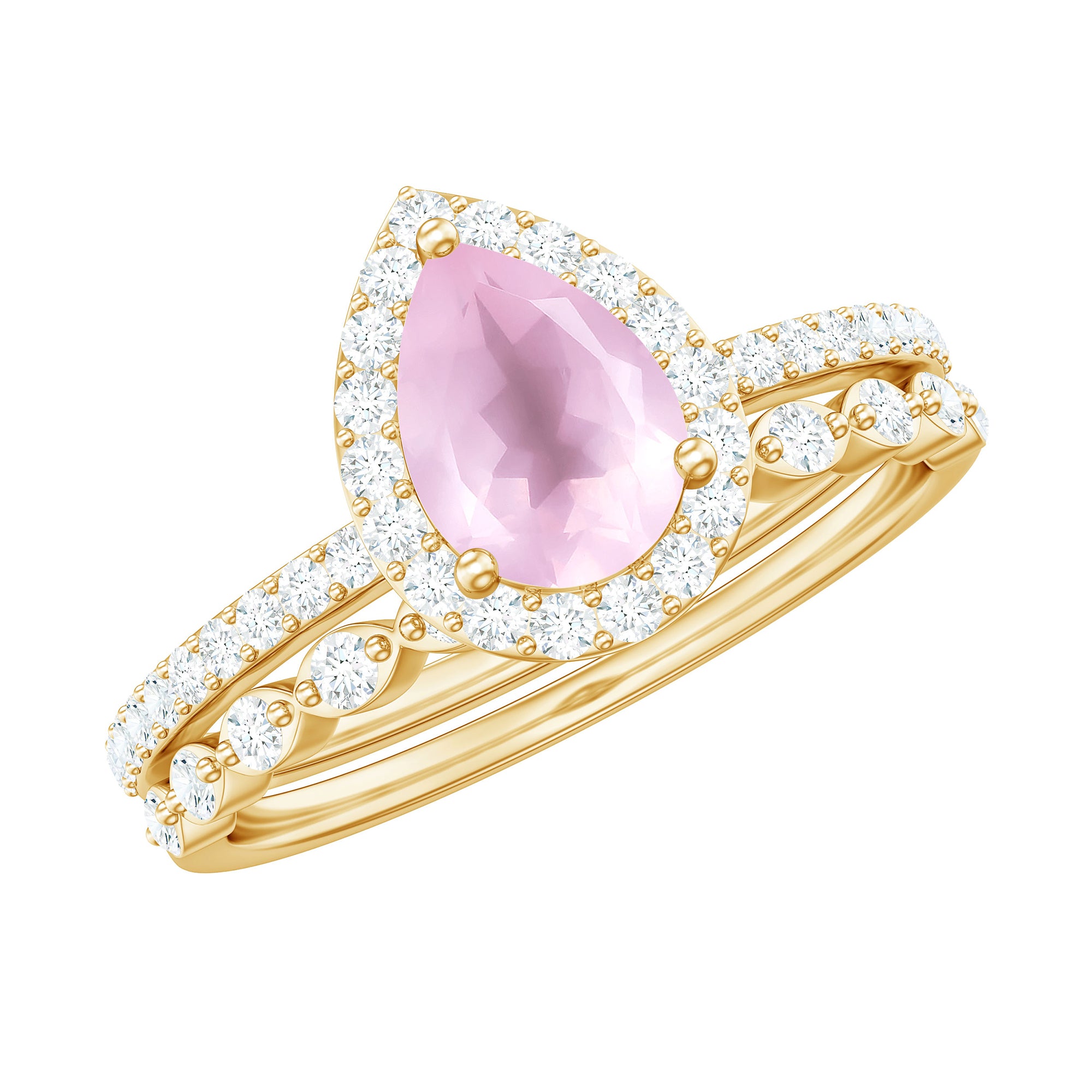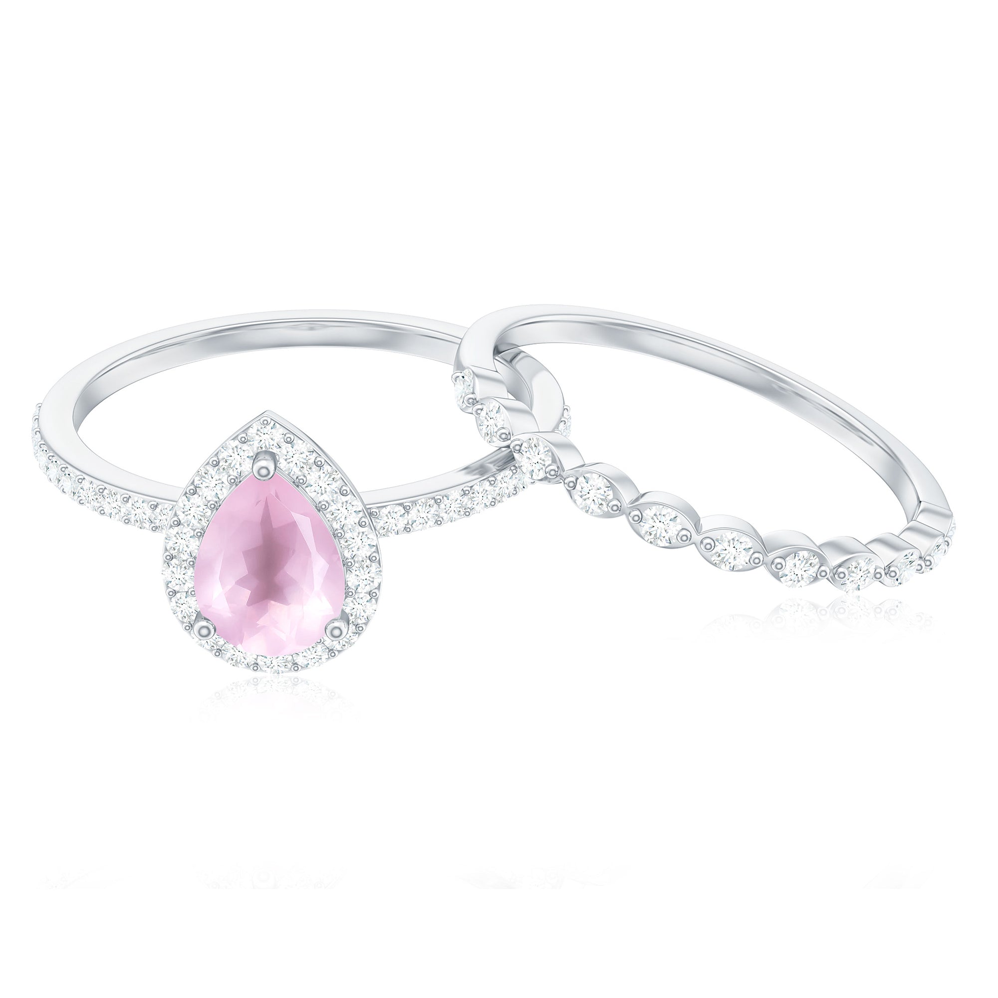 Teardrop Rose Quartz Bridal Ring Set with Diamond