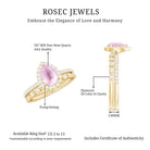 You can steal the spotlight of ant event with this Teardrop Ring Set, showcasing a Pear Cut Rose Quartz secured by 3 Prong Setting while more Round Diamond studded as Halo and on the matching band. Make her heart flutter by presenting this Rose Quartz Ring to her on any special occasion as its perfect to style with every attire.