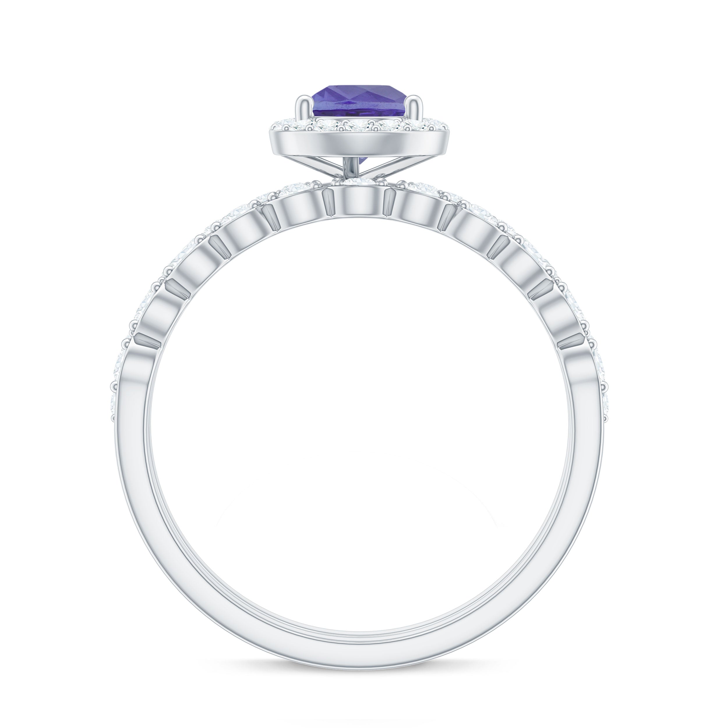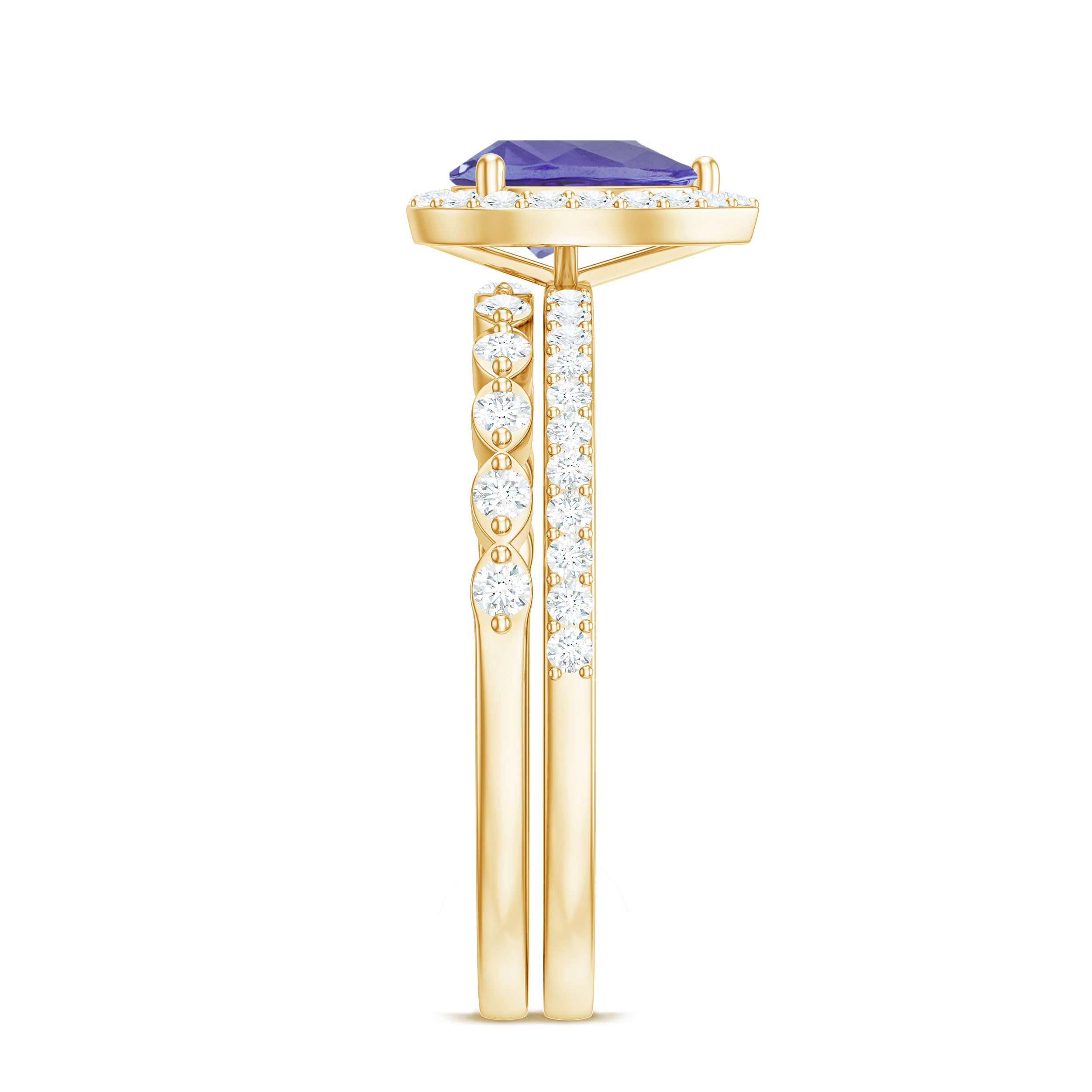 Teardrop Tanzanite Bridal Ring Set with Diamond