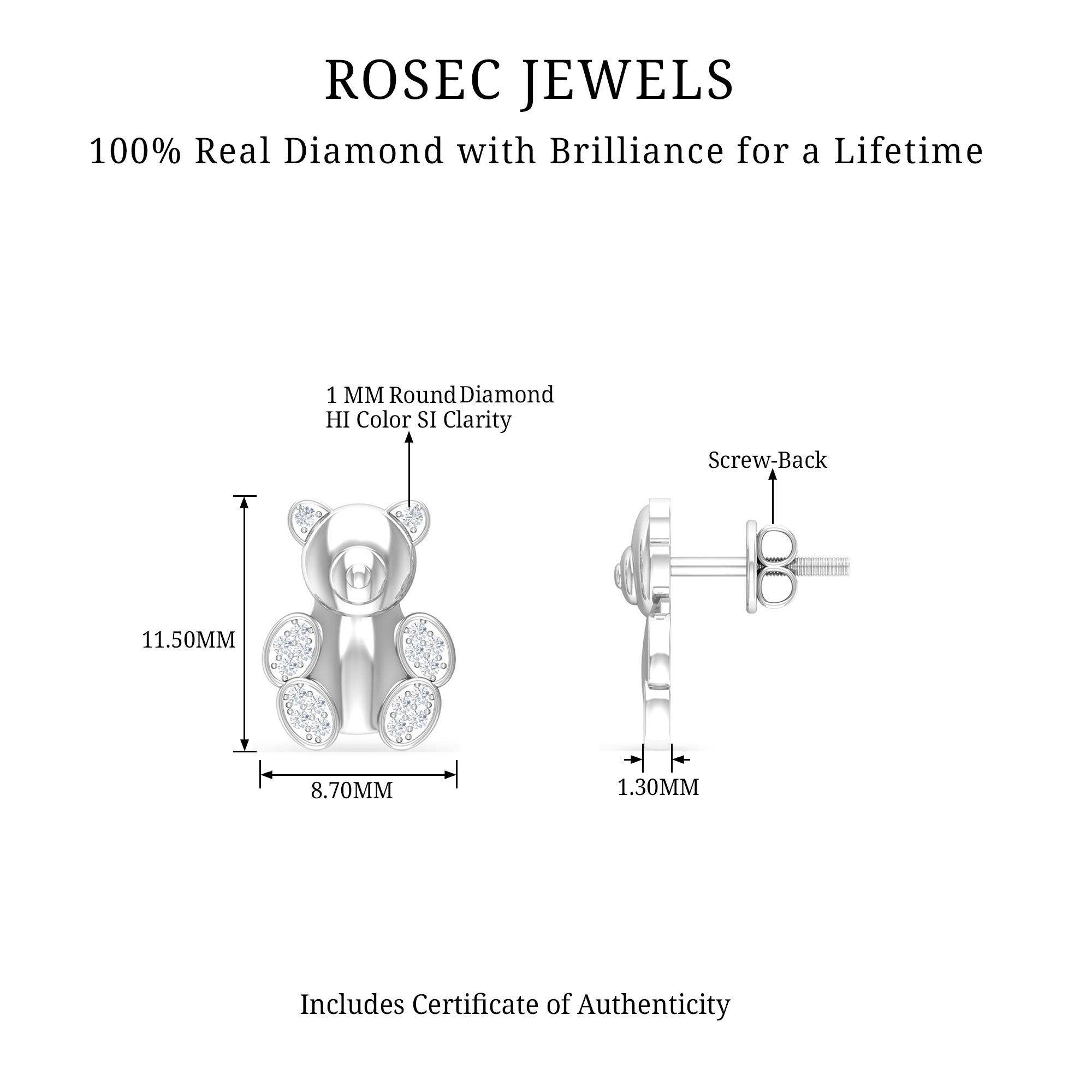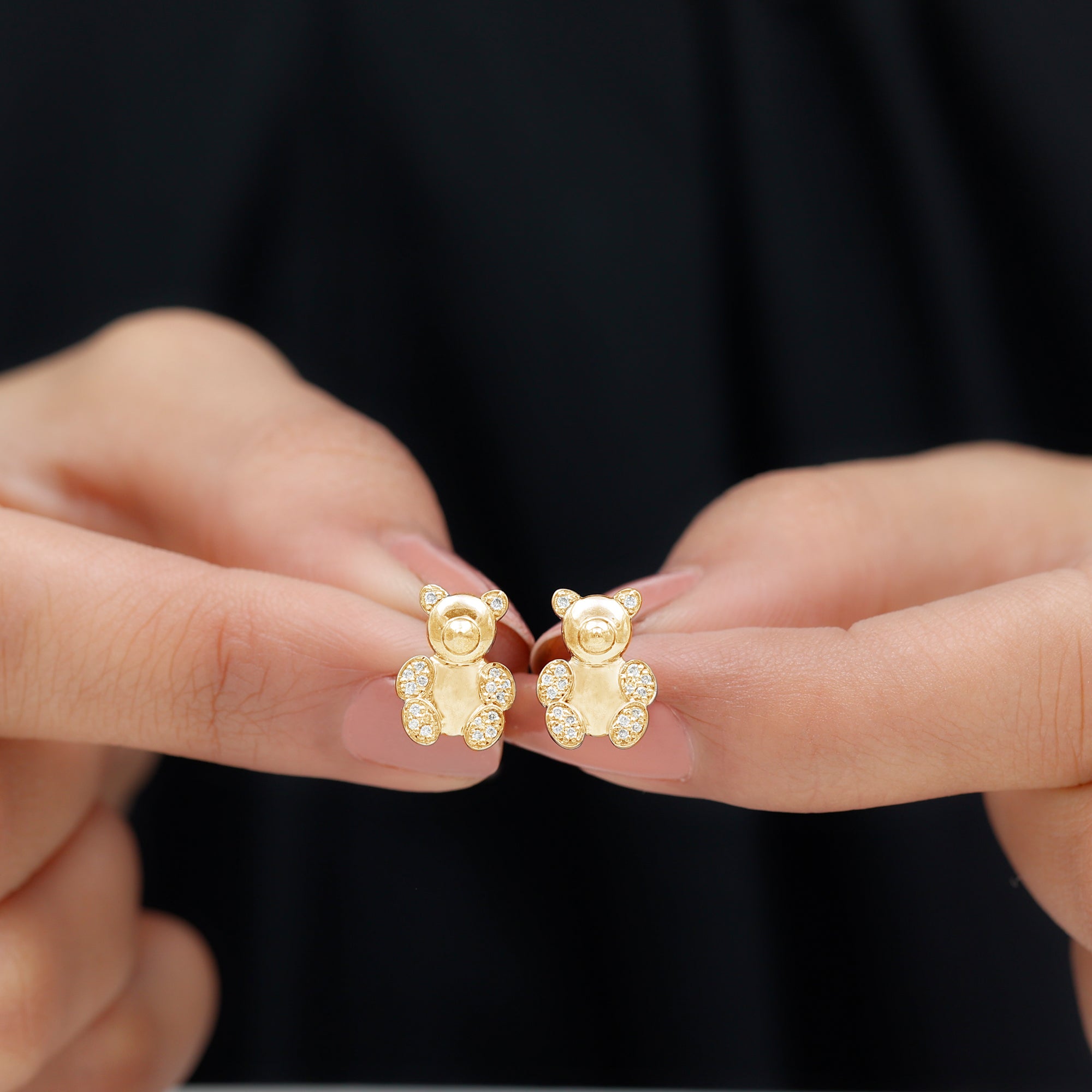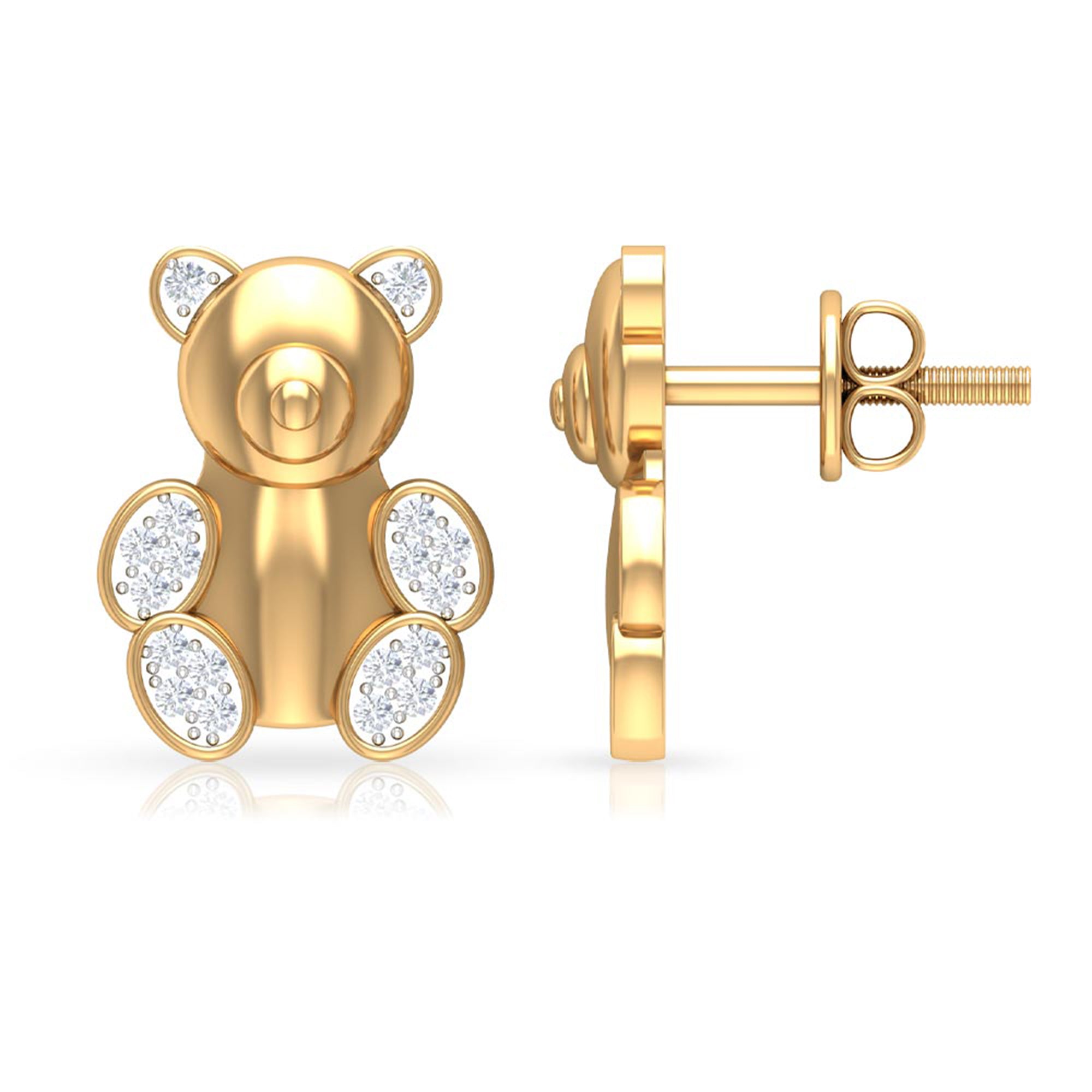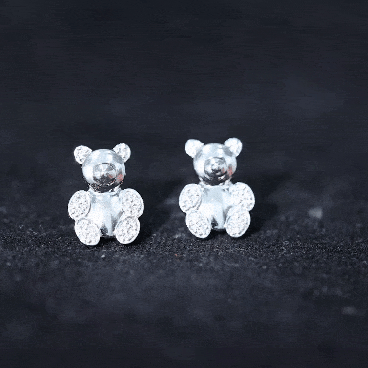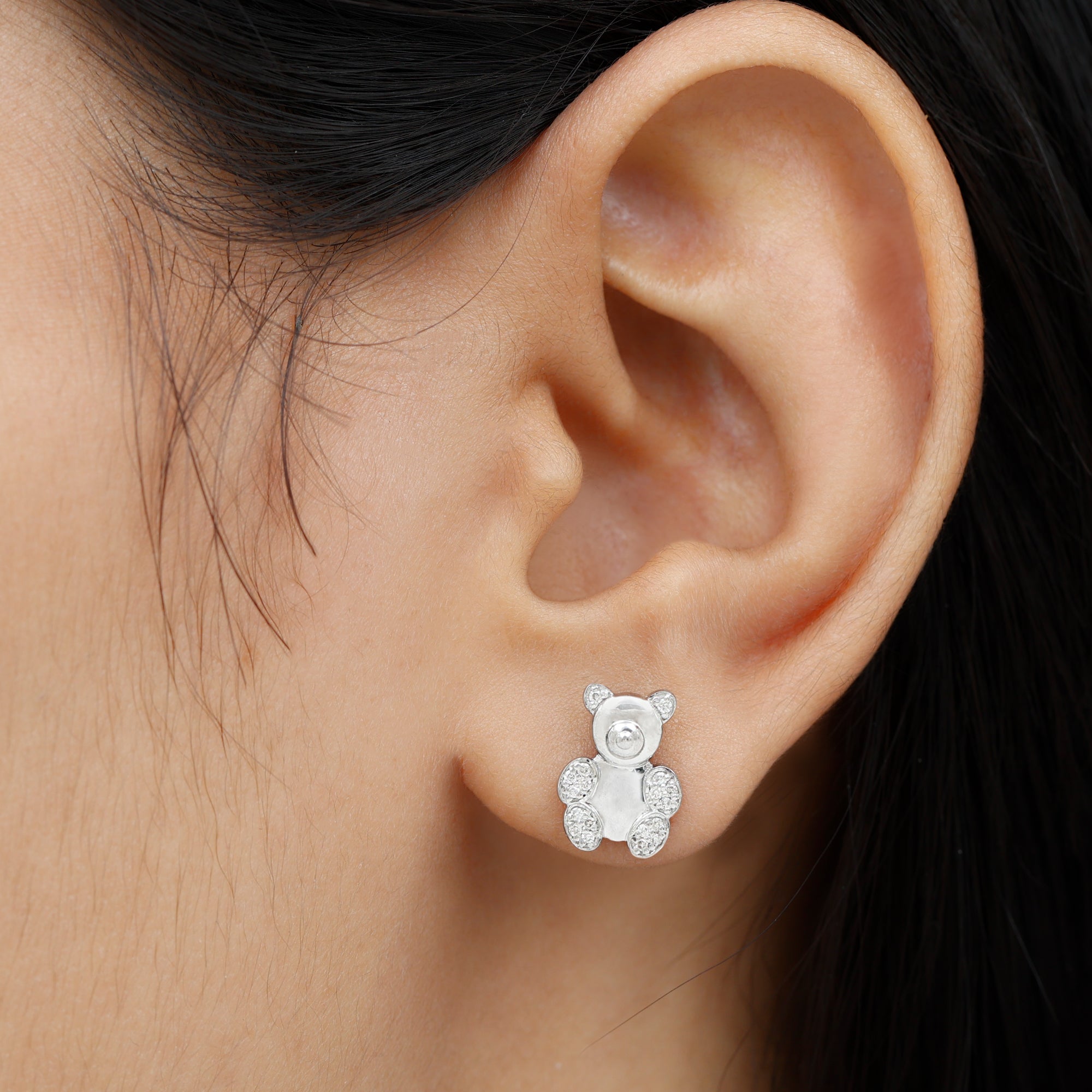 Teddy Bear Stud Earrings for Women with Diamonds