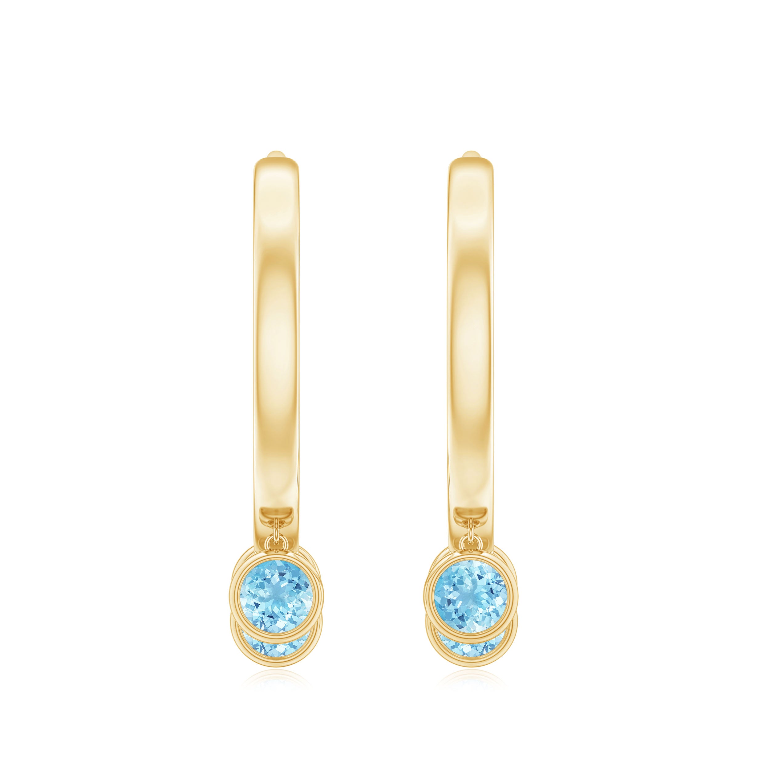 Carry a little sparkle with you everywhere you go with these Hoop Earrings, embellished with Round Shape Aquamarine Gemstone set in the Bezel Setting and delightfully crafted in Solid Gold Metal