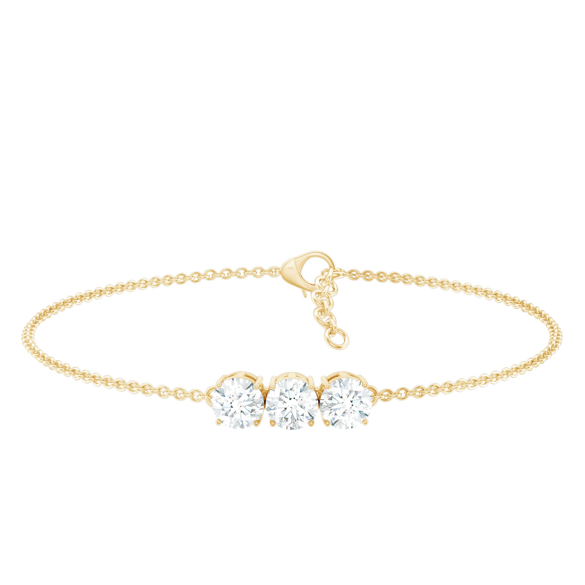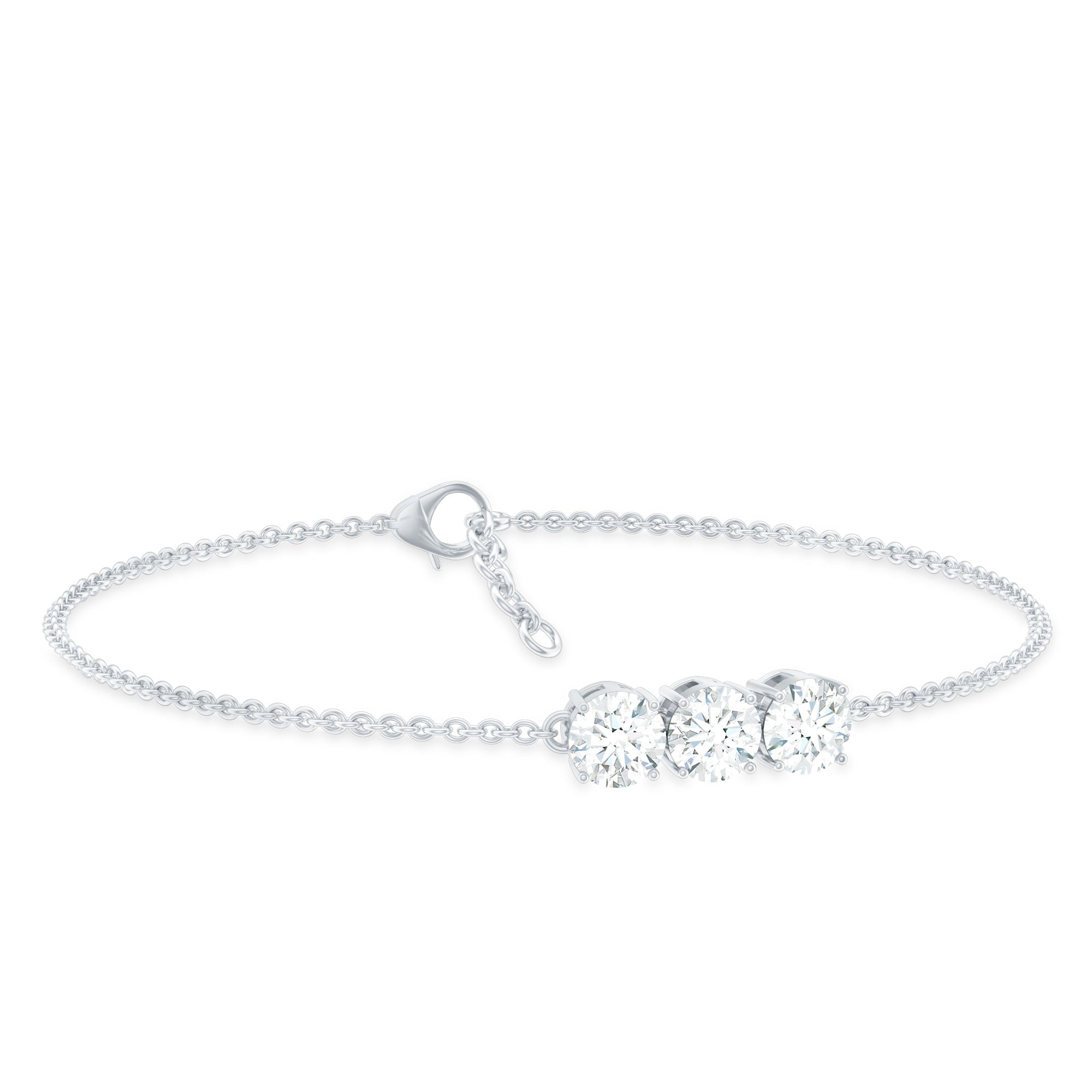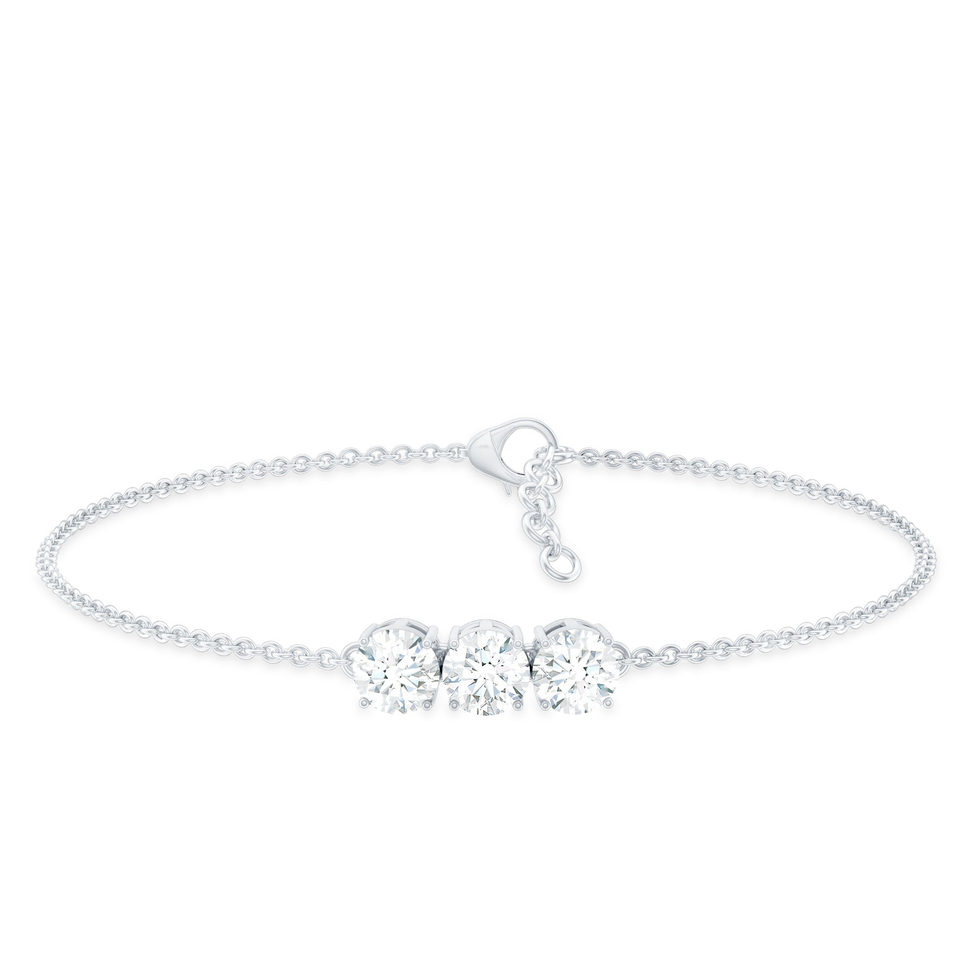 Three Stone Moissanite Chain Bracelet