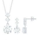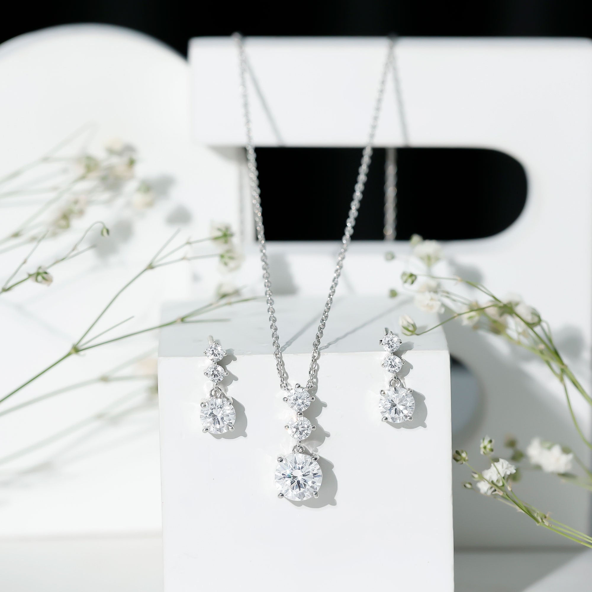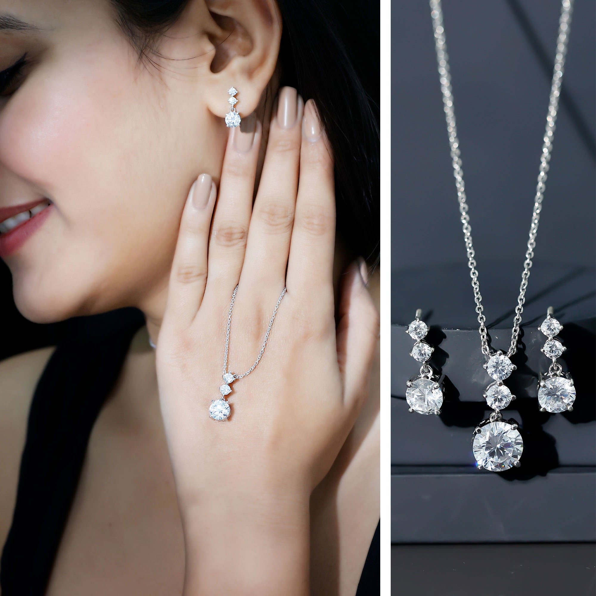 Three Stone Zircon Bridal Necklace and Earrings Set in Silver