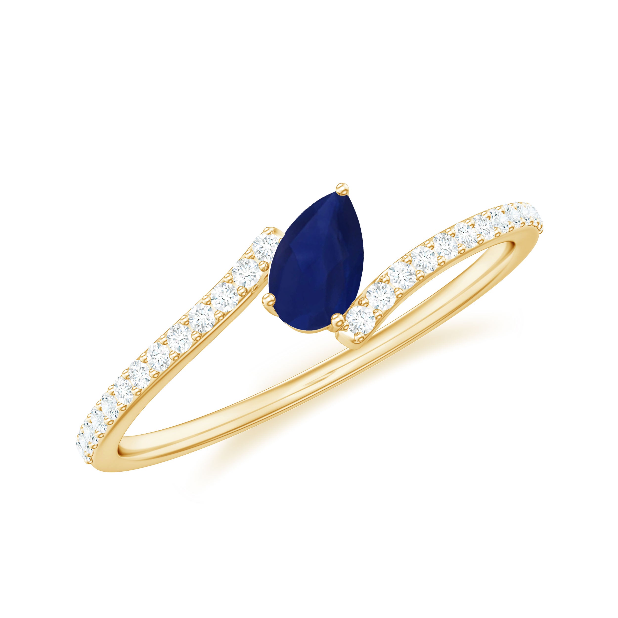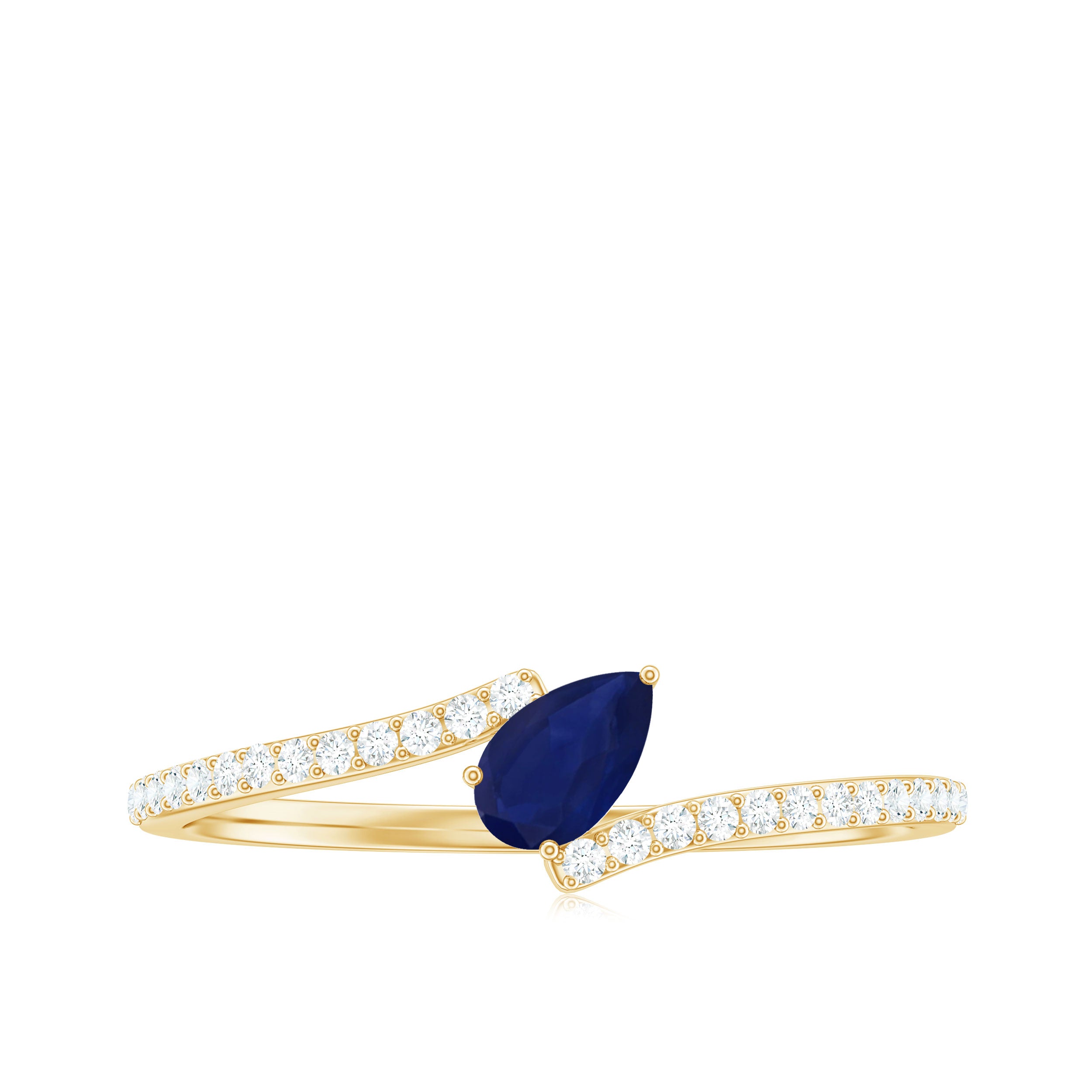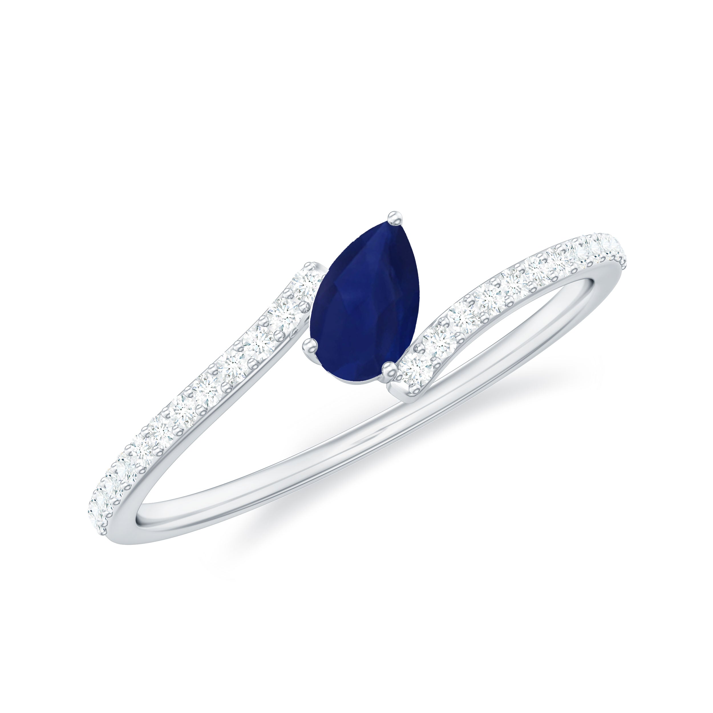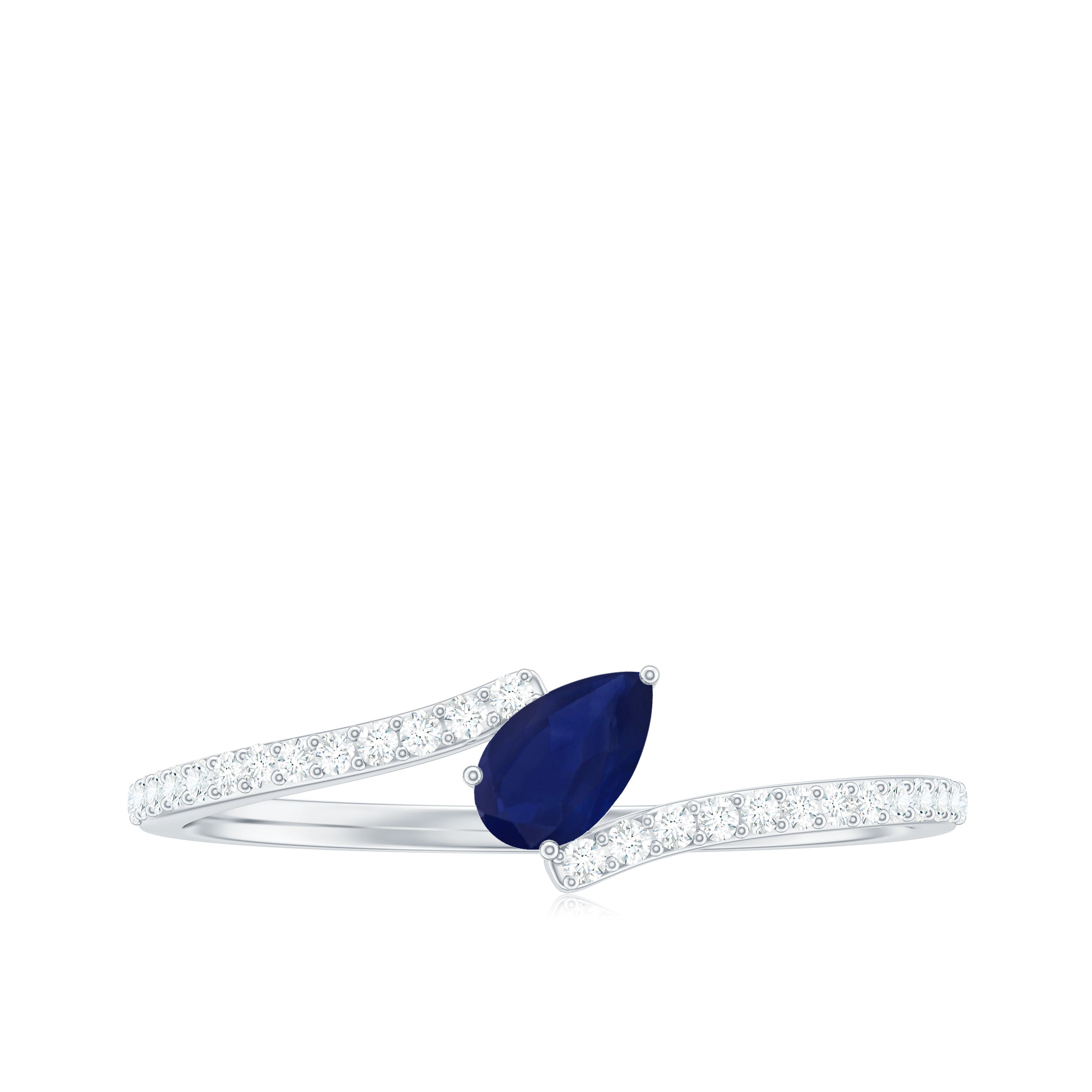 Tilted Pear Cut Blue Sapphire Solitaire Bypass Ring with Diamond
