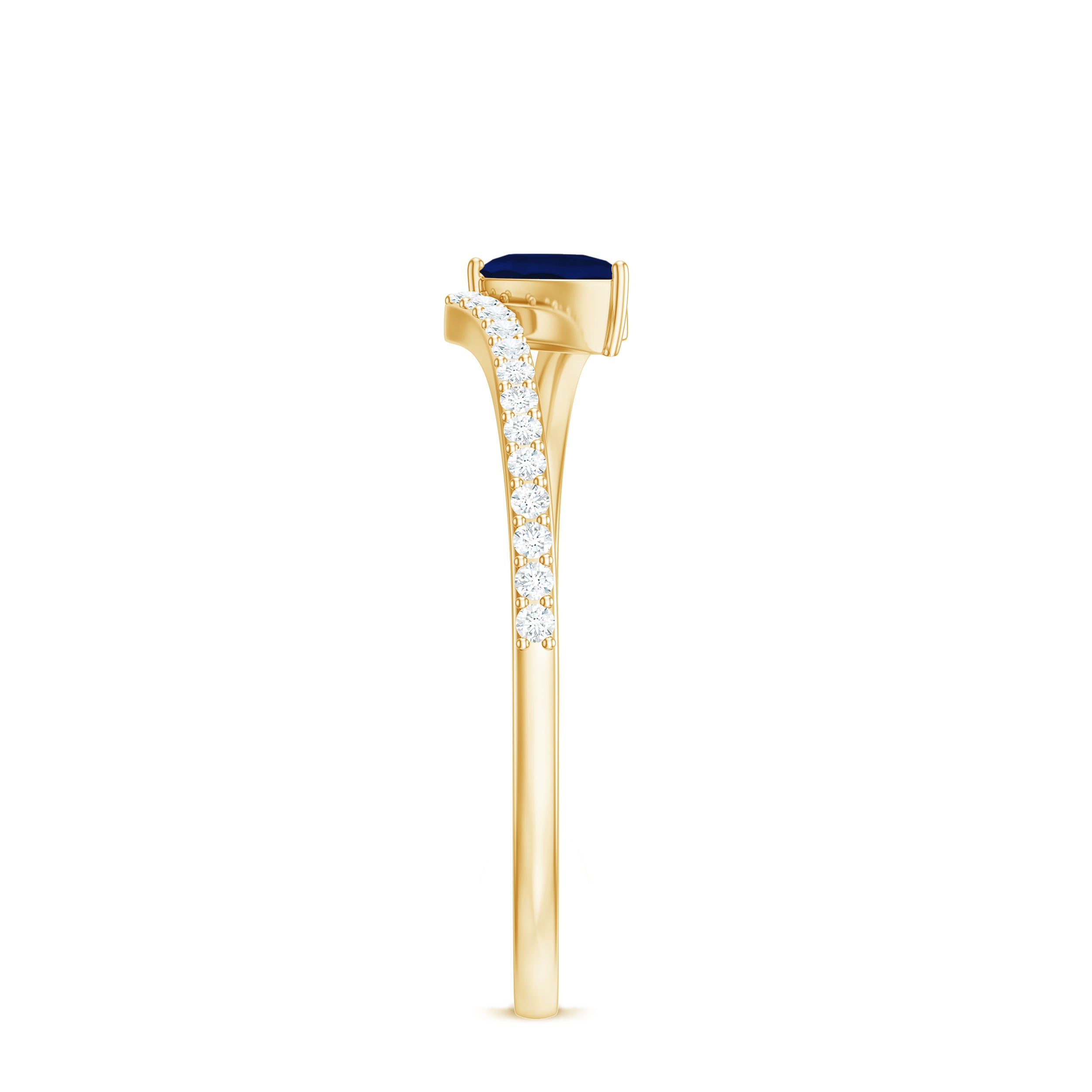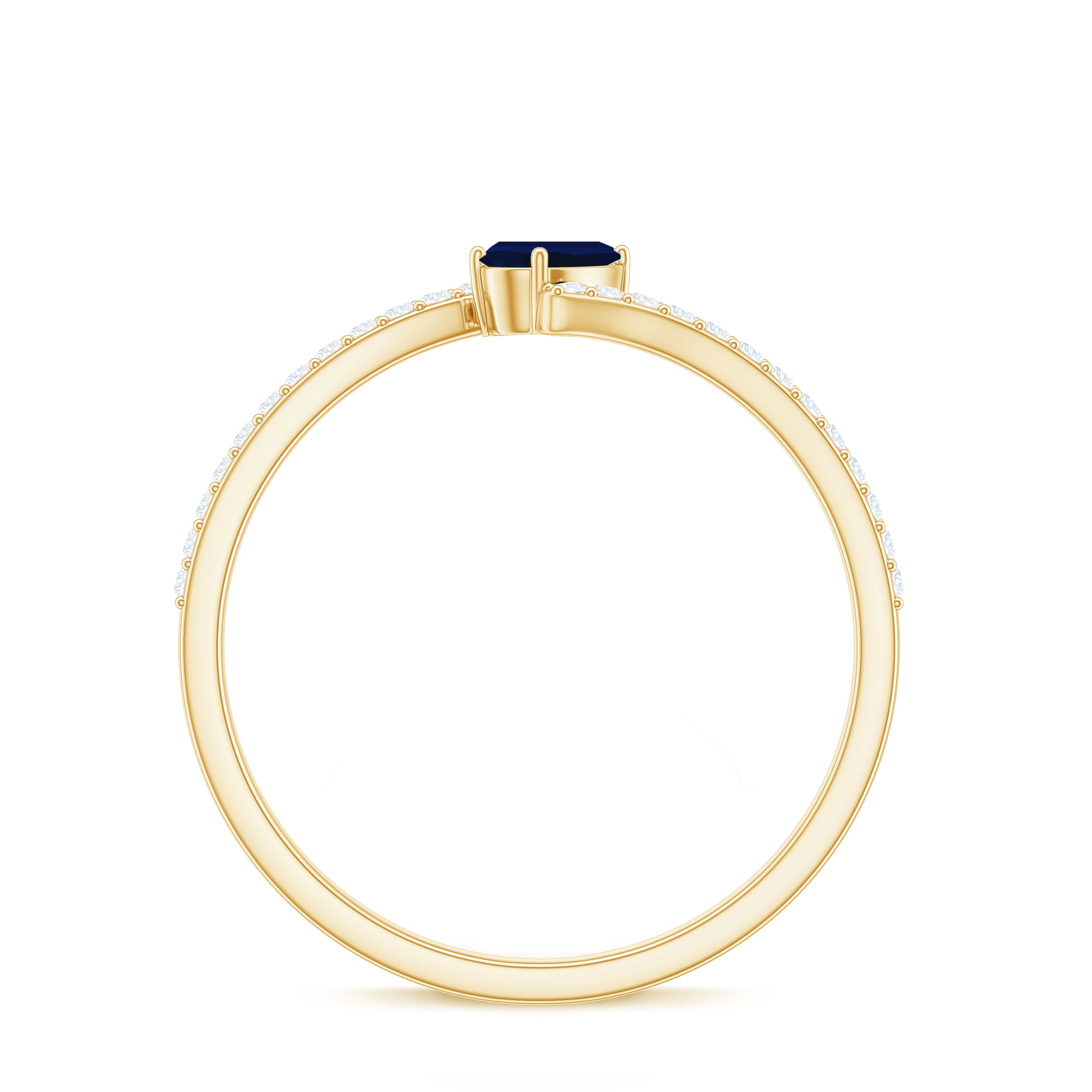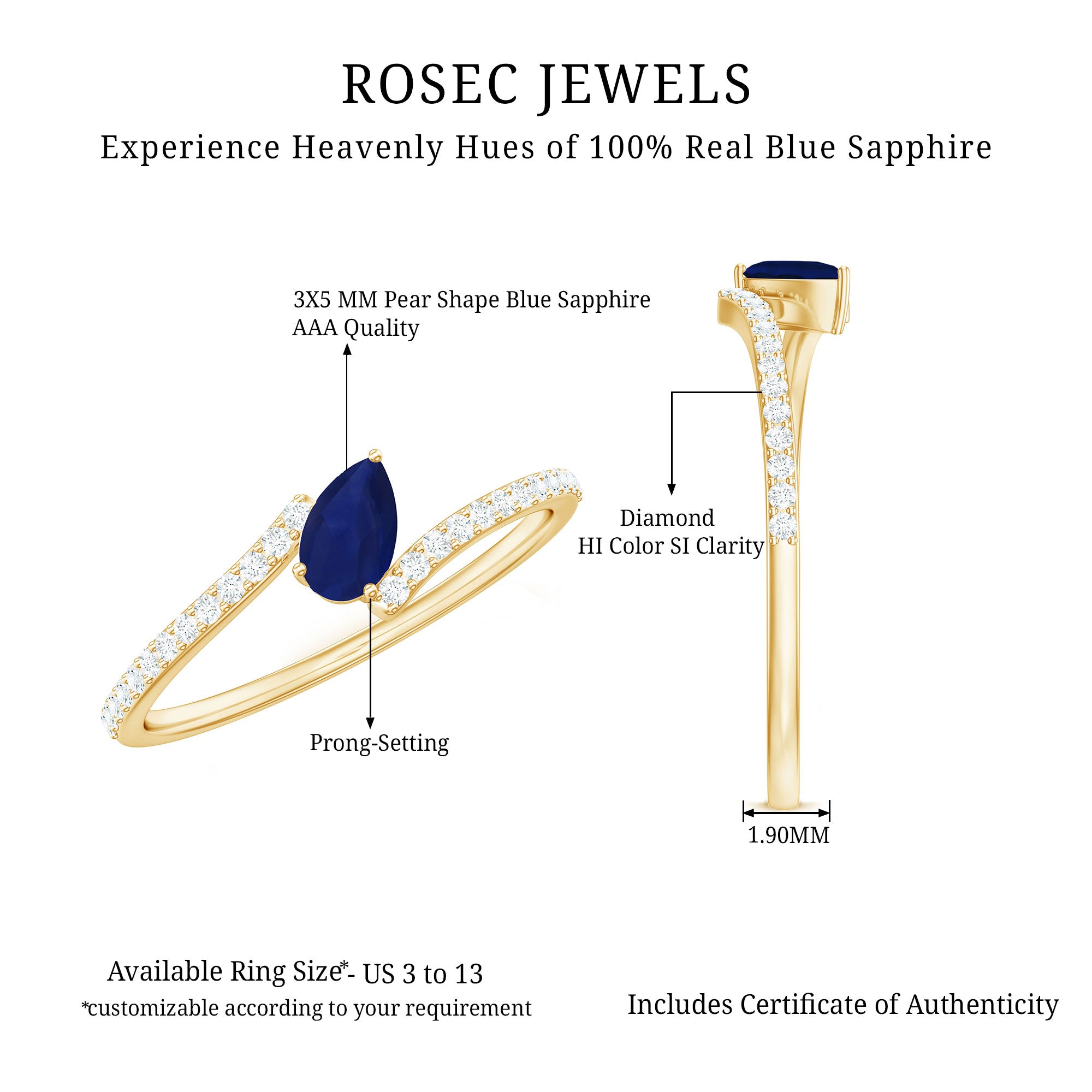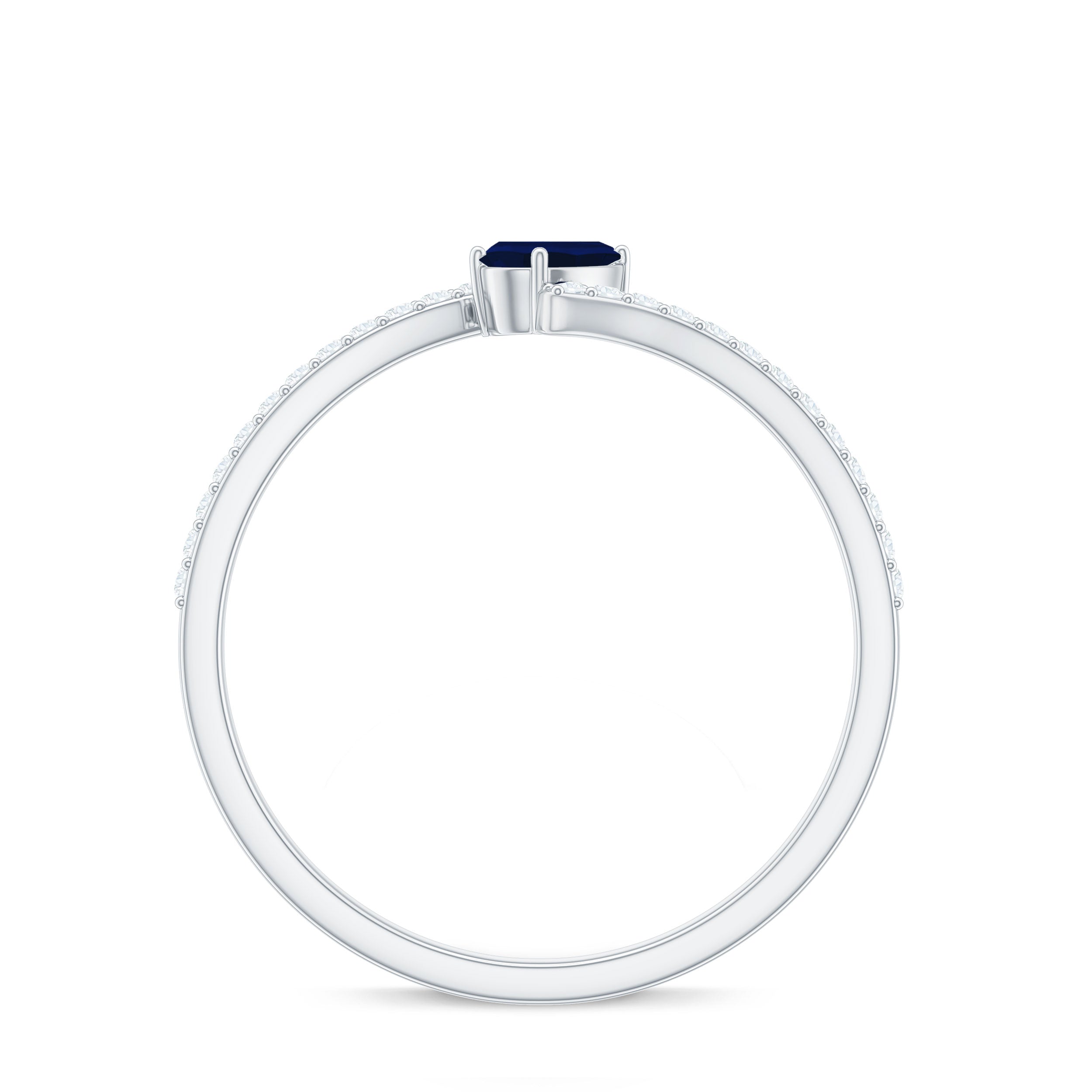 Tilted Pear Cut Blue Sapphire Solitaire Bypass Ring with Diamond