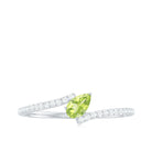 Experience the exceptional beauty of this Promise Ring that exudes uniqueness. At its center, a dazzling Pear Cut Peridot is skillfully studded, complemented by the brilliance of Sparkling Round Shape Diamond in a Prong Setting. This Tilted Bypass Promise Ring is an exquisite treasure that will make a stunning addition to your collection of jewelry.