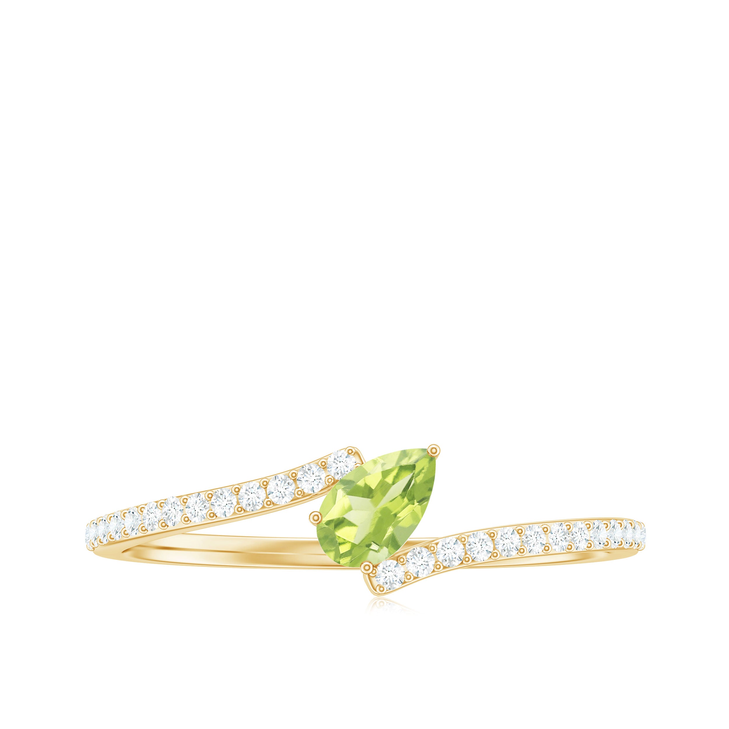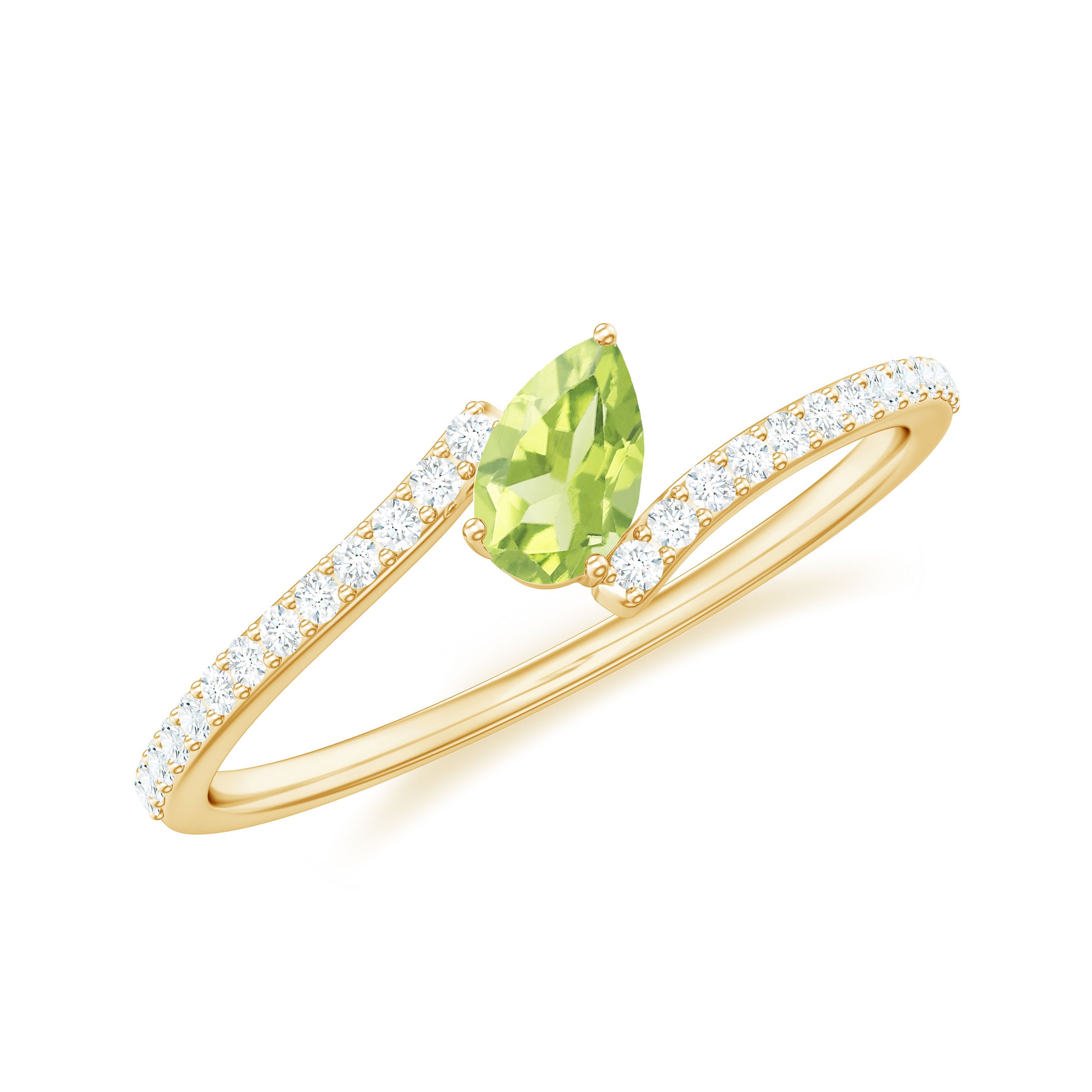 Tilted Pear Cut Peridot Solitaire Bypass Ring with Diamond