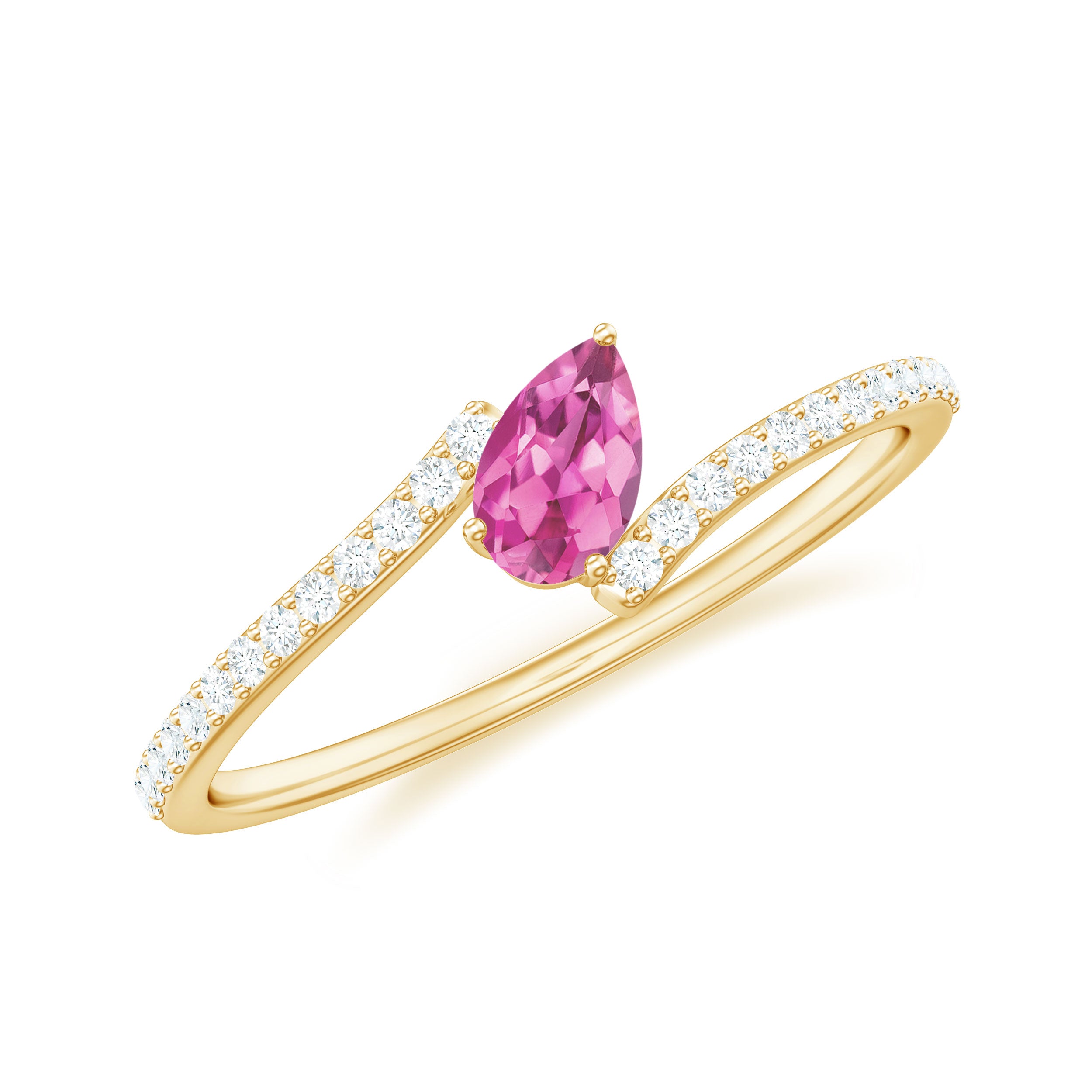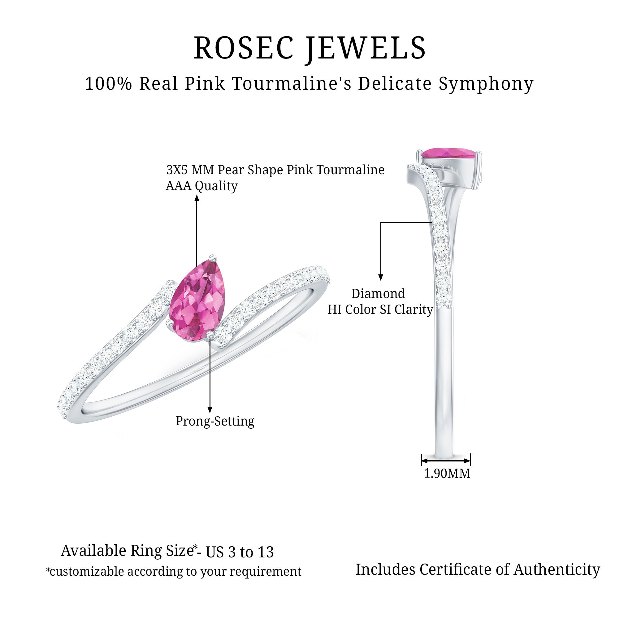 Get this exquisite Bypass Ring showcases a titled Pear Shape Pink Tourmaline secured by Prong Setting, and dainty Round Shape Diamond studded on its Bypass Shank. The Solitaire Ring comes in our ready-to-gift Signature Jewelry Box, it is a perfect choice for Birthday Gift, Anniversary Gift, and Valentines Day Gift for your special one.