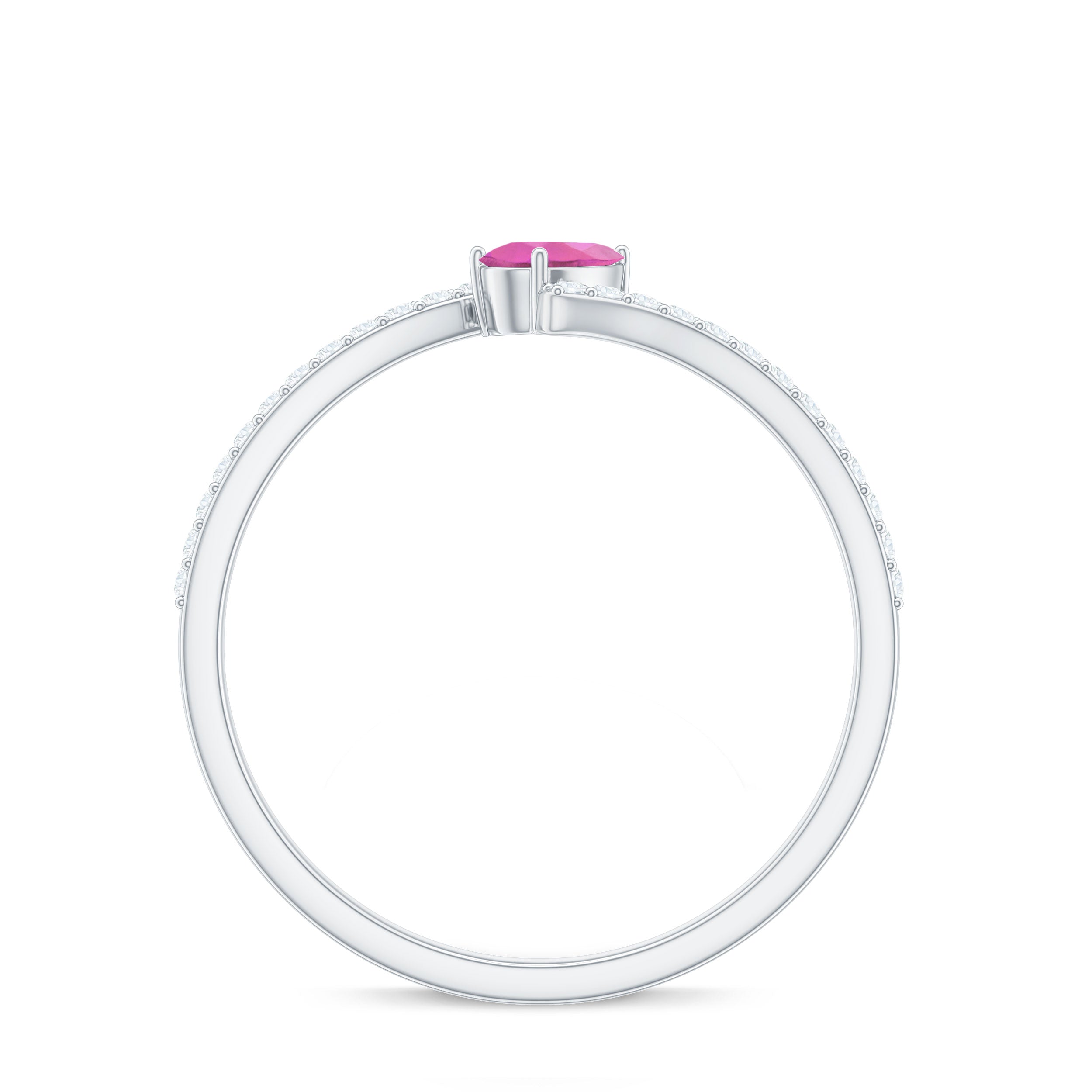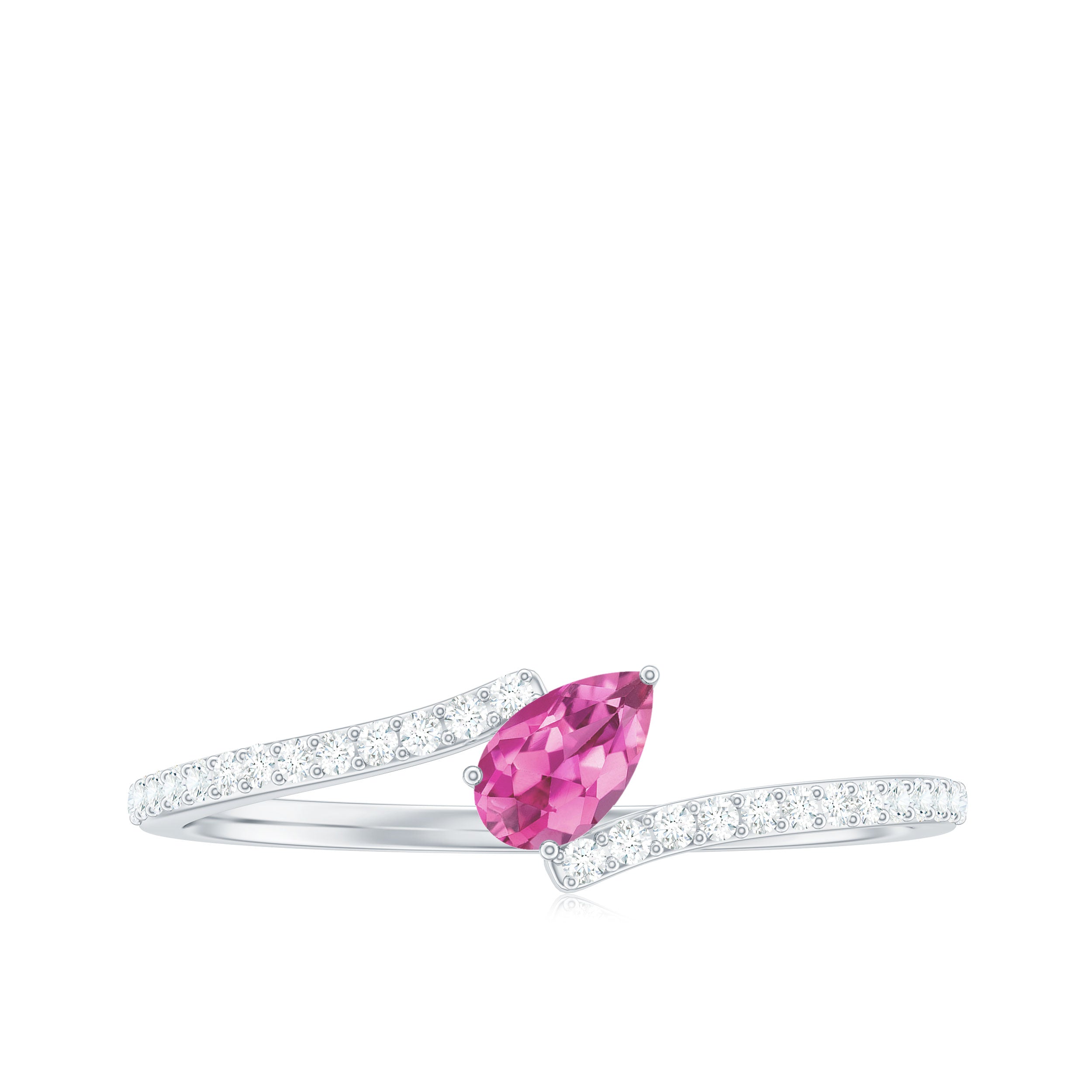 Tilted Pear Shape Pink Tourmaline and Diamond Bypass Promise Ring