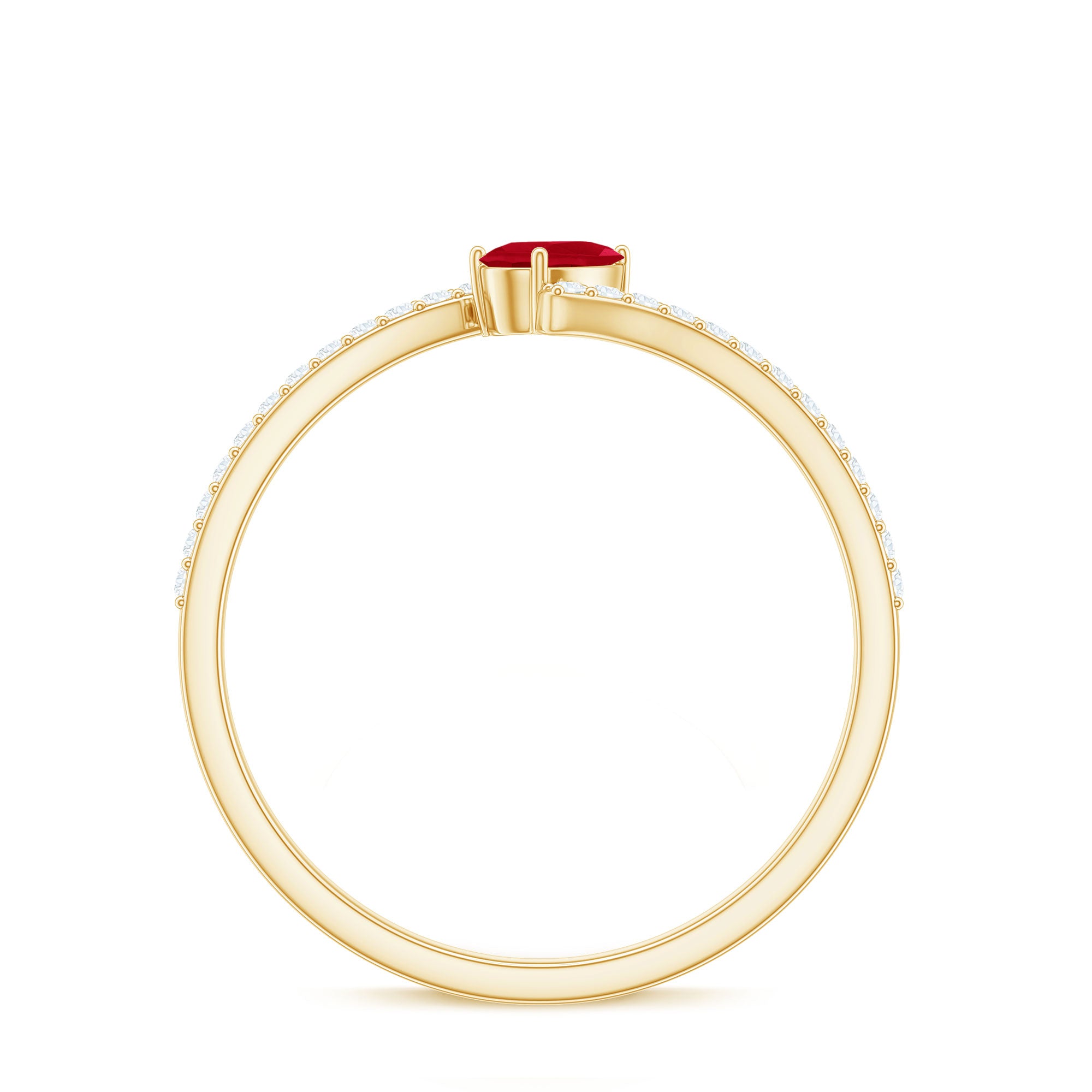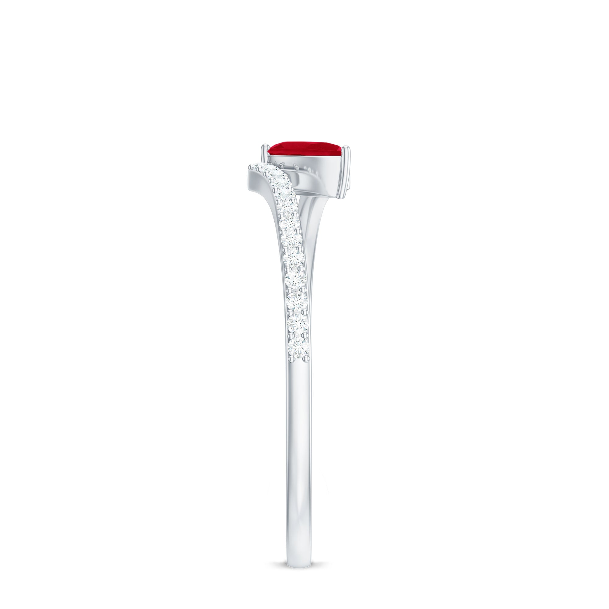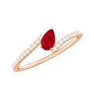 Convey your affection with this enchanting Tilted Promise Ring. It showcases a captivating Pear Cut Ruby, delicately set in a prong setting, accentuated by a bypass shank and sparkling Diamond gems. This ring is a symbol of your love, beautifully crafted to make a lasting impression.
