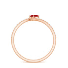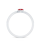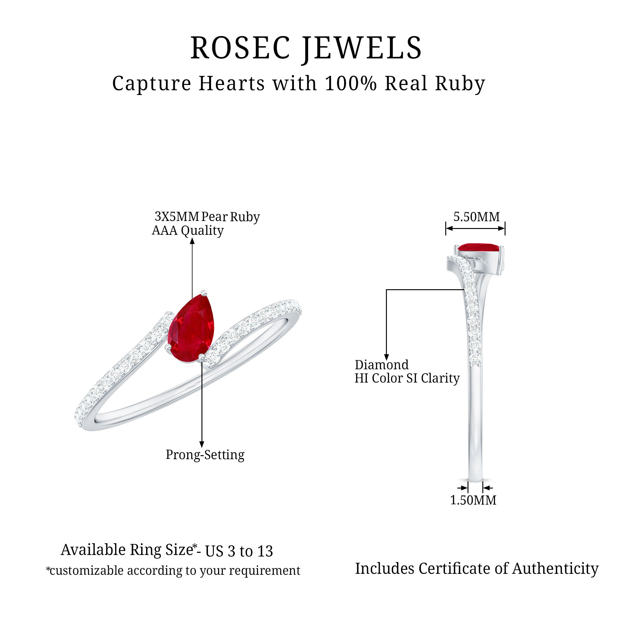 Tilted Pear Shape Ruby and Diamond Bypass Promise Ring