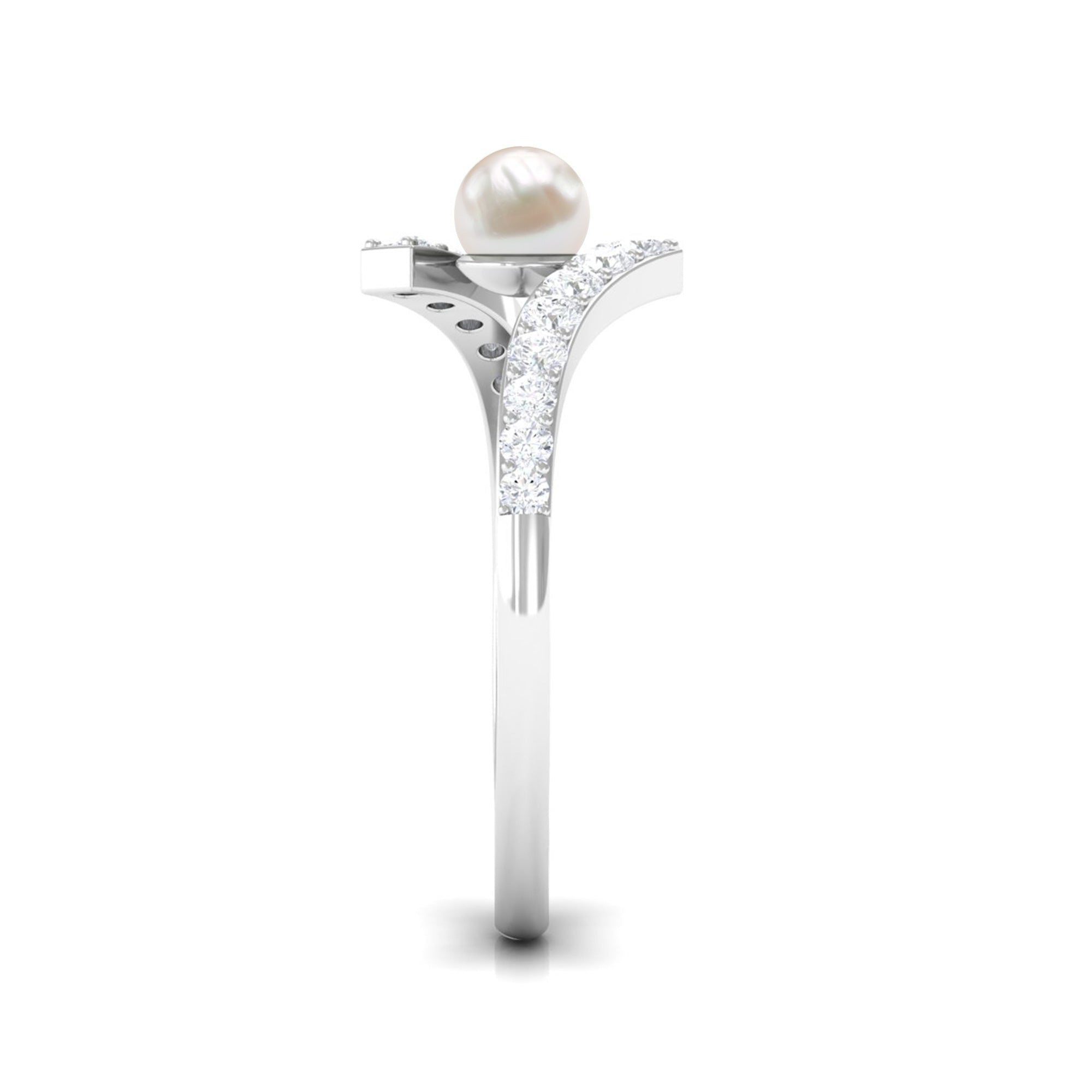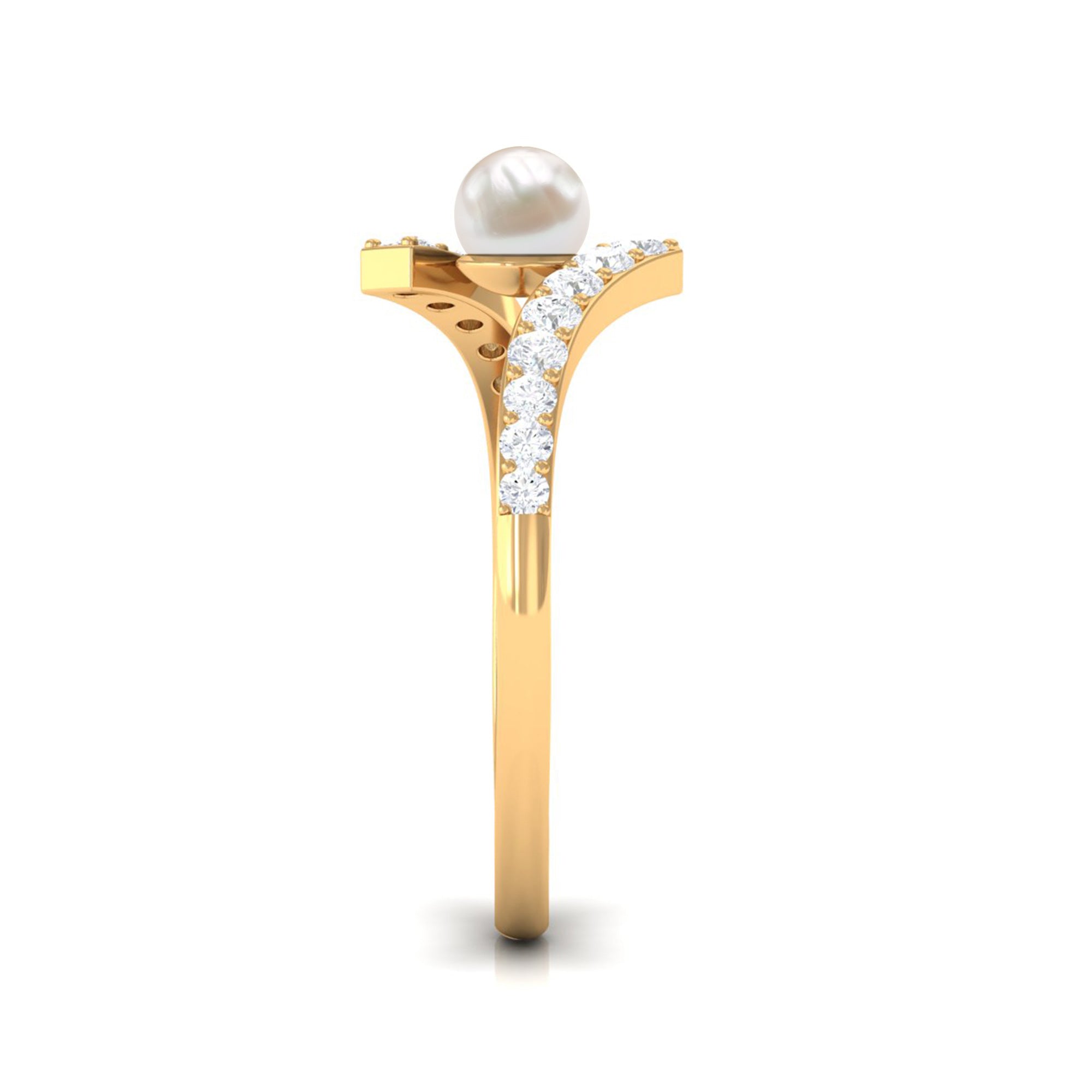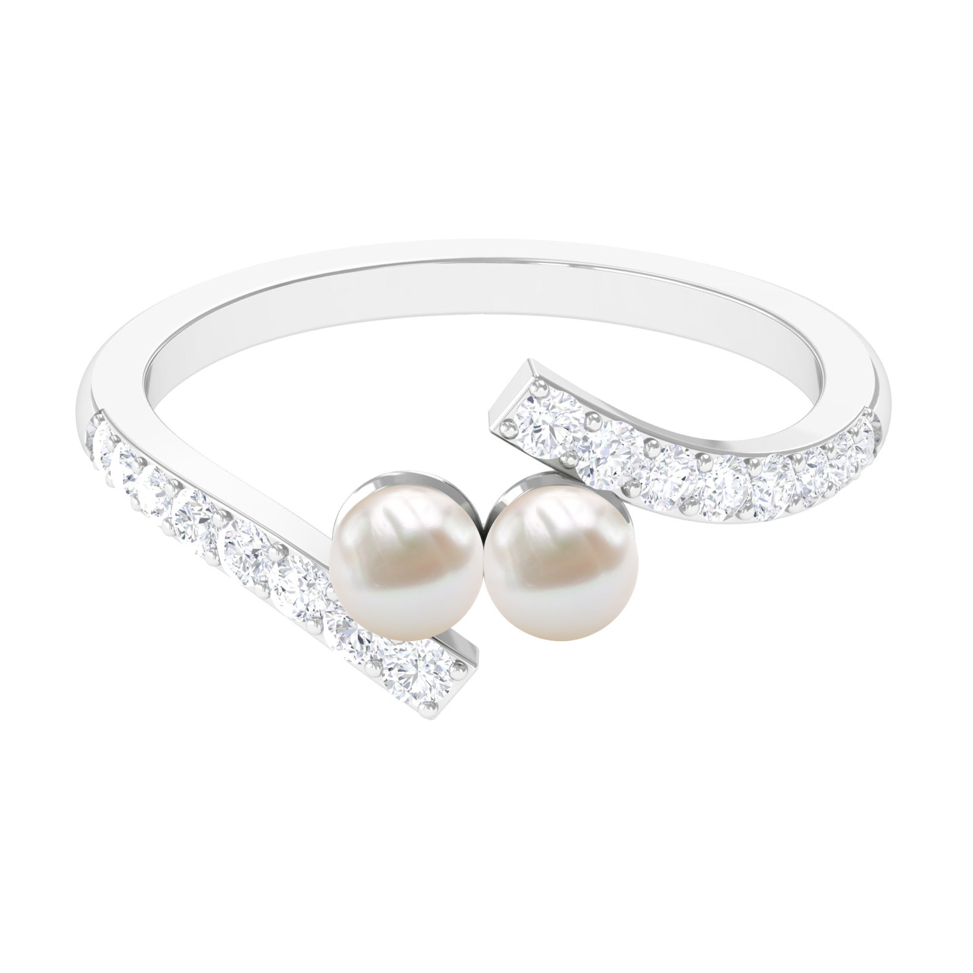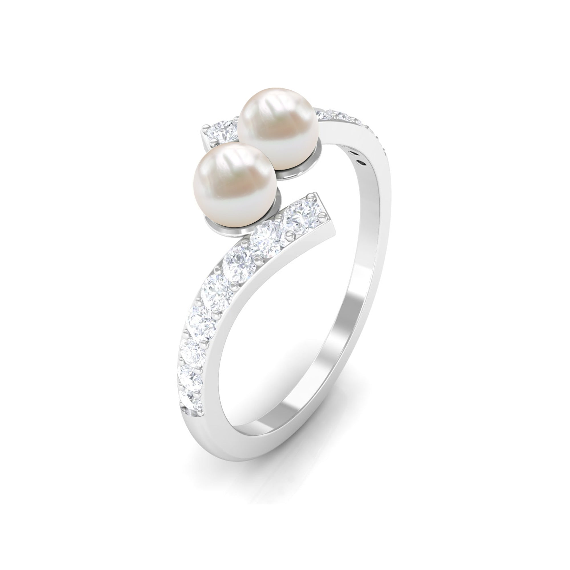 Toi et Moi Freshwater Pearl Bypass Ring with Diamond