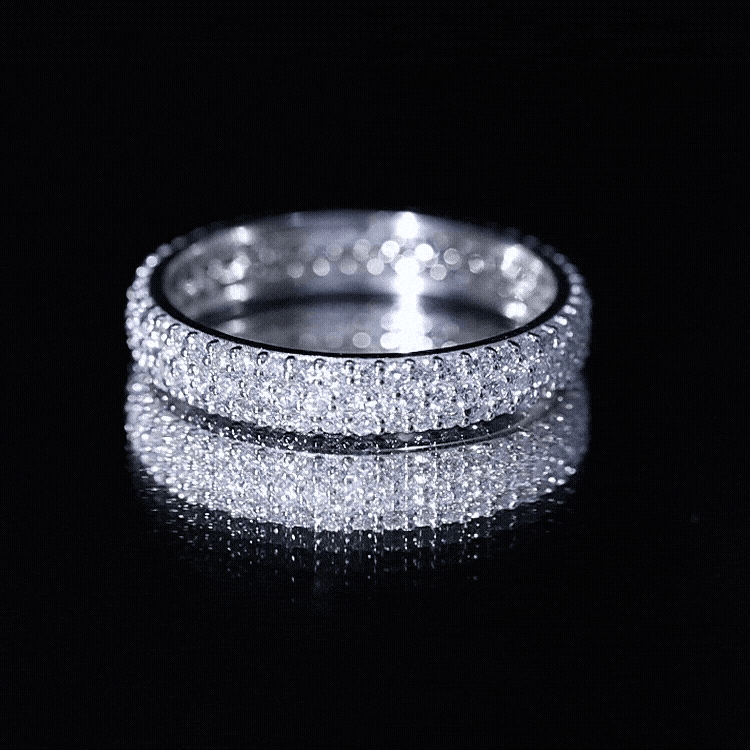 This triple row moissanite classic wedding ring band is designed for women who want a refined yet statement-making look. The three aligned rows create a continuous surface of brilliance, offering a balanced blend of elegance and presence. Whether chosen as a wedding band or a meaningful anniversary ring, it delivers a timeless aesthetic with modern radiance.