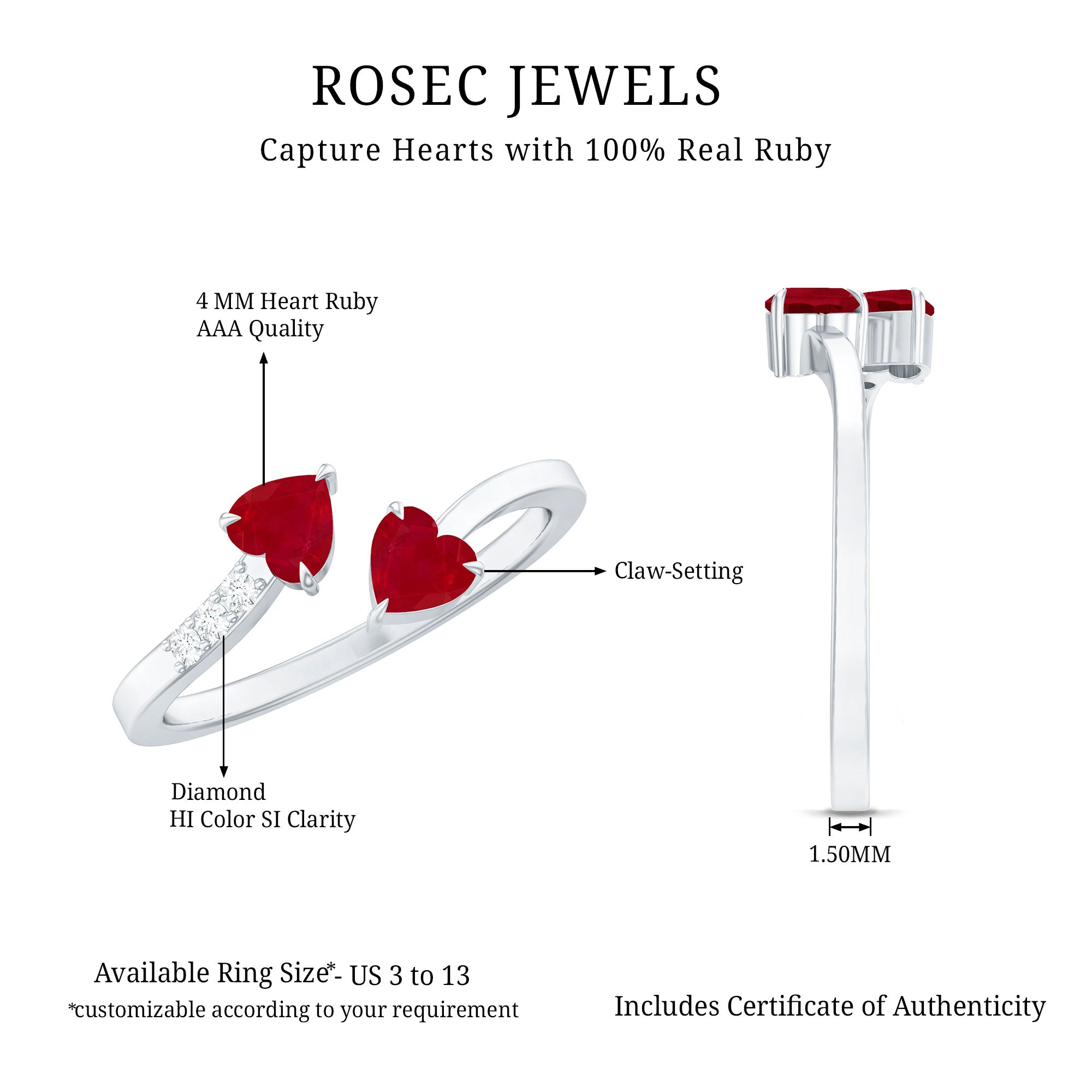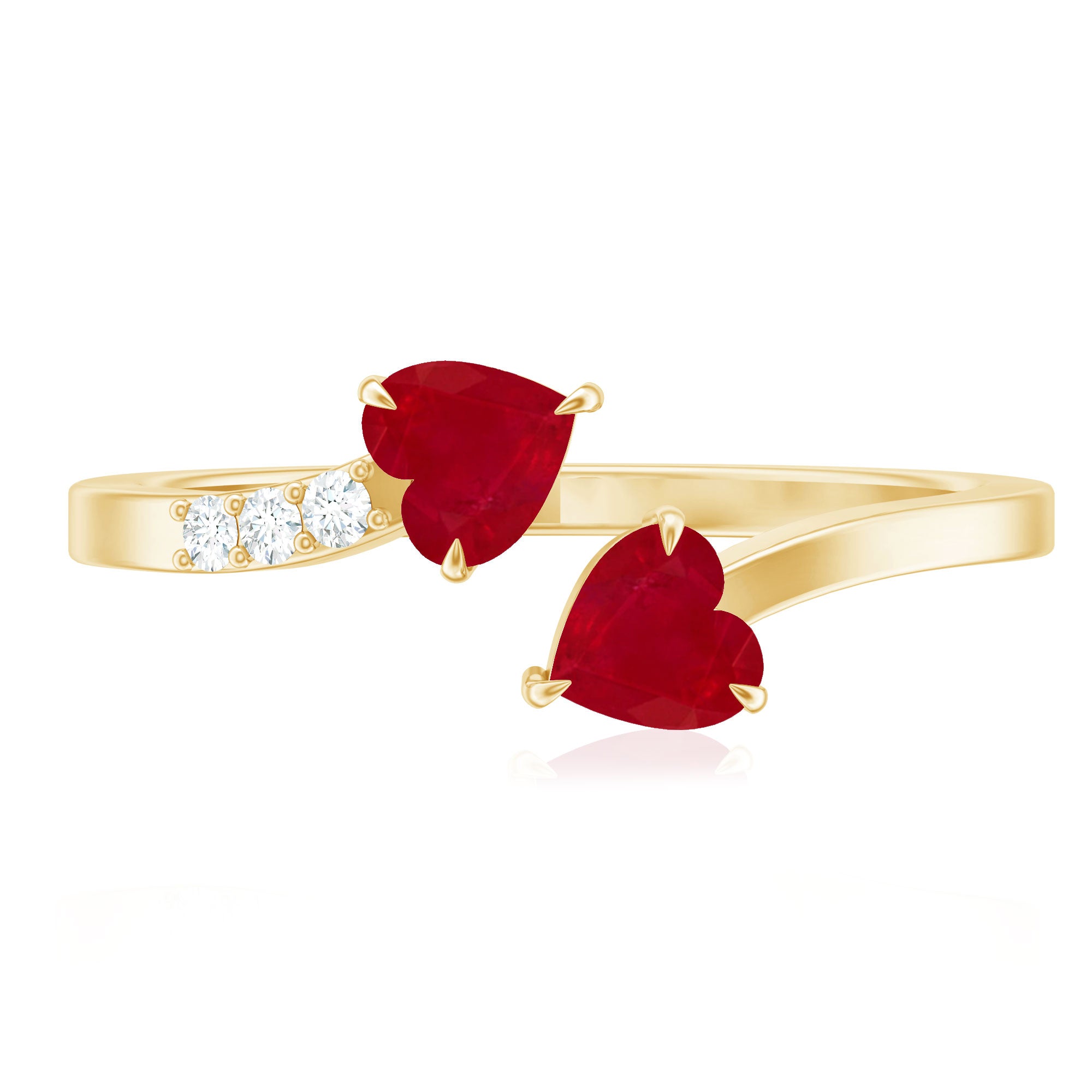 Twin Heart Ruby Engagement Ring in Wrap Style with Diamond