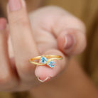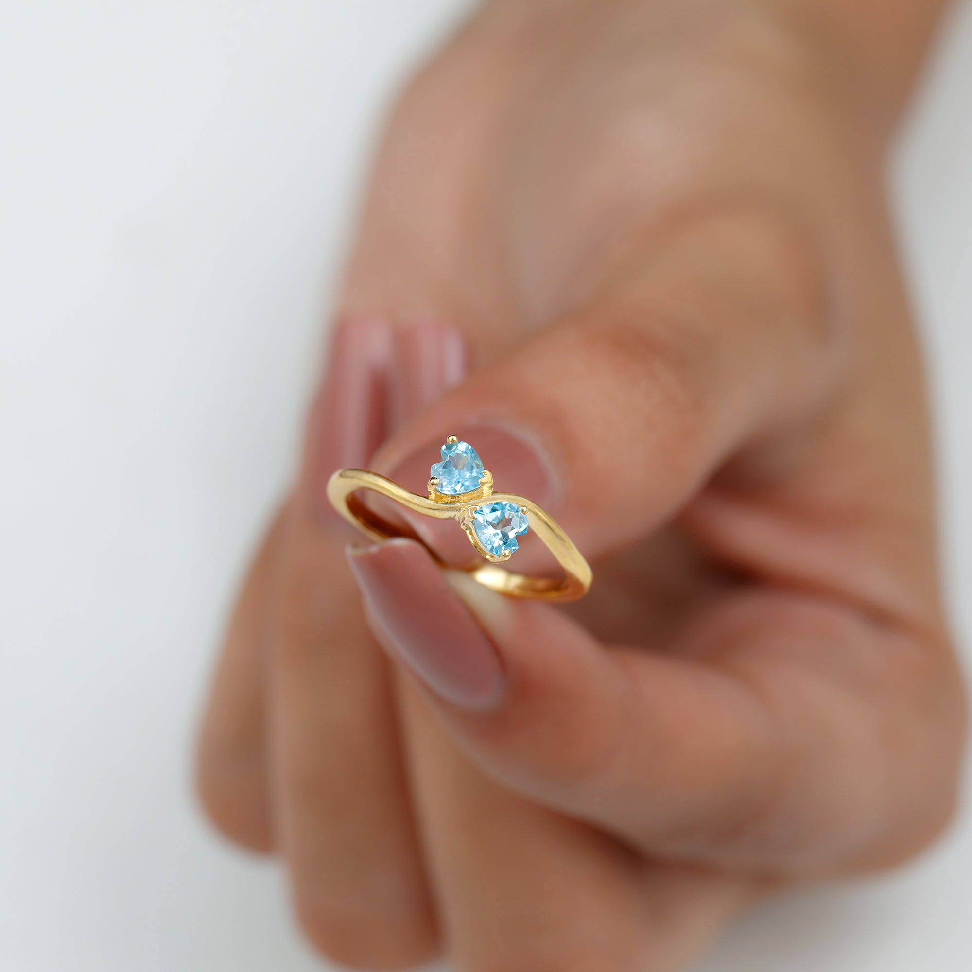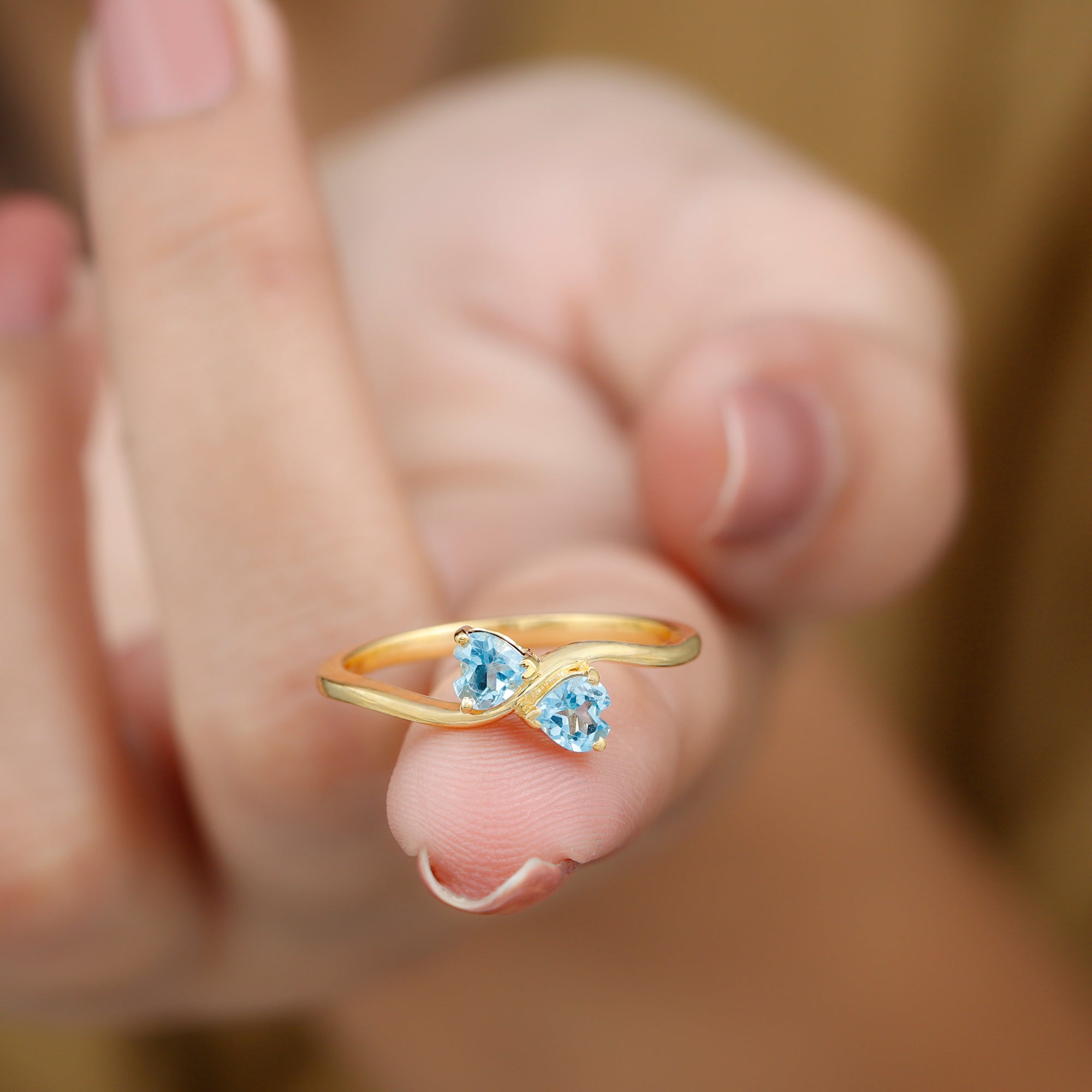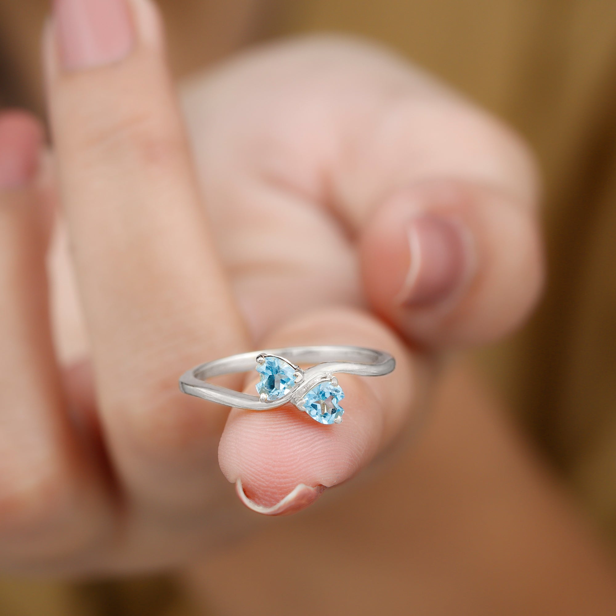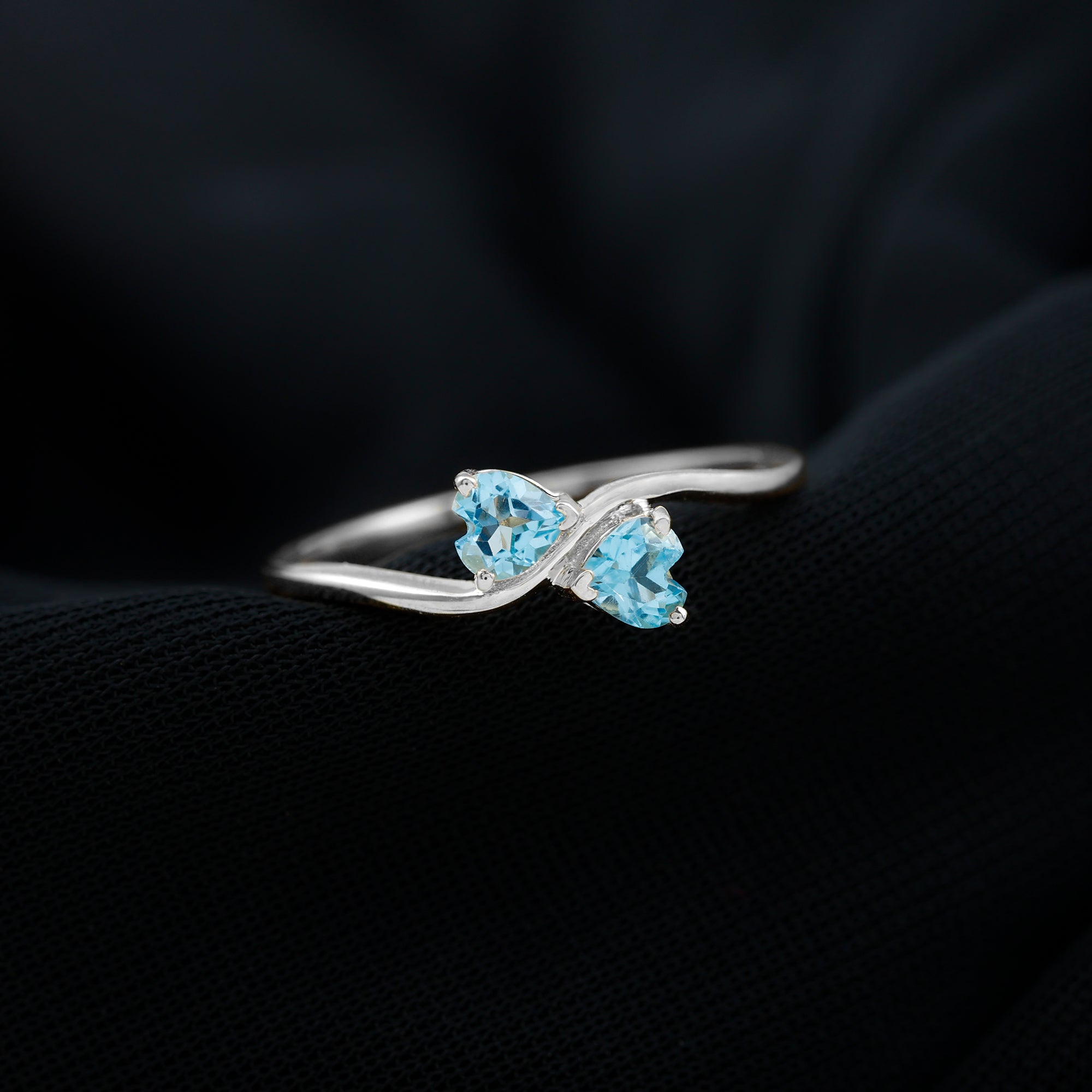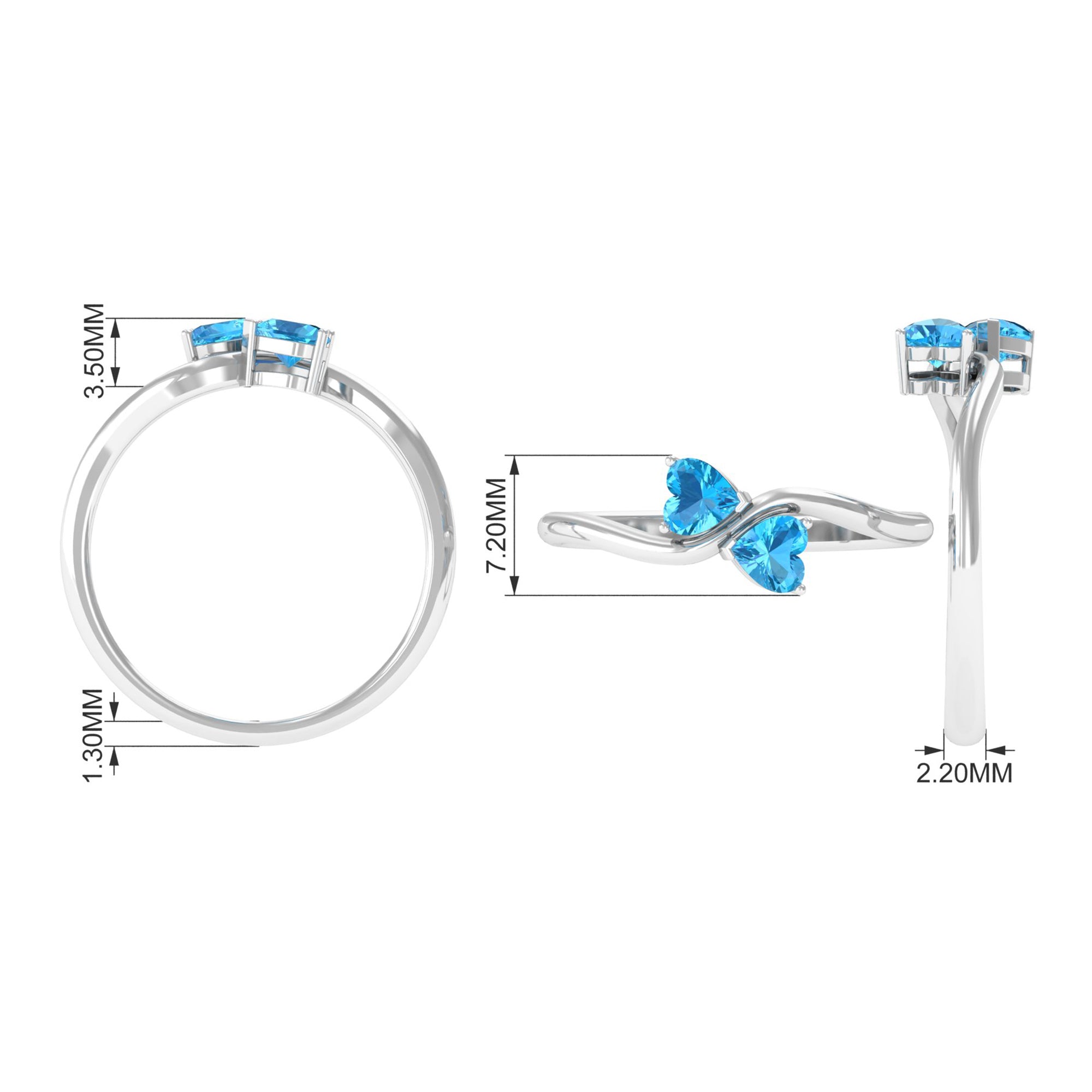 Two Stone Heart Promise Ring with Natural Swiss Blue Topaz