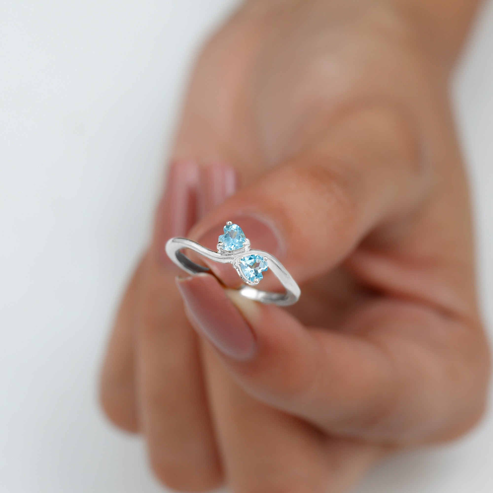This Heart-Shaped Swiss Blue Topaz Promise Ring is crafted with care and attention to detail. The 0.5 Carat AAA-quality Swiss Blue Topaz stones are certified and have passed strict quality inspections. This charming two-stone ring is sure to delight any woman.
