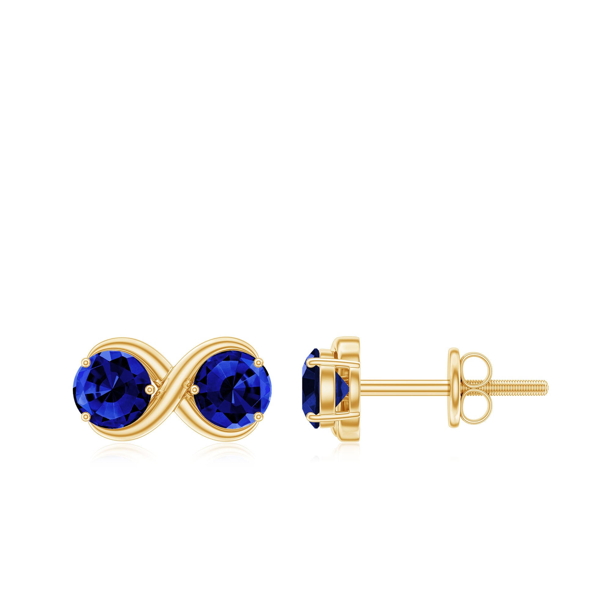 Two Stone Infinity Stud Earrings with Created Blue Sapphire
