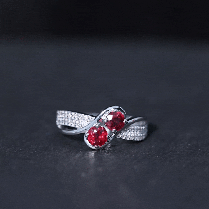 Two Stone Ruby Bypass Engagement Ring with Diamond