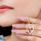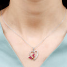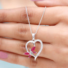 Two Tone Butterfly Heart Pendant with Created Ruby and Diamond