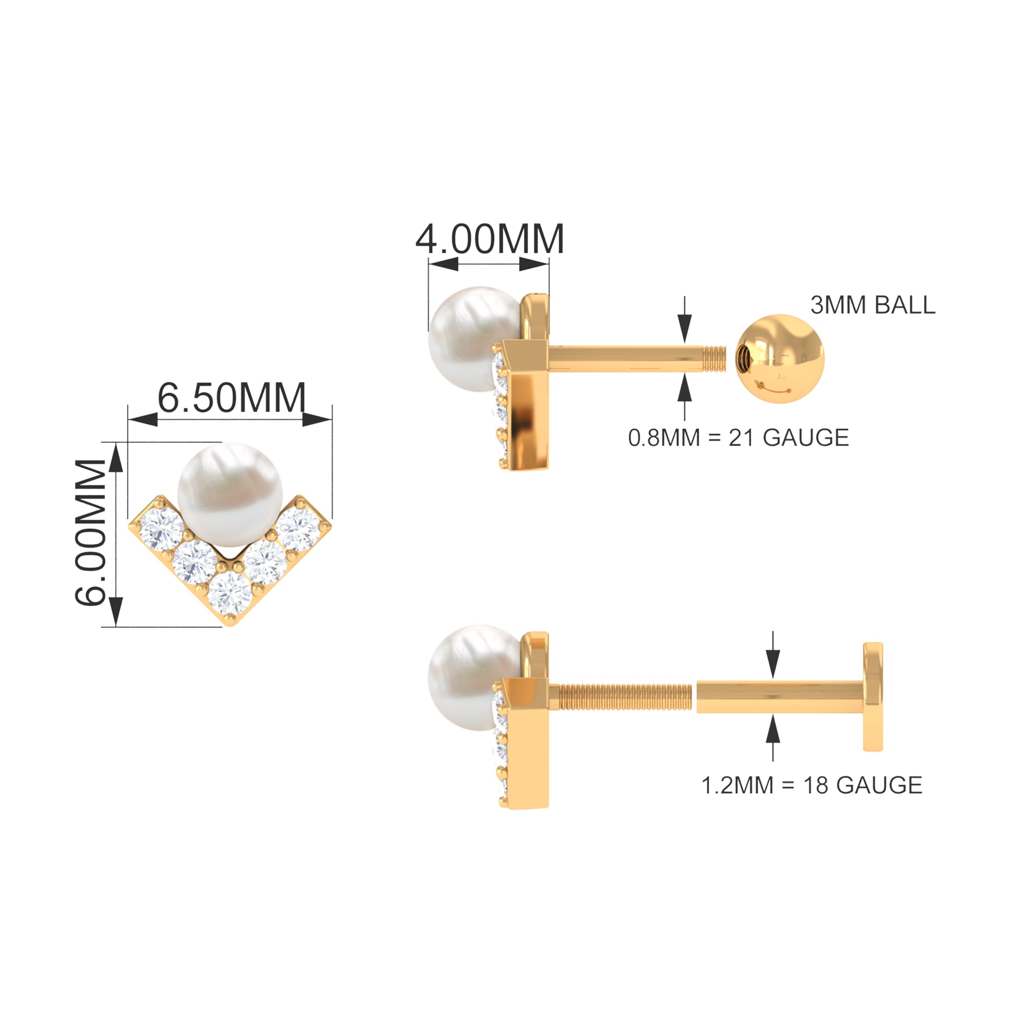 Unique Freshwater Pearl Cartilage Earring with Moissanite