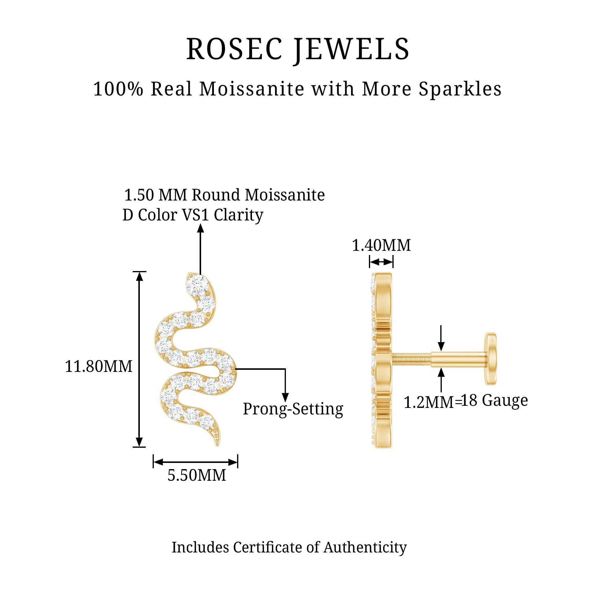 Unique Moissanite Snake Crawler Cartilage Earring in Gold