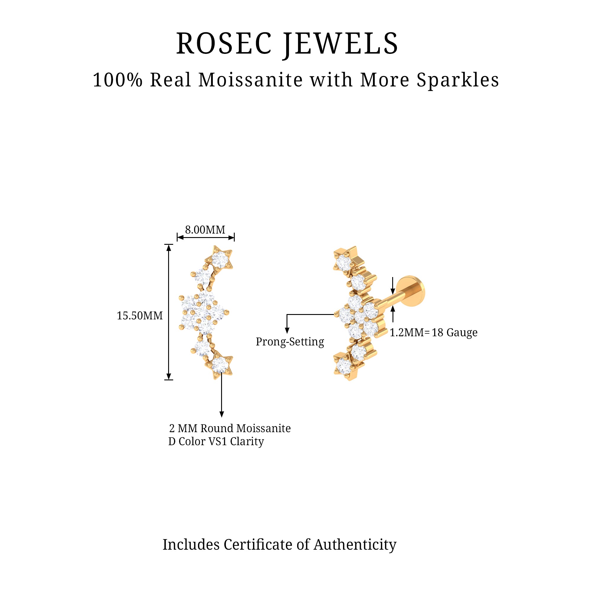 Experience the ethereal charm of the Moissanite Star Crawler Earring that showcases Round Cut Moissanite embedded in the star-shaped structure, delicately crafted with Solid Metal. You can wear this Moissanite Earring on your Helix, Cartilage, or Upper Lobe Piercing. This Celestial Earring will create an everlasting impression on everyones mind.