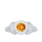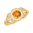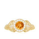Vintage Citrine Diamond Engagement Ring with Beaded Detail