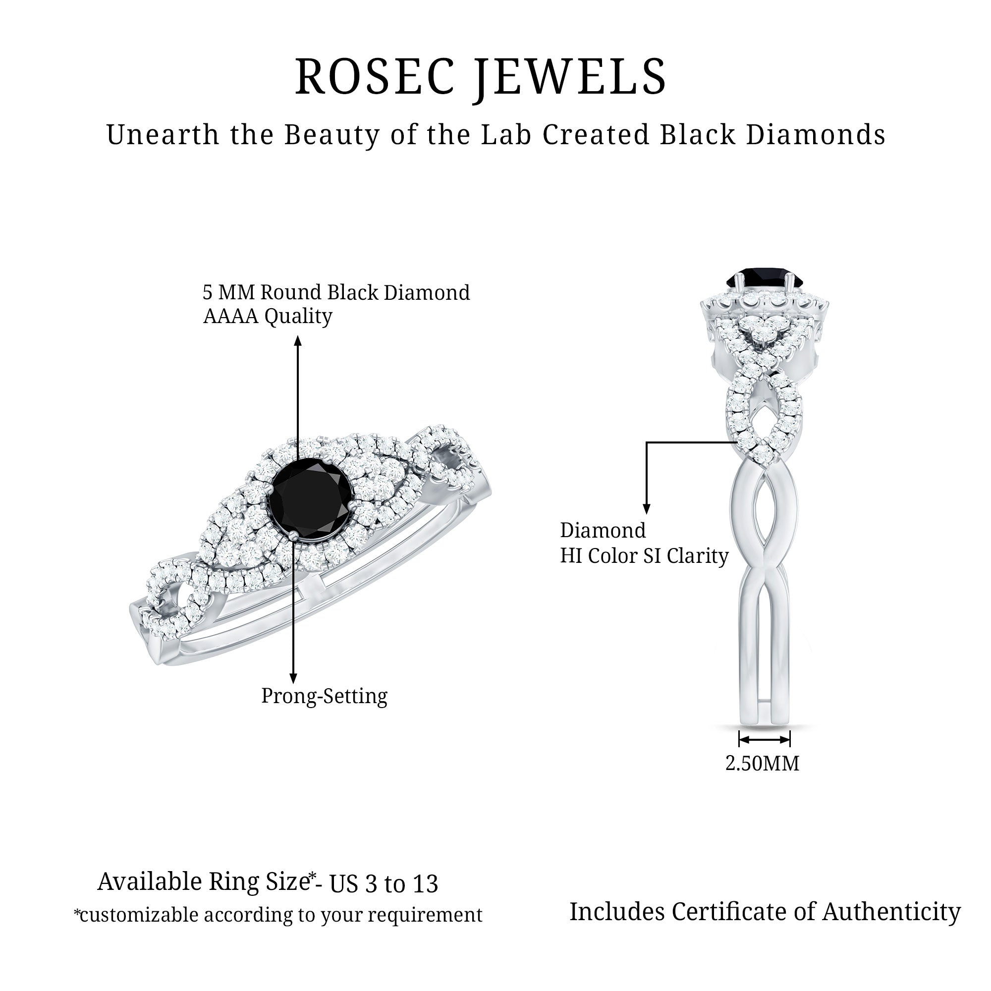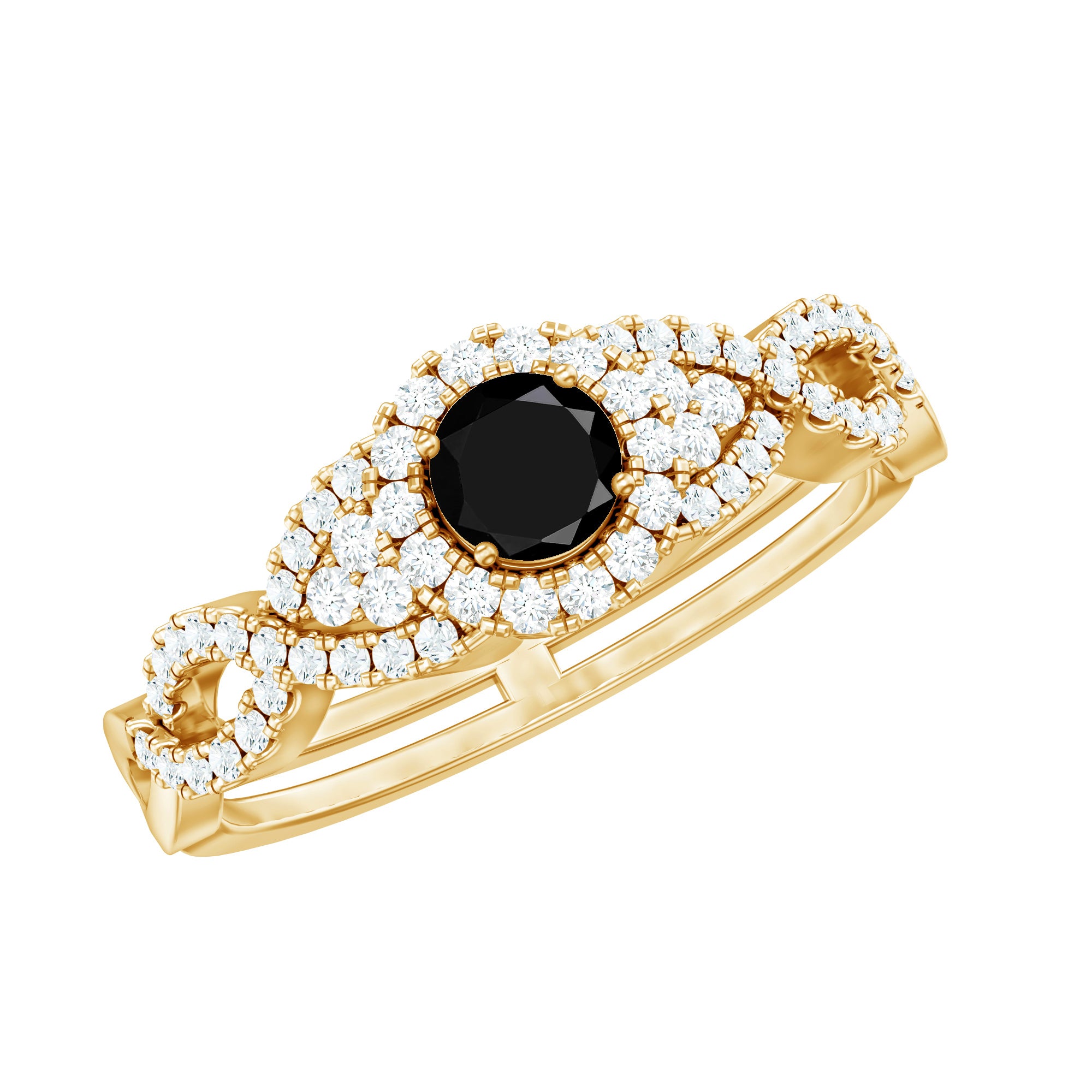 This Vintage Engagement Ring, crafted from solid gold, is a magnificent choice for your special day. The crisscross design is adorned with round-cut created black diamond and Diamond, adding a dazzling and captivating appeal to the ring. Make your special day even more memorable with this beautiful created Black Diamond engagement ring.