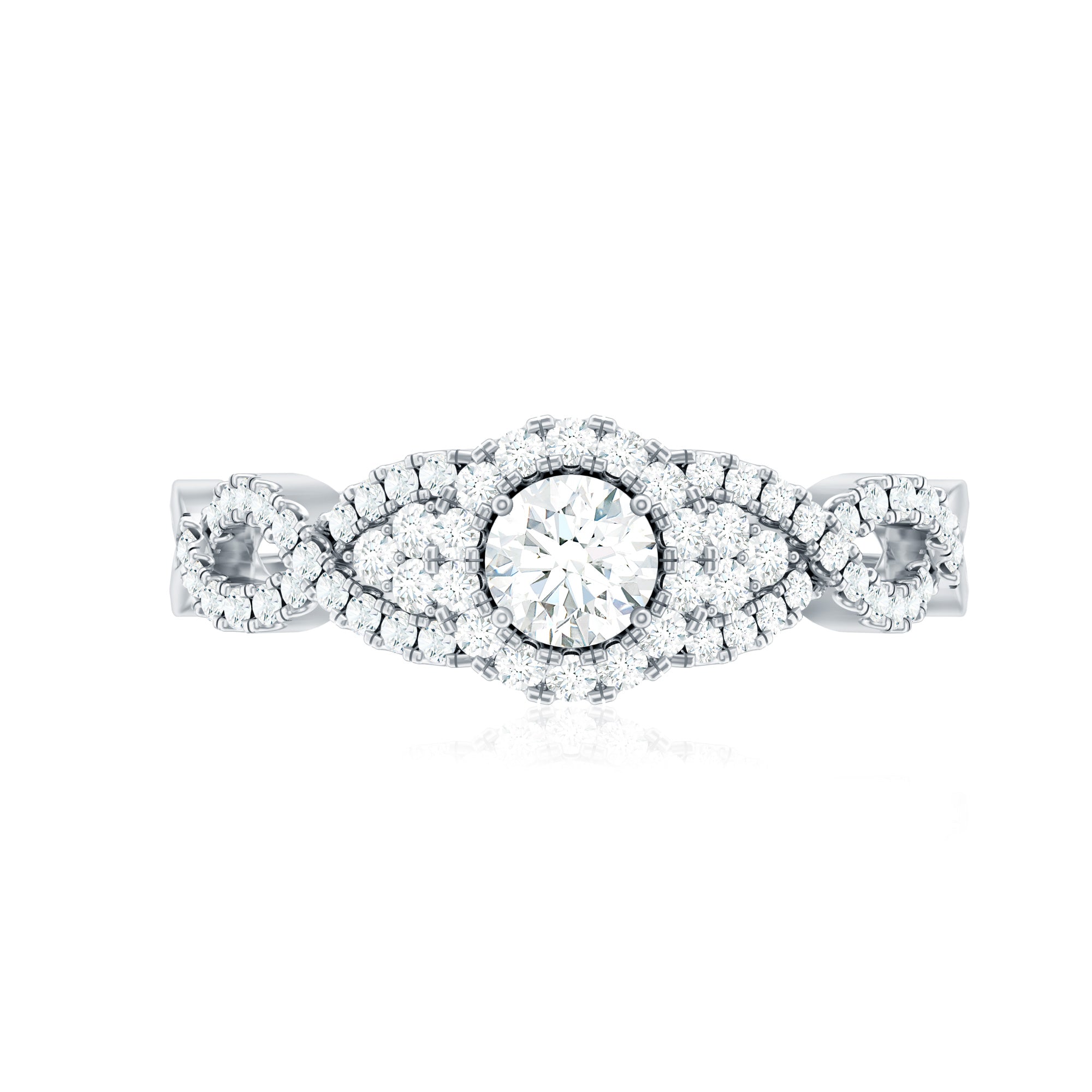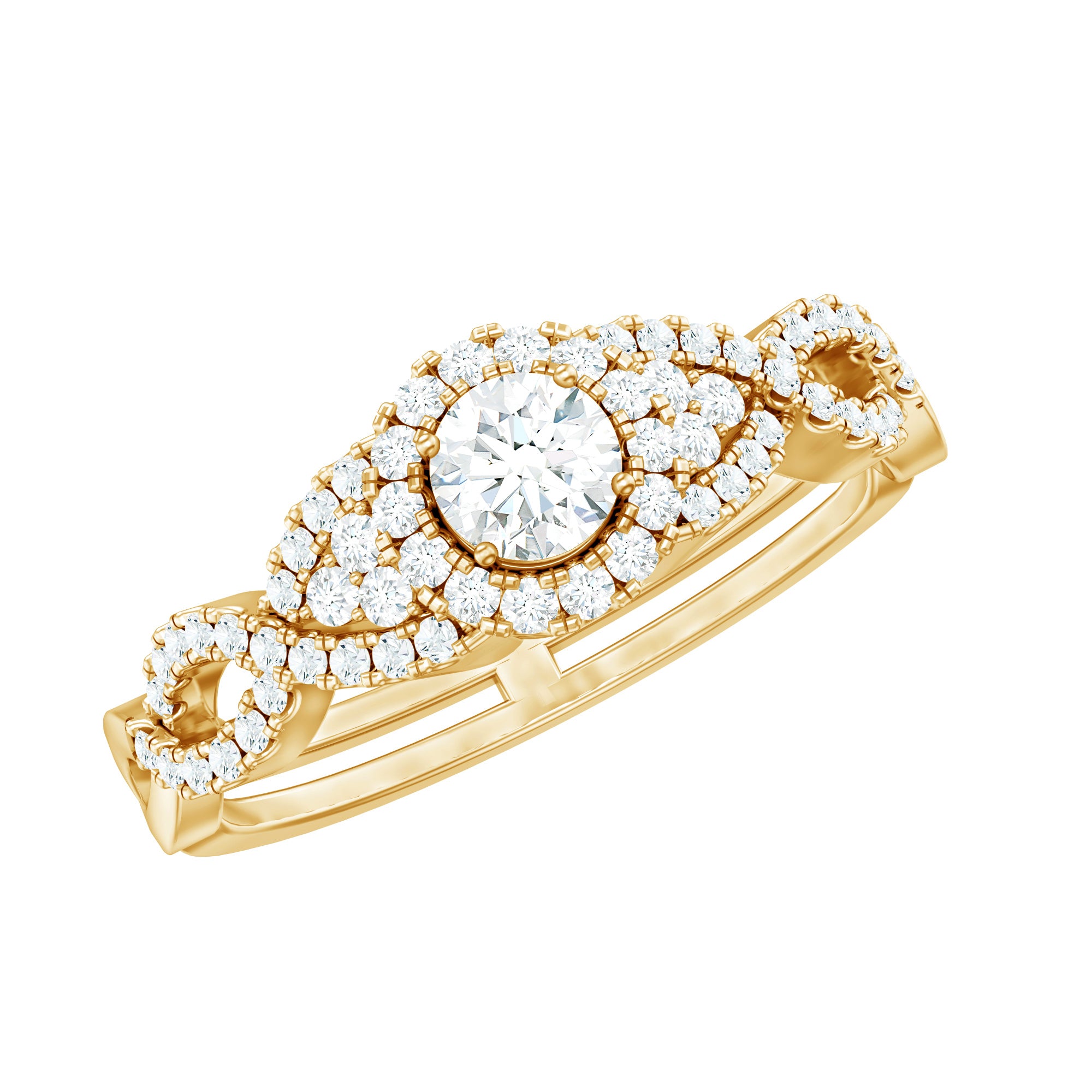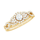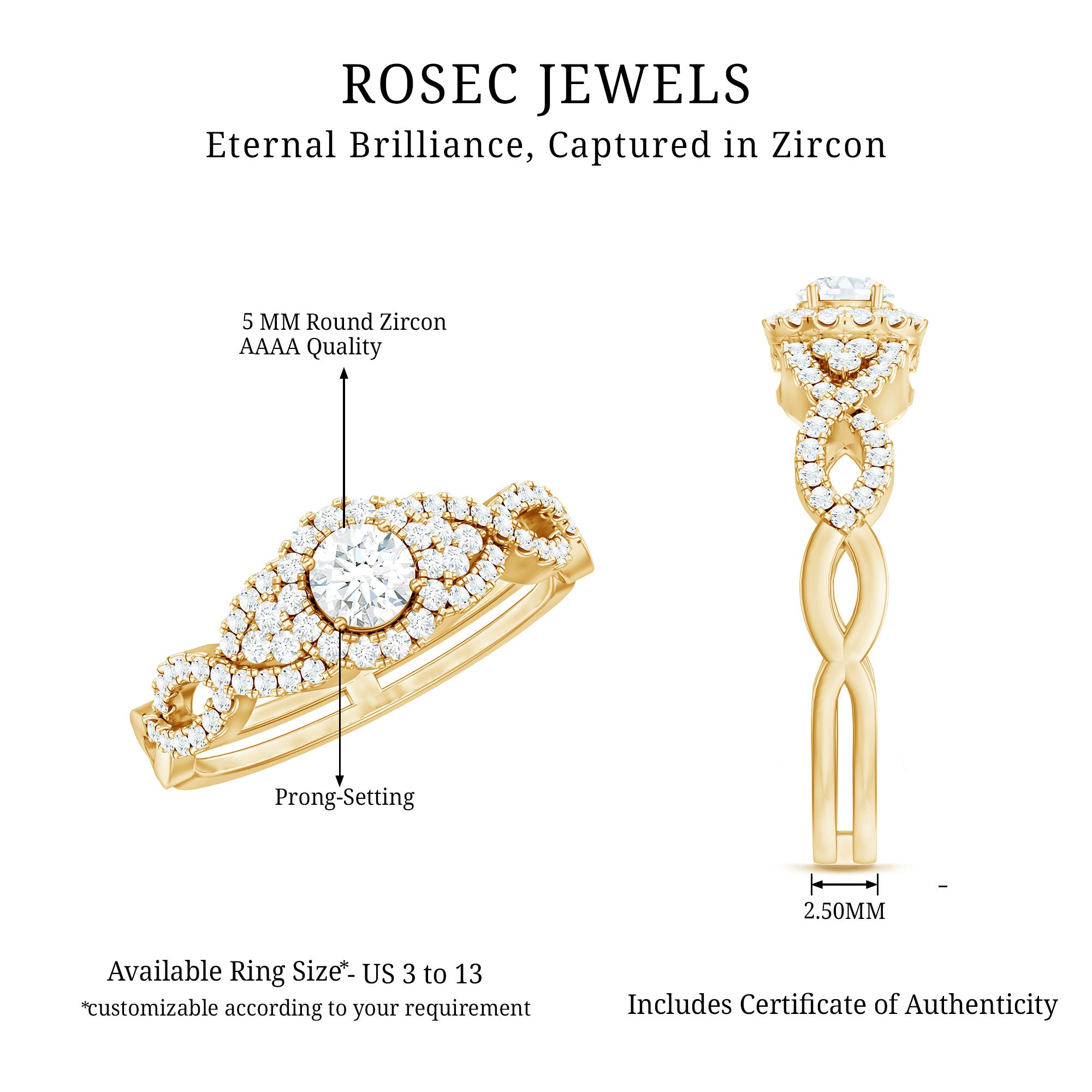 This Vintage Engagement Ring, crafted from solid gold, is a magnificent choice for your special day. The crisscross design is adorned with round-cut zircon, adding a dazzling and captivating appeal to the ring. Make your special day even more memorable with this beautiful zircon engagement ring.
