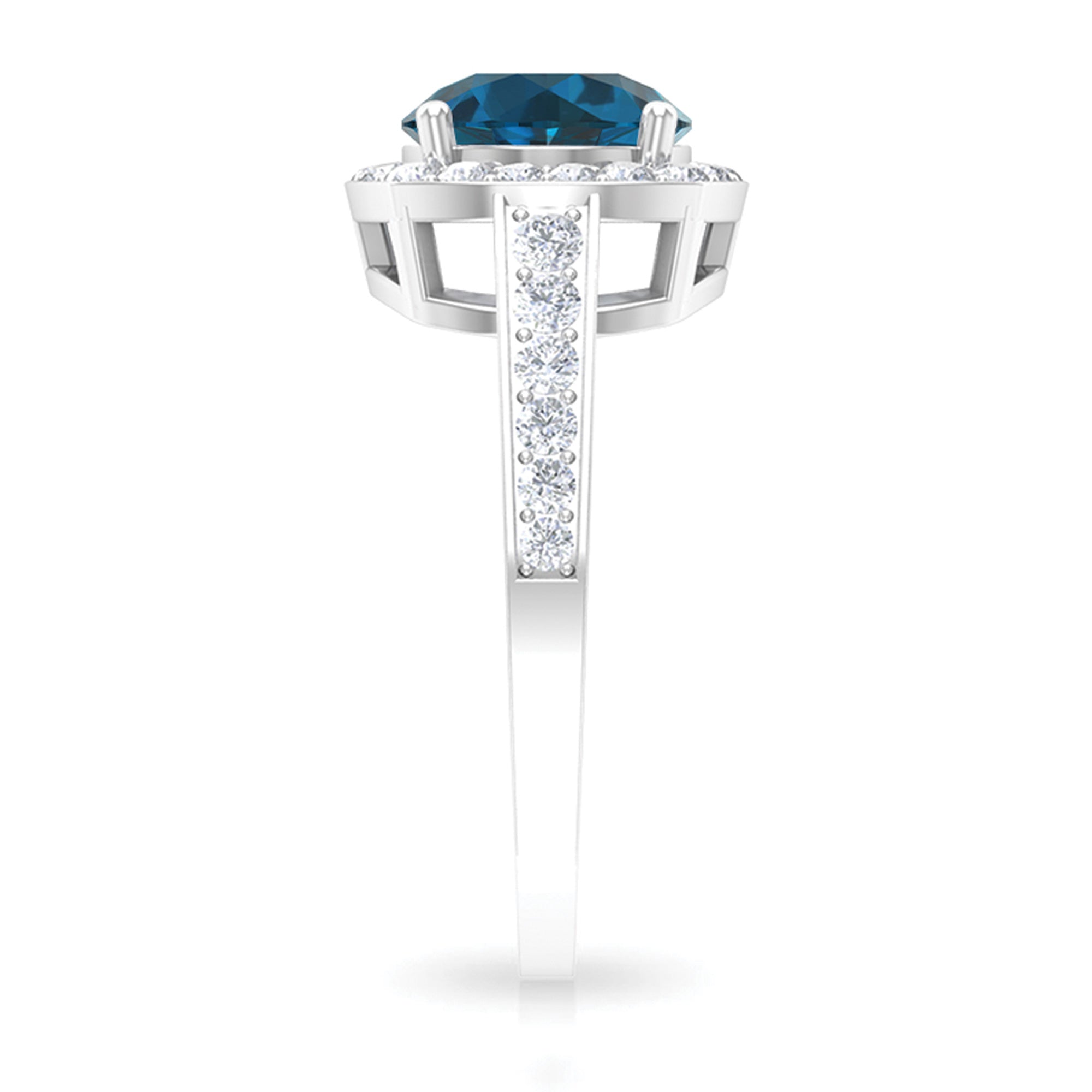 Vintage Halo Engagement Ring with London Blue Topaz and Diamond