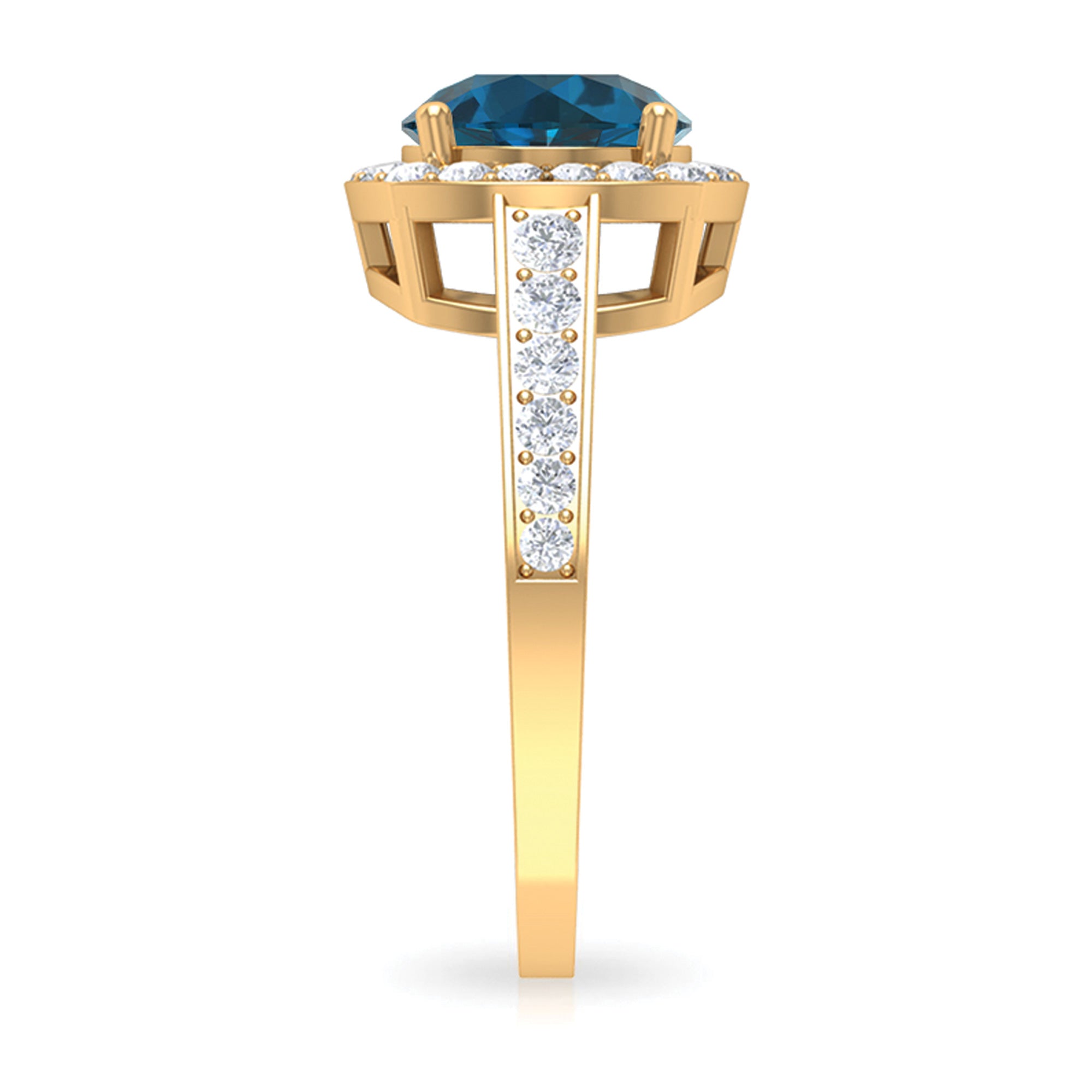 Vintage Halo Engagement Ring with London Blue Topaz and Diamond