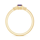 This Solitaire Engagement Ring will captivate everyones attention as it is embellished with stunning Emerald Cut Amethyst secured in 4 Prong Setting while Round Shape Diamond studded on the unique design. . The Amethyst Ring is gracefully crafted with Hallmarked Metal. This Vintage Ring will make your every moment magical and worth celebrating. She will find reasons to wear this Amethyst Ring again and again.