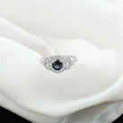 Vintage Inspired Created Blue Sapphire and Diamond Engagement Ring