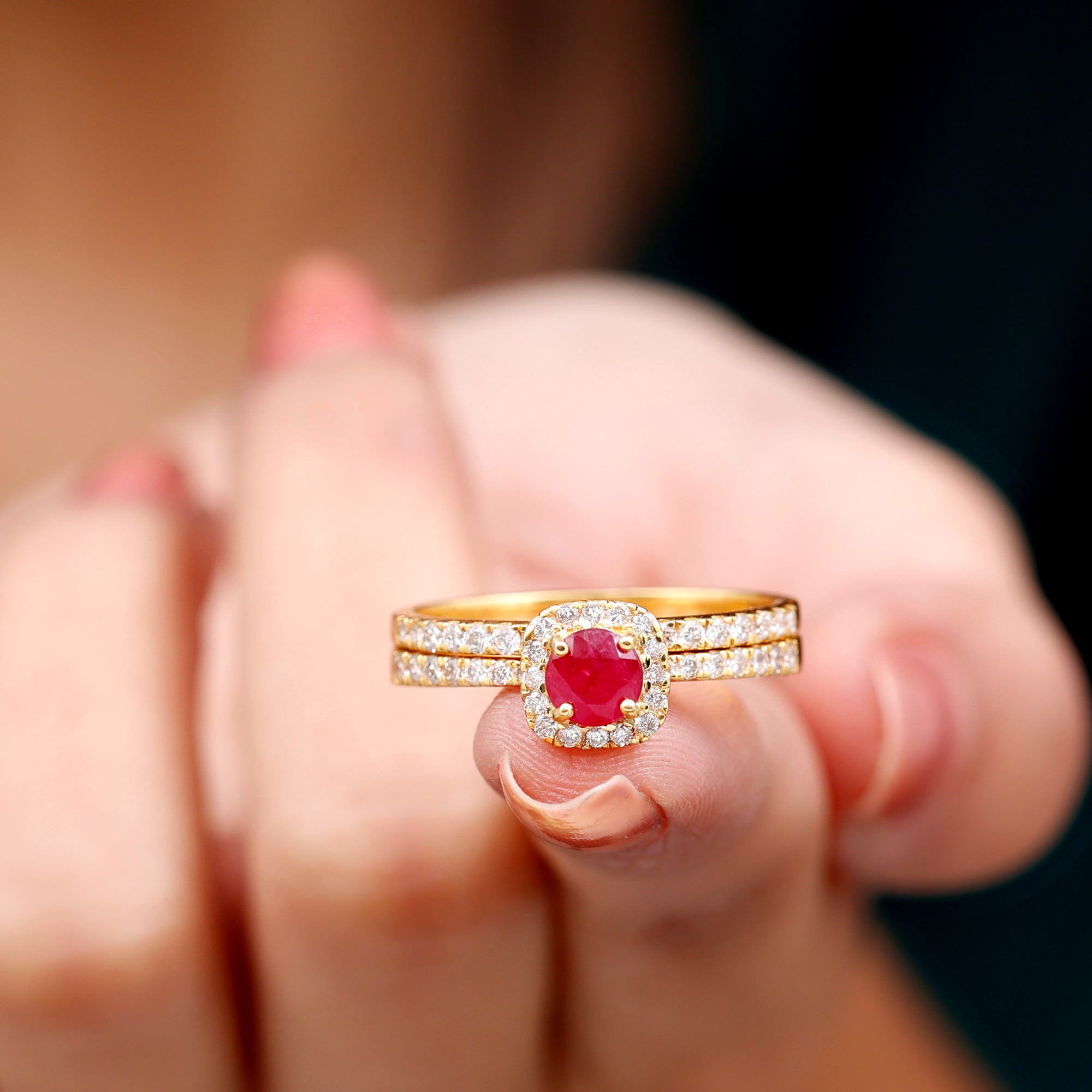 Make your special day unforgettable with this Vintage Ruby Ring Set. This Created Ruby and Diamond Wedding Ring set is the perfect way to show your love and affection to your partner. With its timeless design and exquisite craftsmanship, this ring set is sure to bring a smile to her face and make her feel truly special.