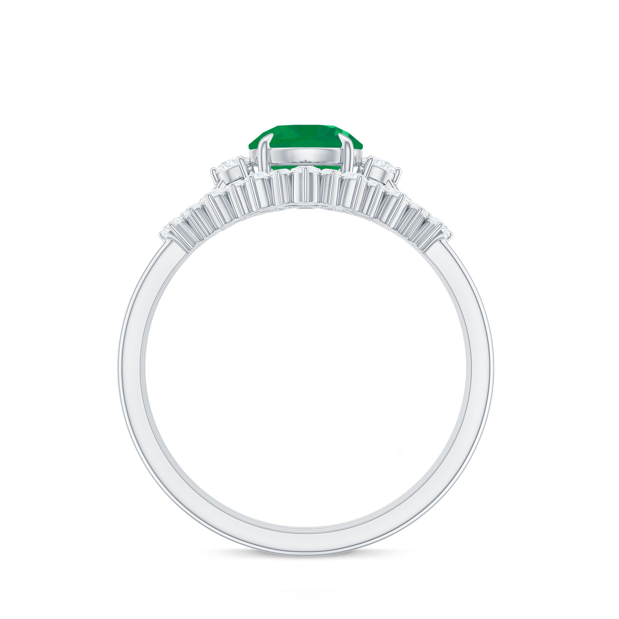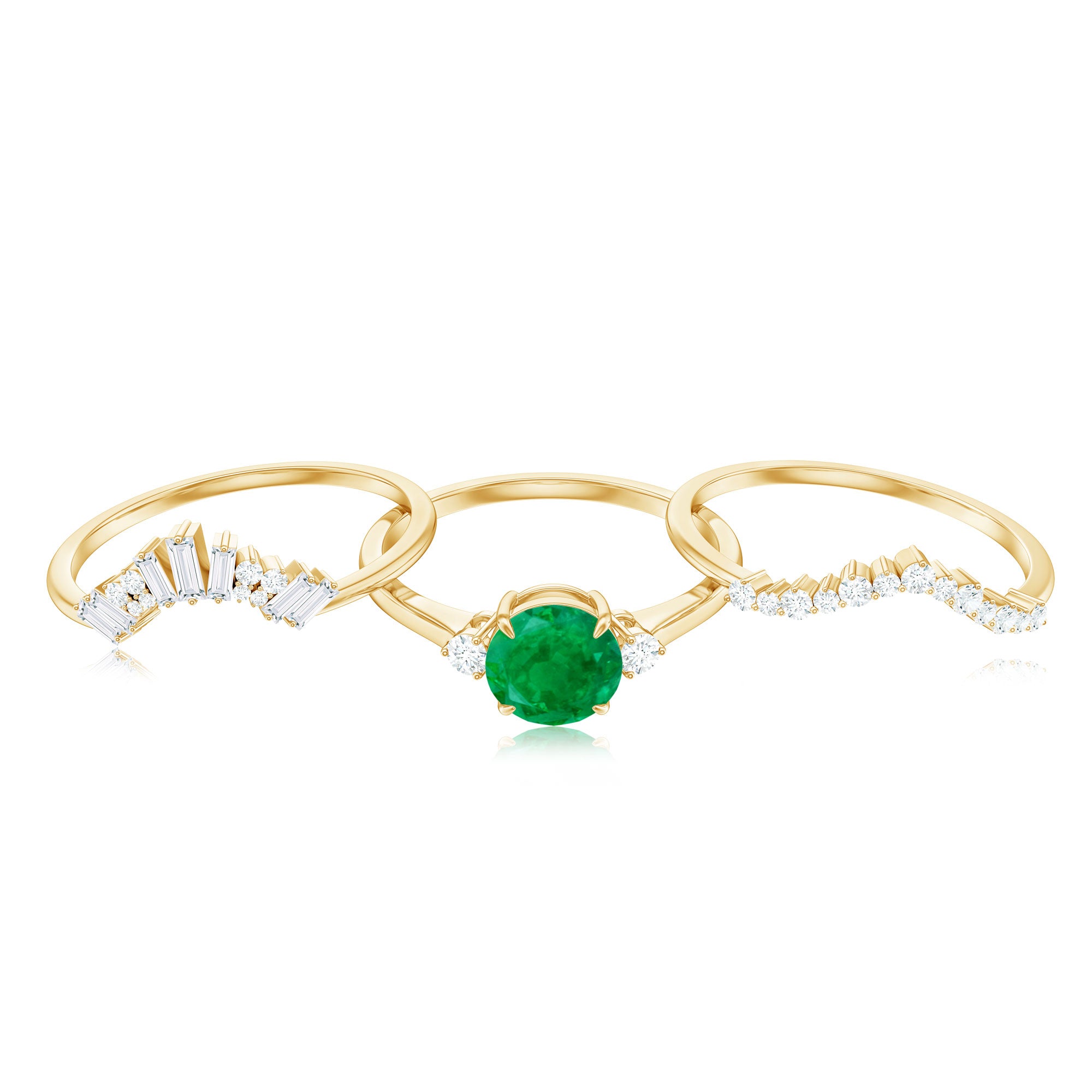 Vintage Inspired Emerald Diamond Wedding Bridal Ring Set of 3