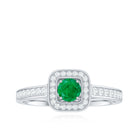 Vintage Inspired Emerald Engagement Ring with Diamond Halo