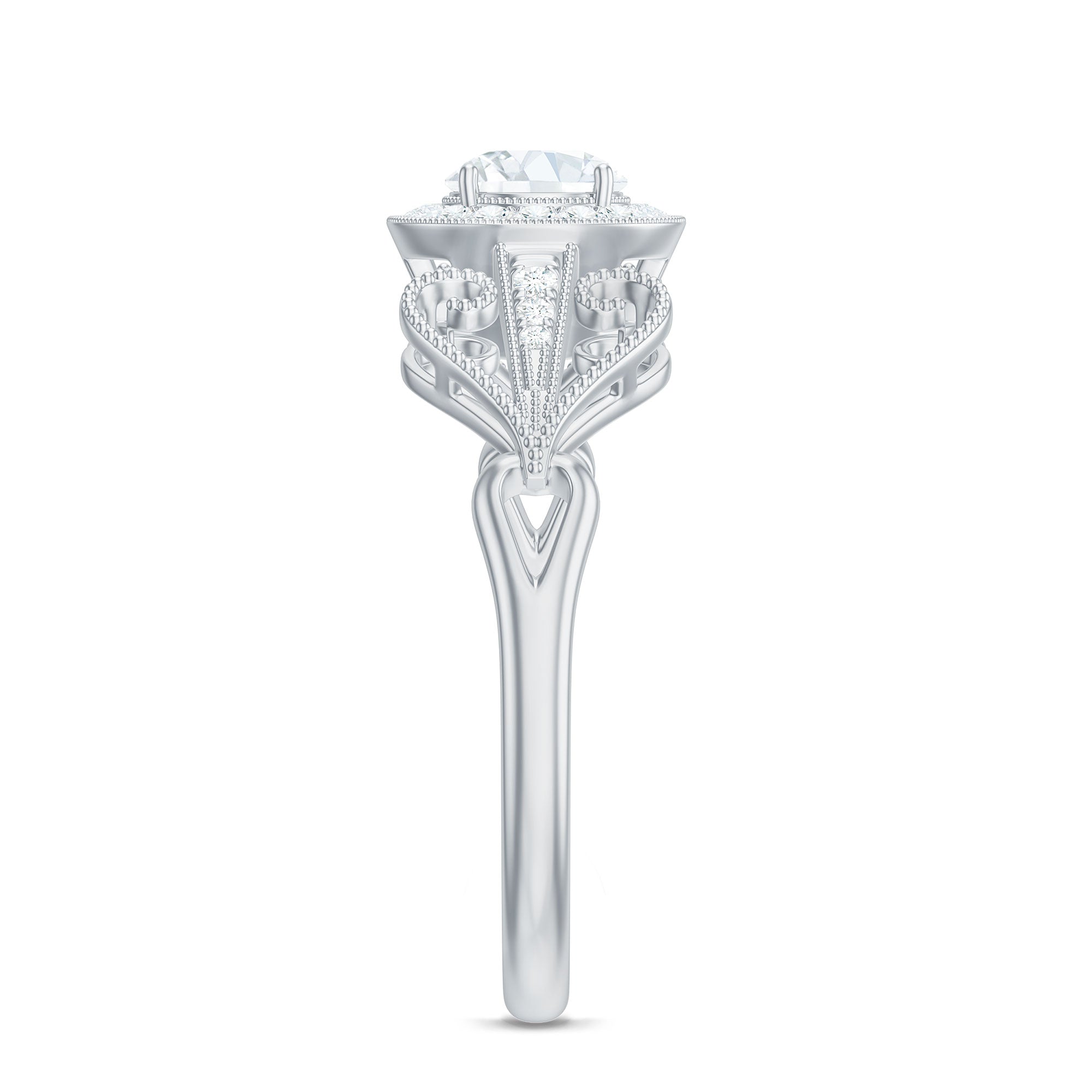 Exuding timeless romance, this Vintage Style Engagement Ring captures the essence of a bygone era. This exquisite ring features intricate detailing and is adorned with shimmering Lab Grown Diamond gemstones, reminiscent of the glamour of yesteryears. This Engagement Ring symbolizes a love story that transcends time, a captivating choice for a lifelong commitment.