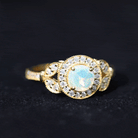 Vintage Inspired Ethiopian Rainbow Opal Engagement Ring with Diamond Halo