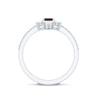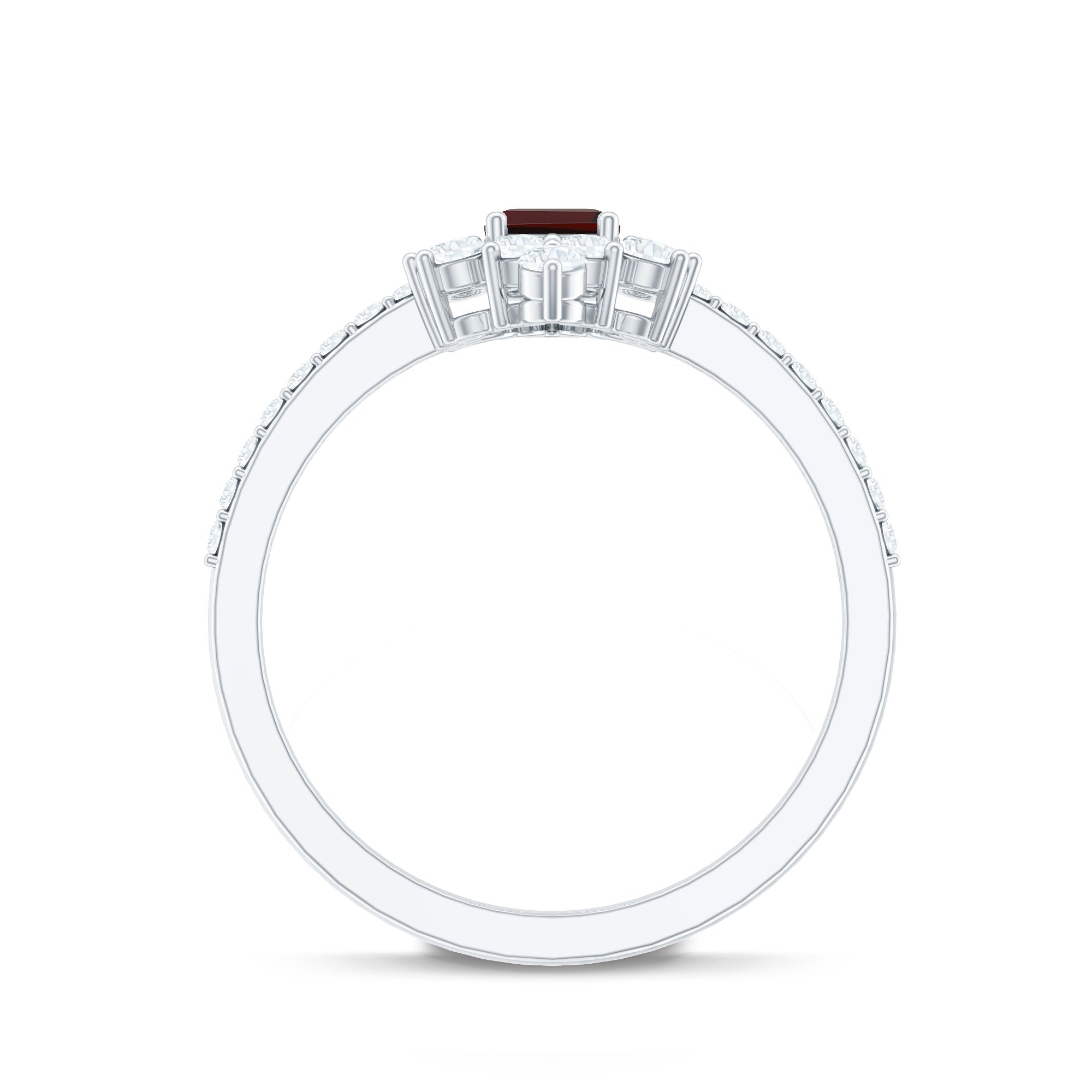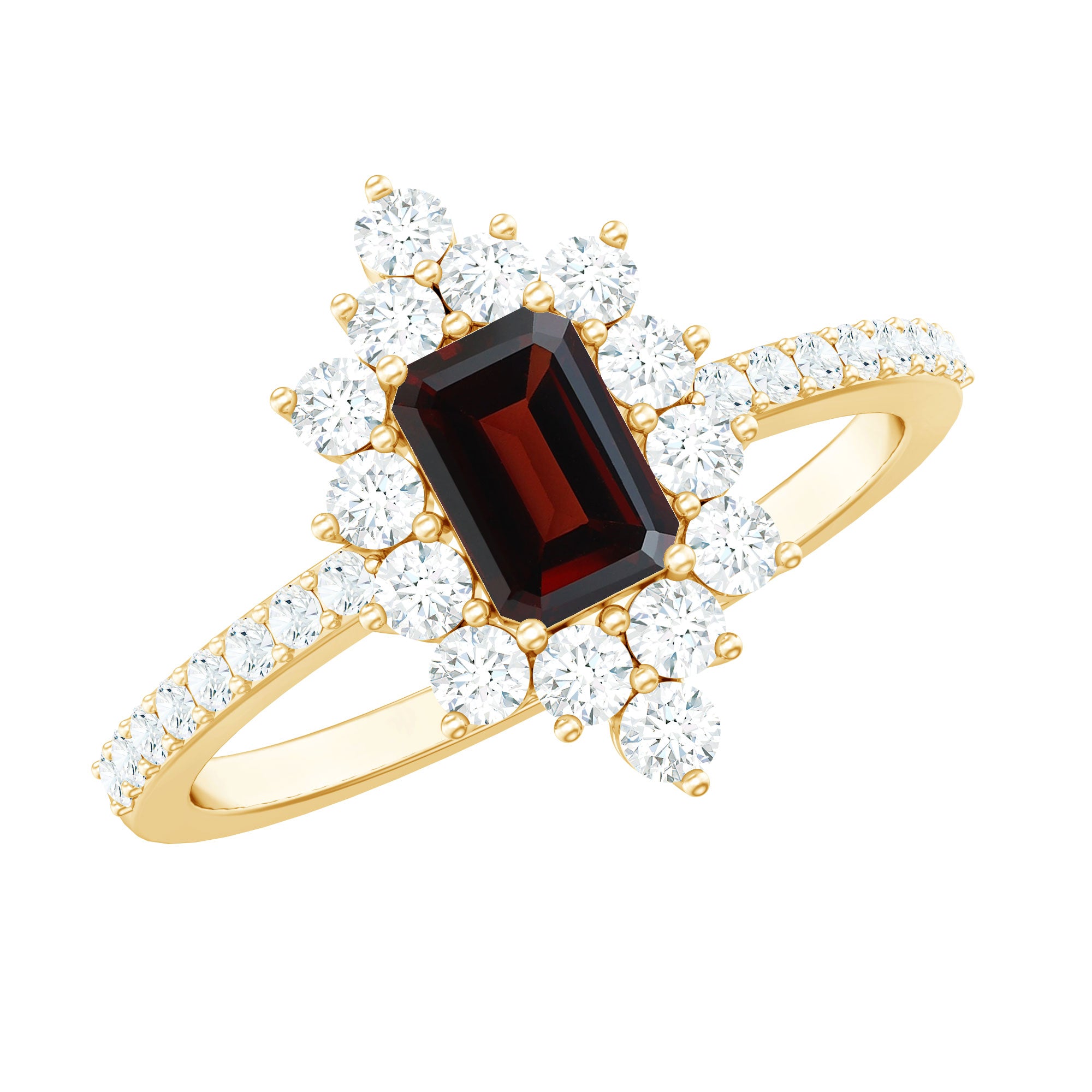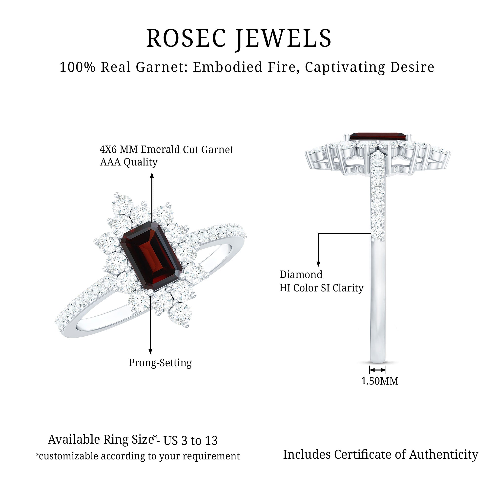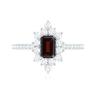 Vintage Inspired Garnet Emerald Cut Engagement Ring with Diamond Halo