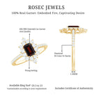 Create a stunning statement with this Garnet Engagement Ring, designed to capture hearts at first glance. At its center, a mesmerizing 4X6 mm Emerald Cut Garnet radiates deep red, perfectly surrounded by a sparkling Halo of Diamond stones that glimmer like tiny stars. Delicate Side Stones add extra brilliance, enhancing the timeless elegance of the design. Every detail of this Vintage Looking Engagement Ring whispers romance and sophistication, from the artful halo that hints at antique charm to the carefully crafted band that promises comfort. Whether it is a proposal, anniversary or a special celebration of love, this Emerald Cut Engagement Ring transforms any moment into an unforgettable memory. This Garnet Diamond Ring comes in various sizes to ensure a perfect fit and is presented in a signature jewelry box, making the reveal as magical as the love it represents. Effortlessly combining vintage charm with modern sparkle, this Halo Engagement Ring with Garnet is a symbol of devotion, passion and a love that is meant to last forever.