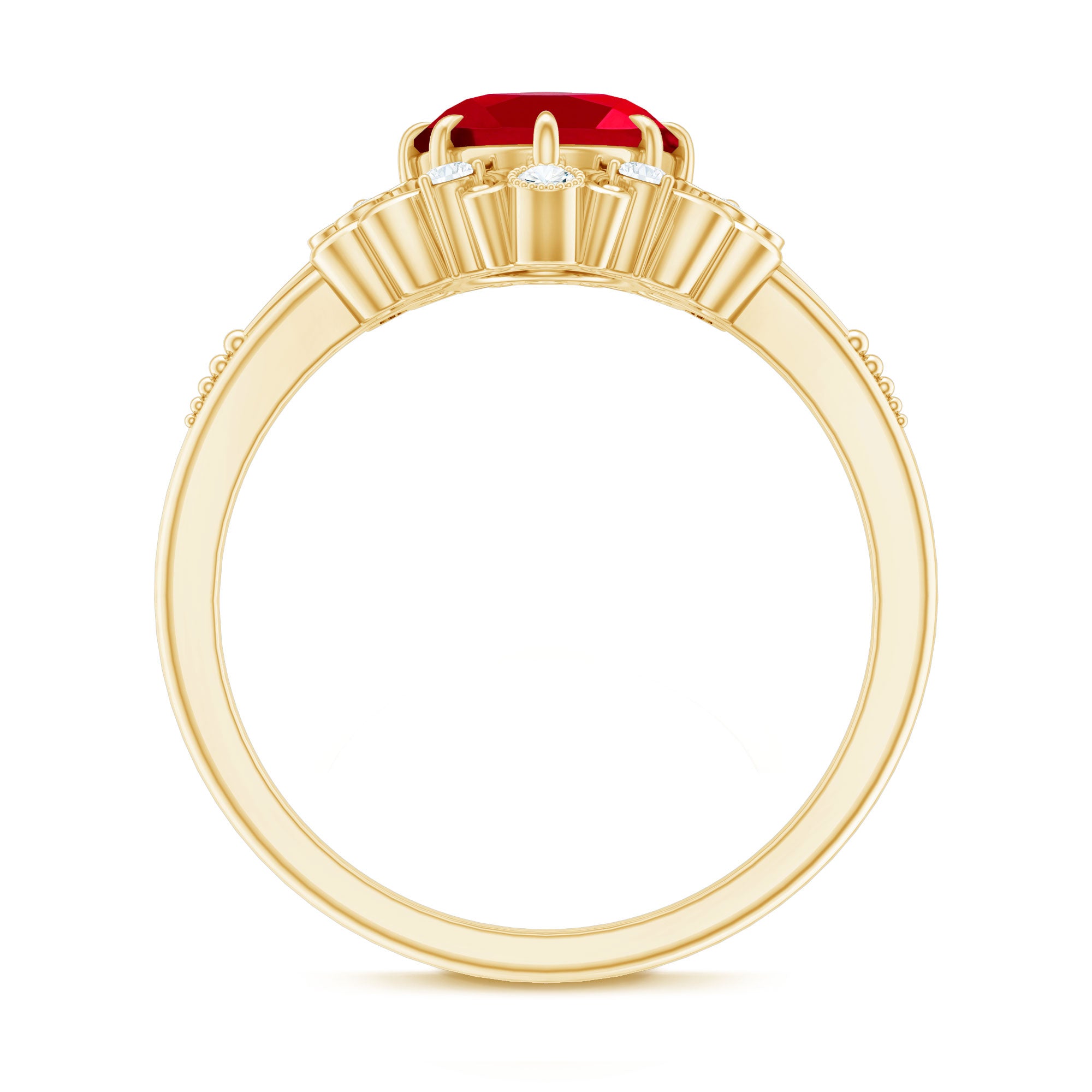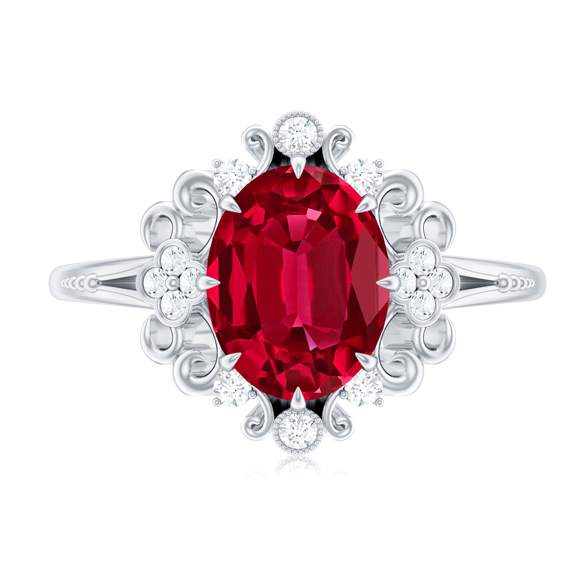 Vintage Inspired Lab Created Ruby and Diamond Engagement Ring