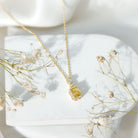 Add a ray of sunshine to your jewelry collection with this elegant and vibrant Yellow Sapphire Pendant Necklace. Crafted in yellow gold plated silver, this eye-catching piece features a glowing 5X7 MM emerald cut lab grown yellow sapphire, securely set in prongs and surrounded by a shimmering halo of round lab grown diamonds. Above the main stone, a delicate floral motif adds a playful touch, adorned with sparkling diamonds and a single bezel set round diamond at the center connects the emerald cut with the flower, creating a sweet and feminine detail. Both the AAAA quality lab grown yellow sapphire and EF color VS clarity lab grown diamonds are of exceptional quality, offering brilliant sparkle and bold color, all while being ethically made and eco-conscious. These sustainable gemstones make this Sapphire and Diamond Necklace not only beautiful, but also a choice you can feel good about. Dangling from a sleek chain, this Vintage Sapphire Necklace sits gracefully at the neckline, whether worn alone or layered with other pieces. Its blend of Vintage Art Deco charm and modern design makes it perfect for someone who loves timeless elegance with a fresh twist.