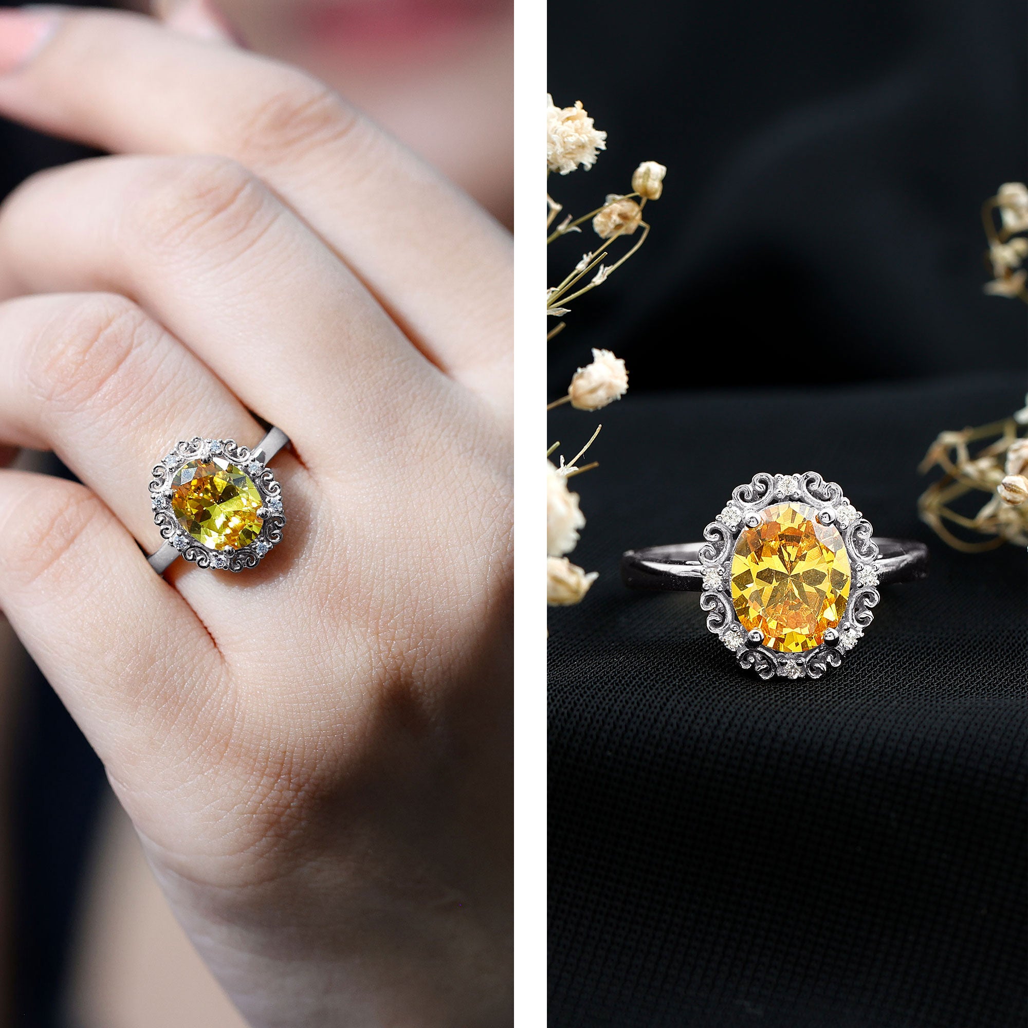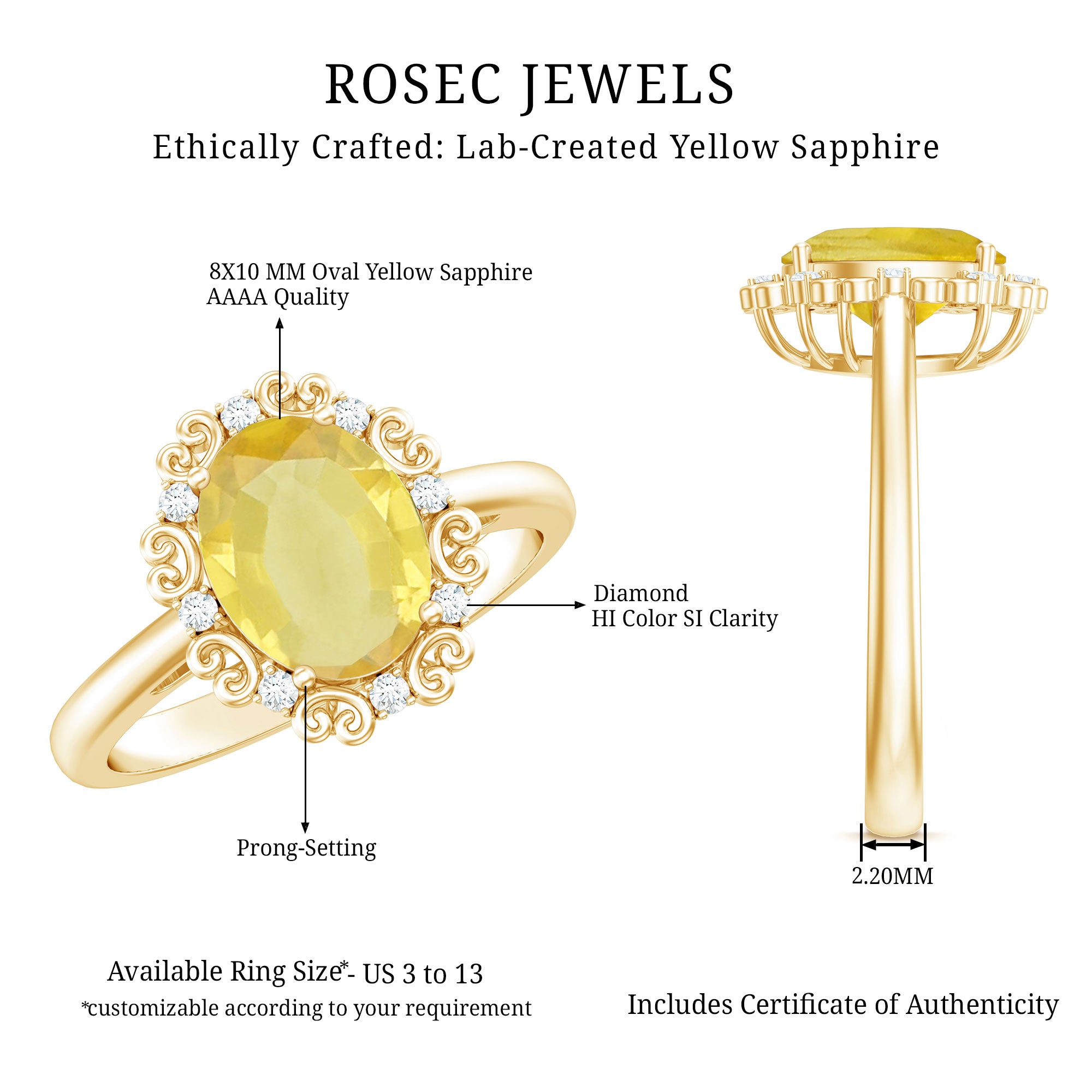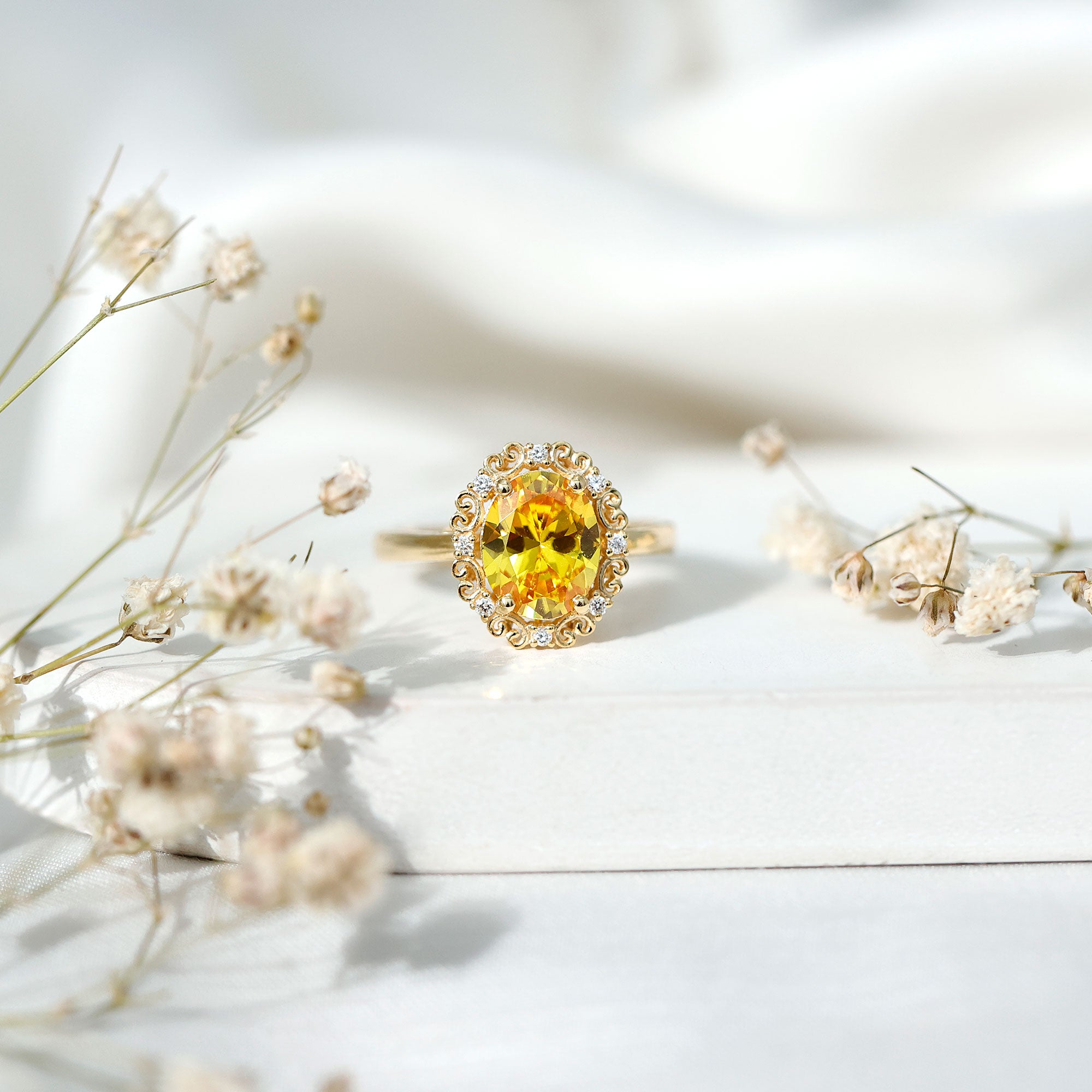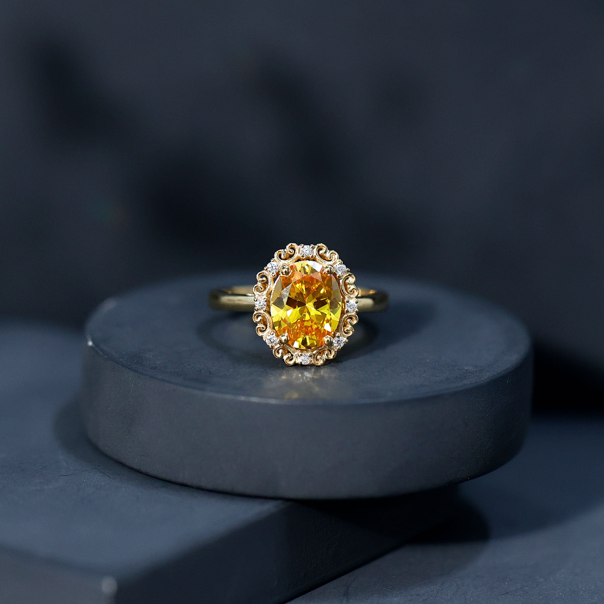 Vintage Inspired Lab Grown Yellow Sapphire Oval Engagement Ring