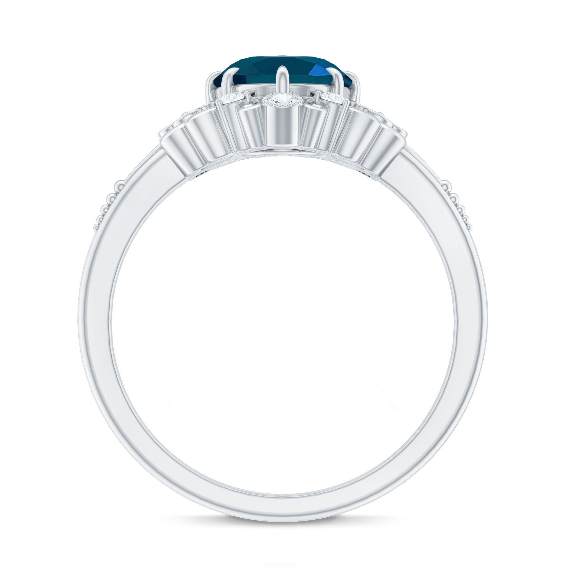 Vintage Inspired London Blue Topaz and Diamond Engagement Ring