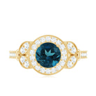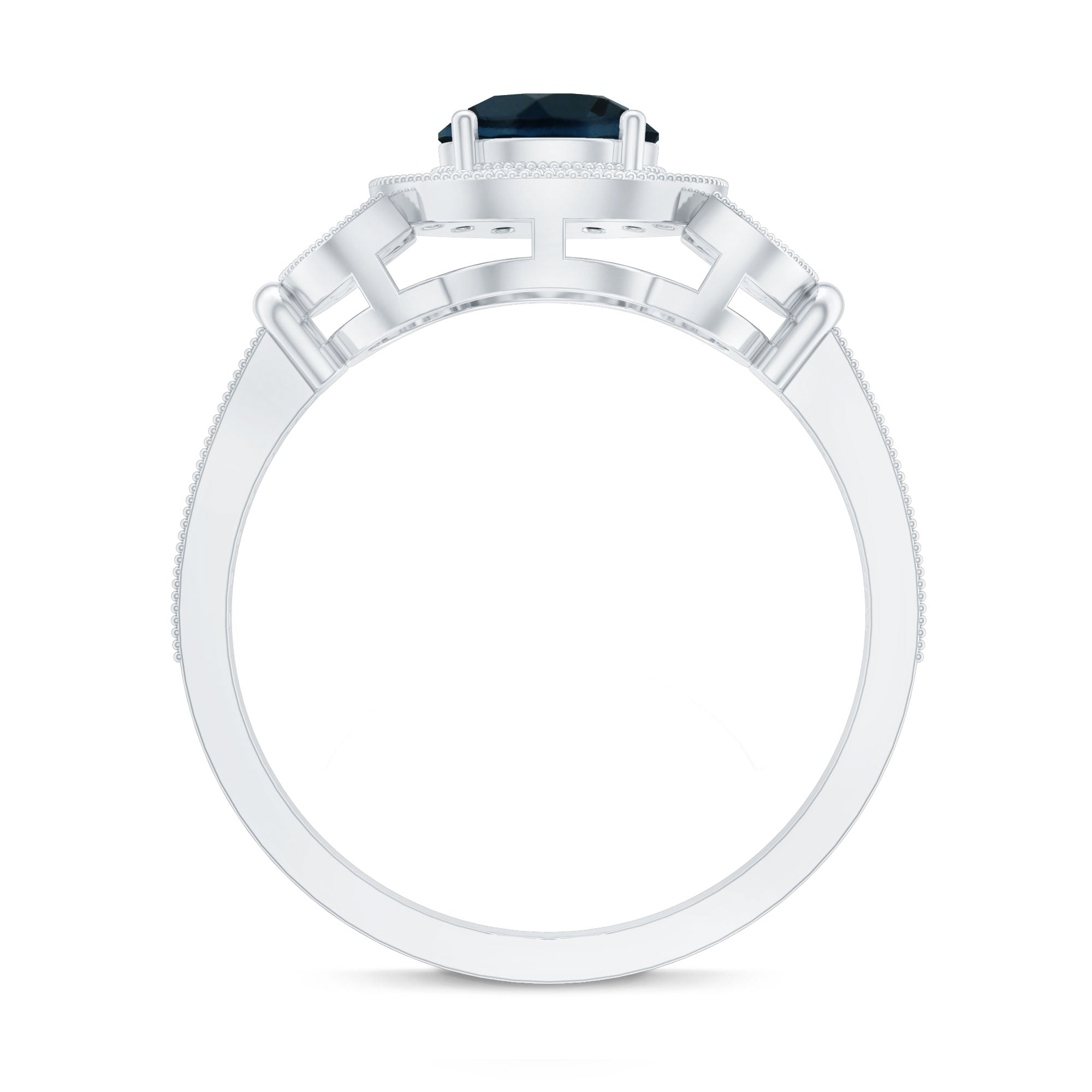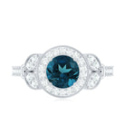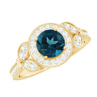 Vintage Inspired London Blue Topaz Engagement Ring with Diamond Halo