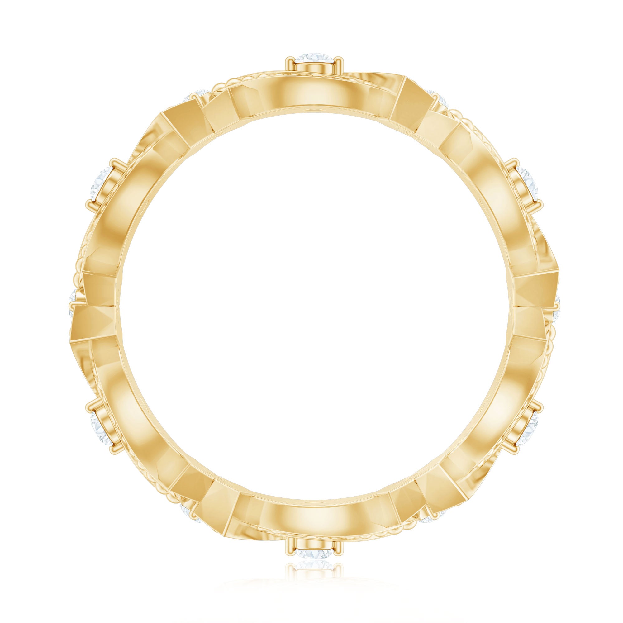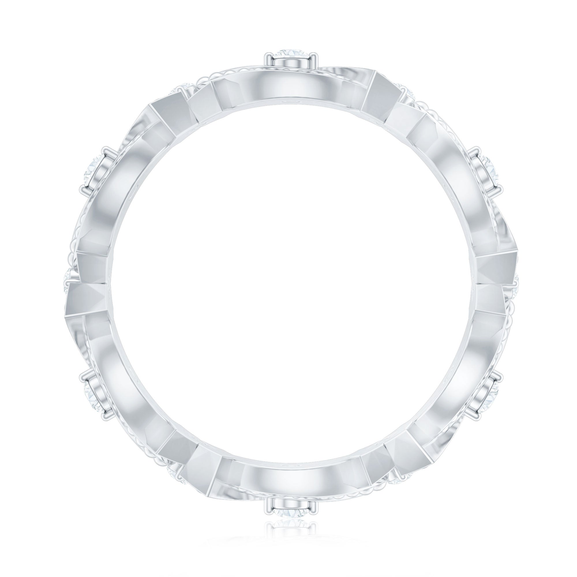 Step into the charm of a bygone era with this Vintage Style Wedding Band, a ring that beautifully marries antique aesthetics with modern brilliance. Designed with a distinct old-world appeal, this Full Eternity Band features round moissanite stones that sparkle with timeless fire, each one cradled securely in 2-prong setting. What truly defines this Moissanite Anniversary Band is its intricate beaded detailing, a signature touch of vintage artistry. Tiny metal beads dance along gracefully curved patterns, framing each D-VS1 quality moissanite. The contrast between the shimmering moissanite and the textured metal work adds depth and visual catch, giving the band a sense of character and history. Whether worn to mark a meaningful anniversary or simply as a statement of timeless style, this Vintage Moissanite Band feels like a treasure passed down through generations. It is a piece of art that tells a story. Elegant yet strong, detailed yet wearable, it is perfect for someone who finds beauty in tradition and meaning in design.