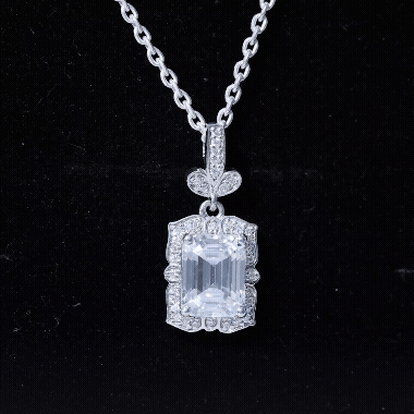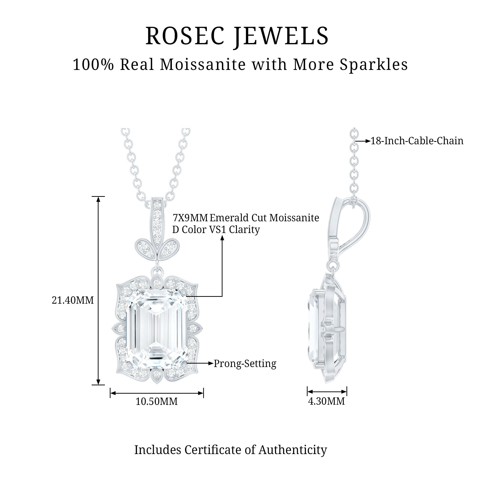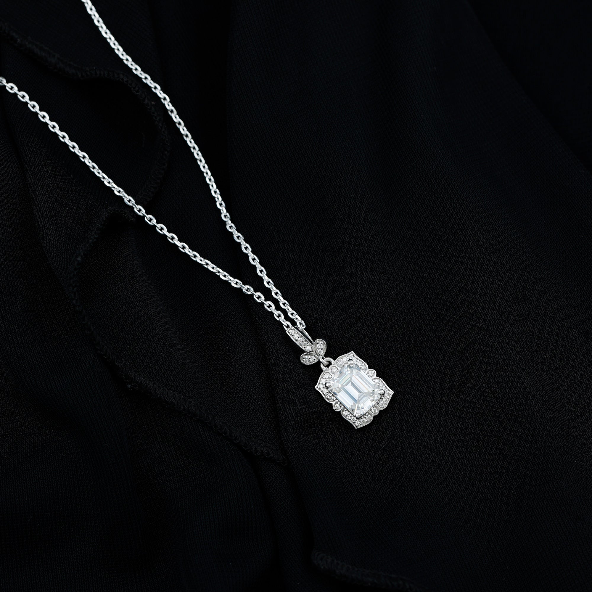 Vintage Inspired Moissanite Emerald Cut Necklace With Chain