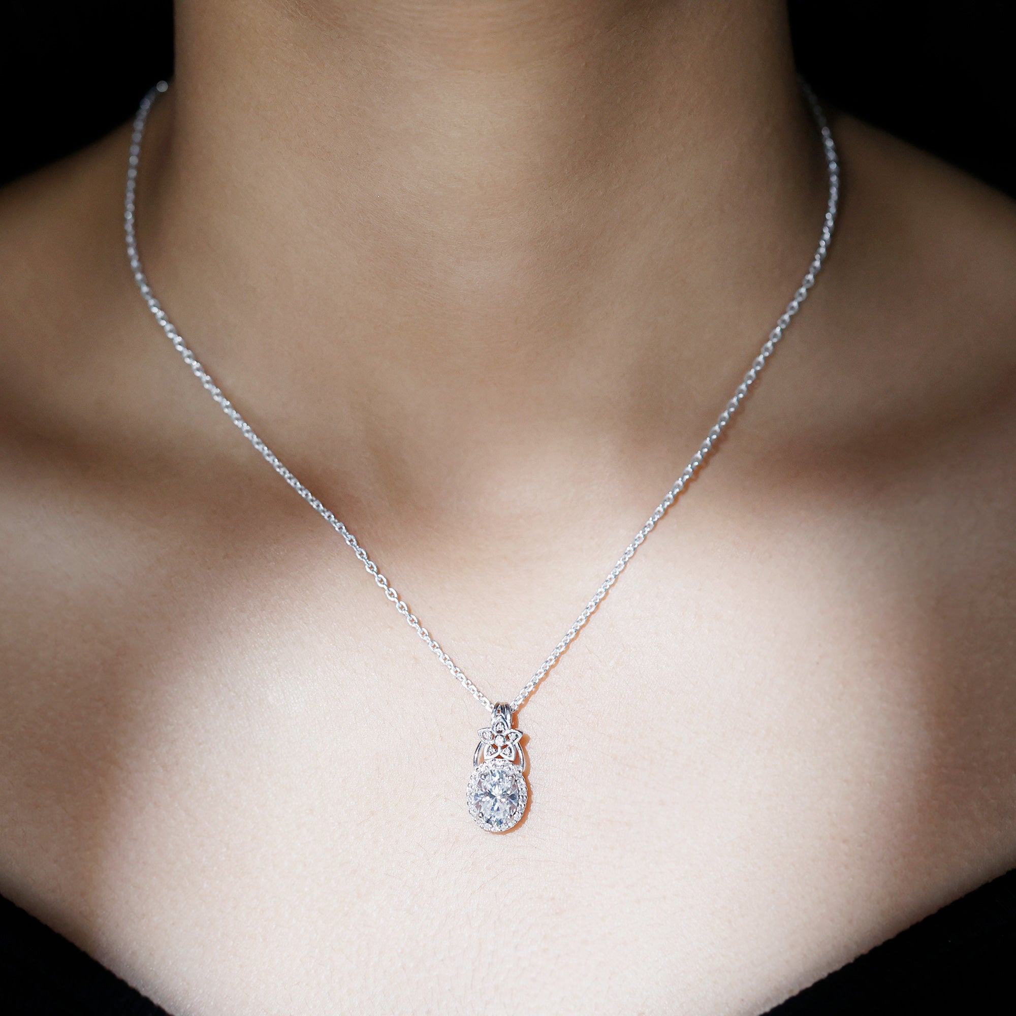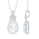 Vintage Inspired Moissanite Oval Drop Pendant Necklace with Chain
